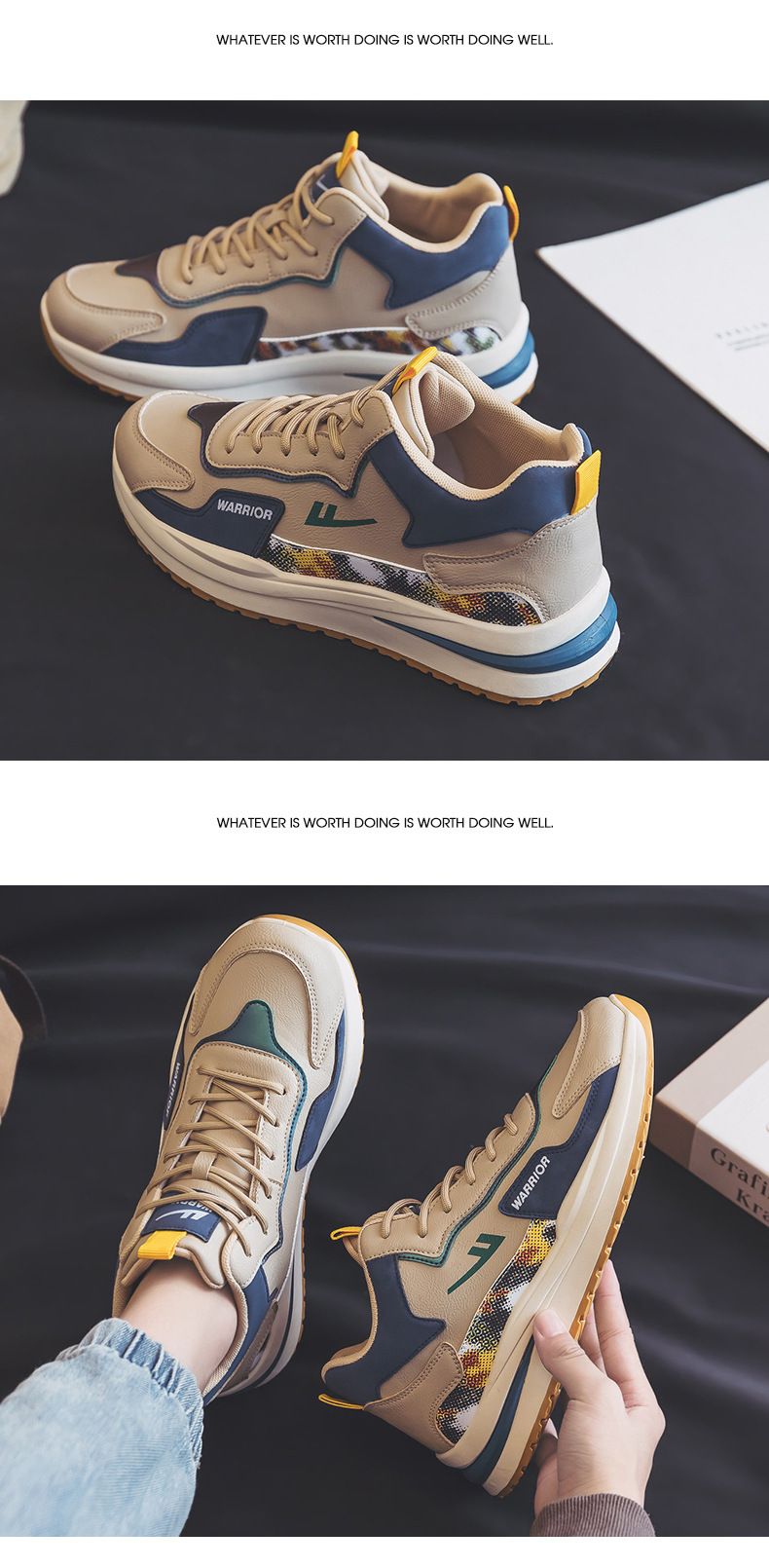• 로우탑 가죽 카키 사계절 스타일