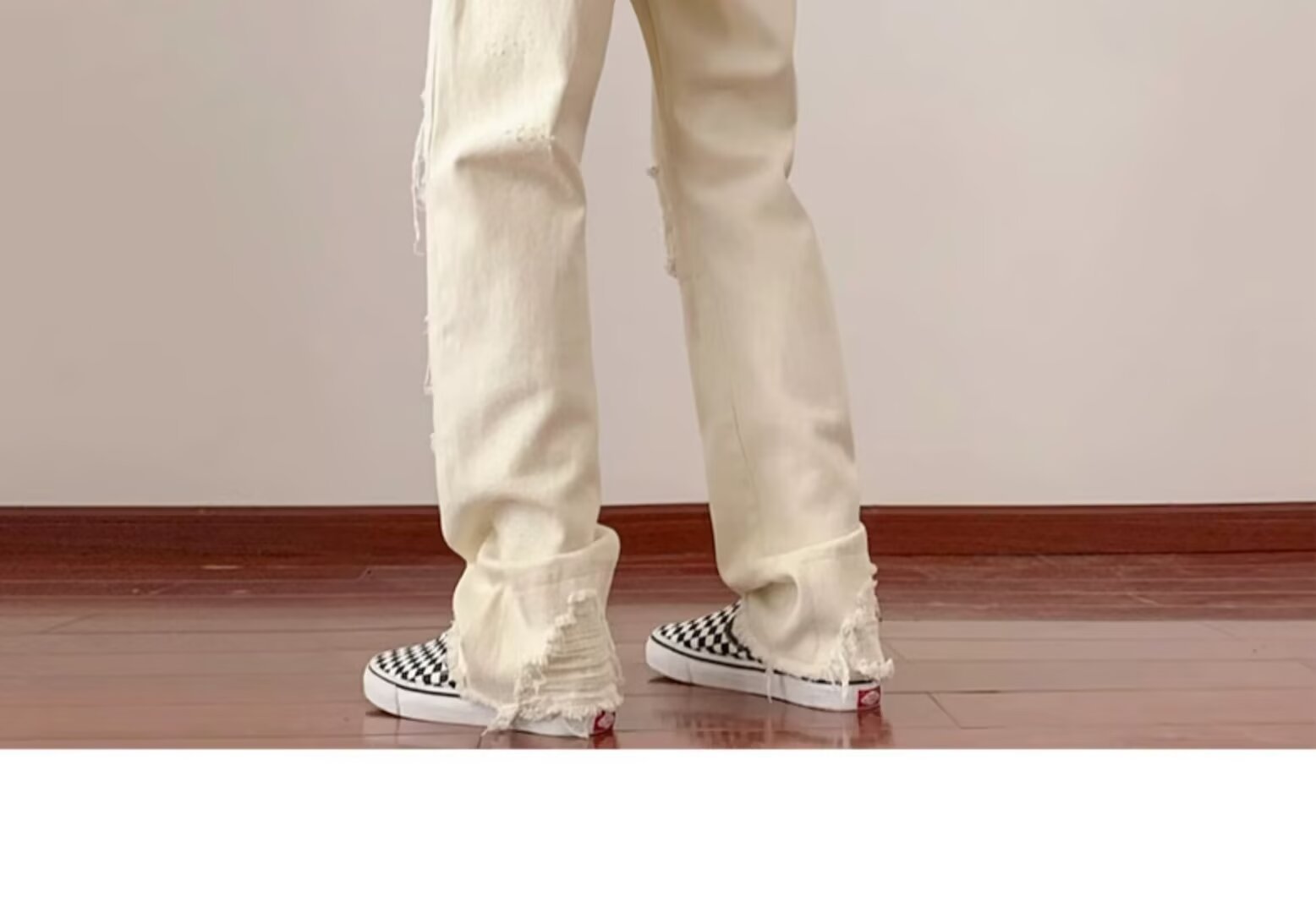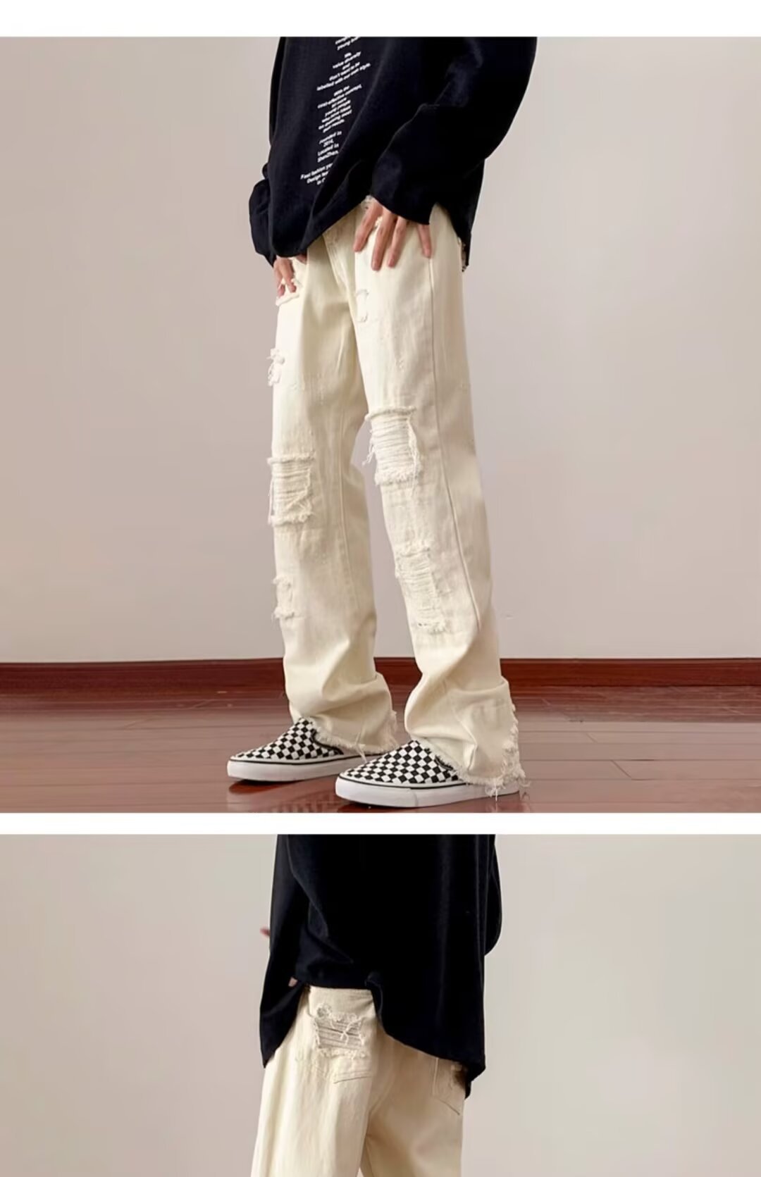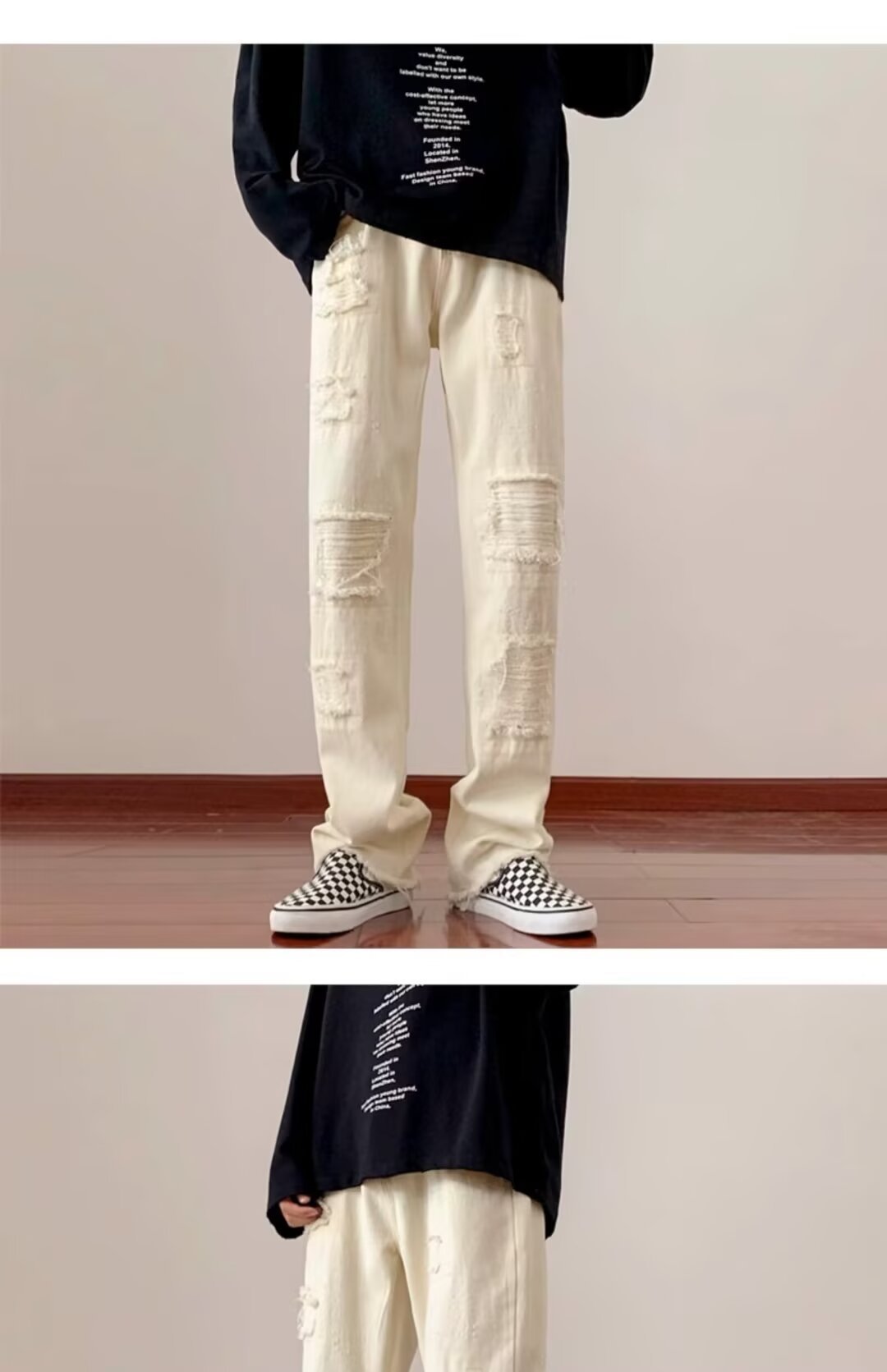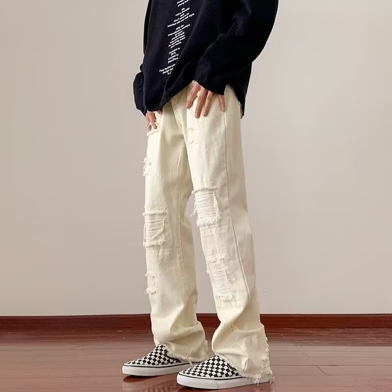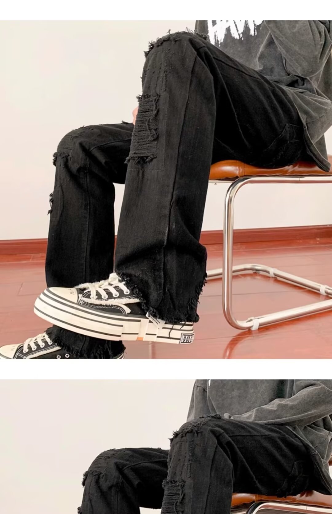 디자인 센스 리핑 엣지 청바지 남성용 봄과 여름 앤티크 워시 하이 스트리트 레트로 루스 스트레이트-레그 와이드 레그 팬츠스토어 가기
