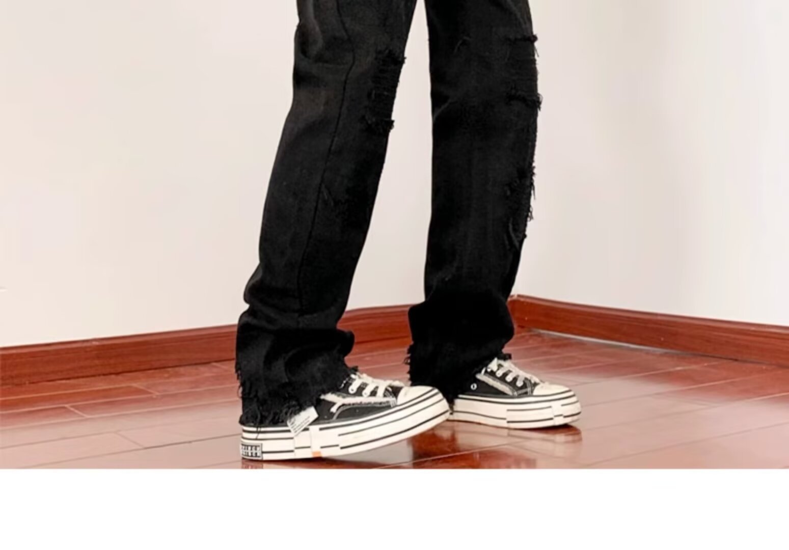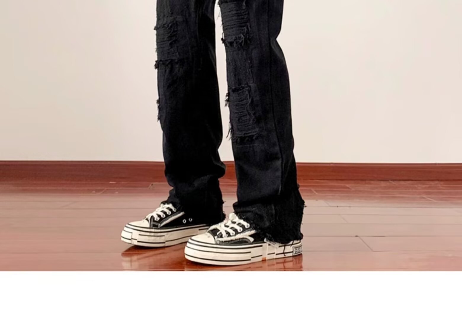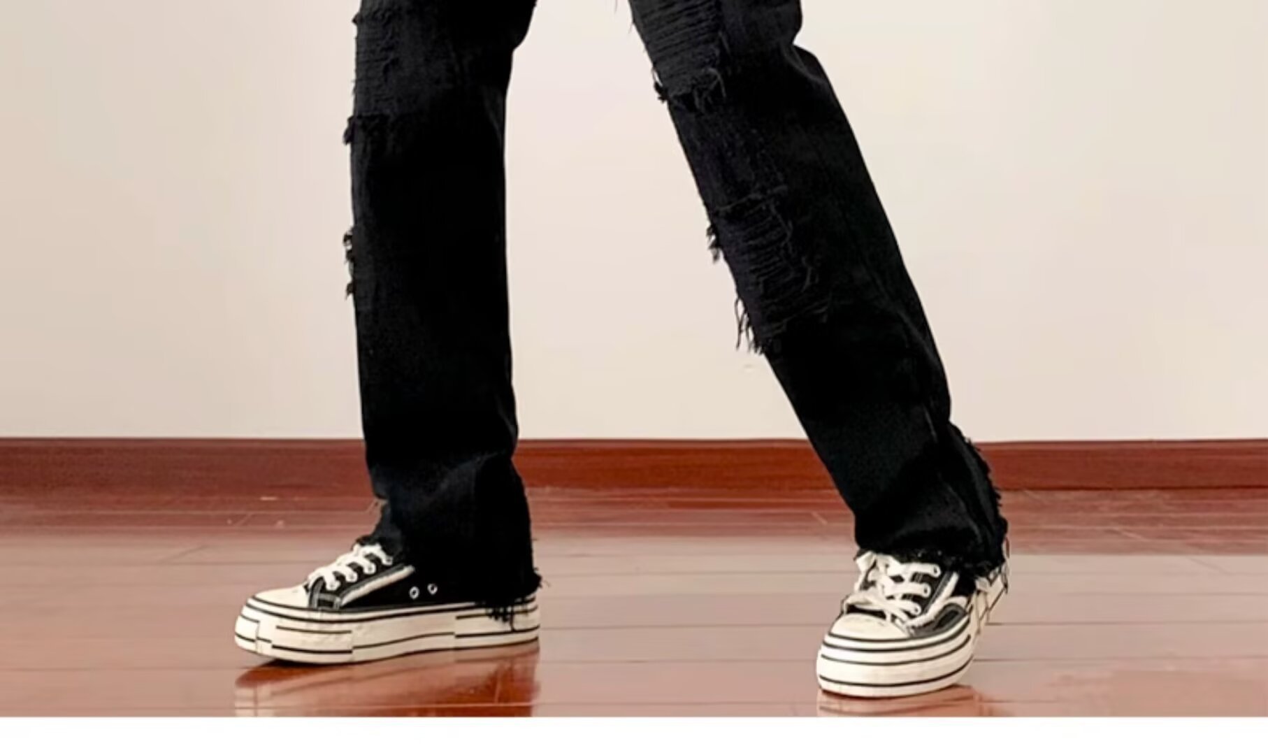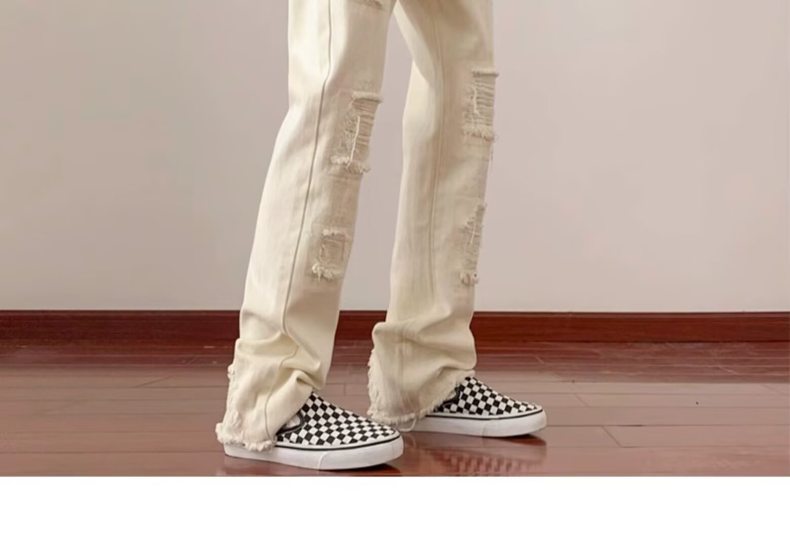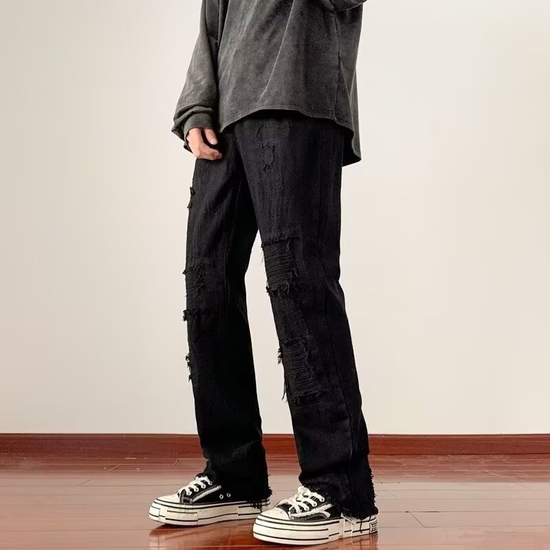 디자인 센스 리핑 엣지 청바지 남성용 봄과 여름 앤티크 워시 하이 스트리트 레트로 루스 스트레이트-레그 와이드 레그 팬츠스토어 가기