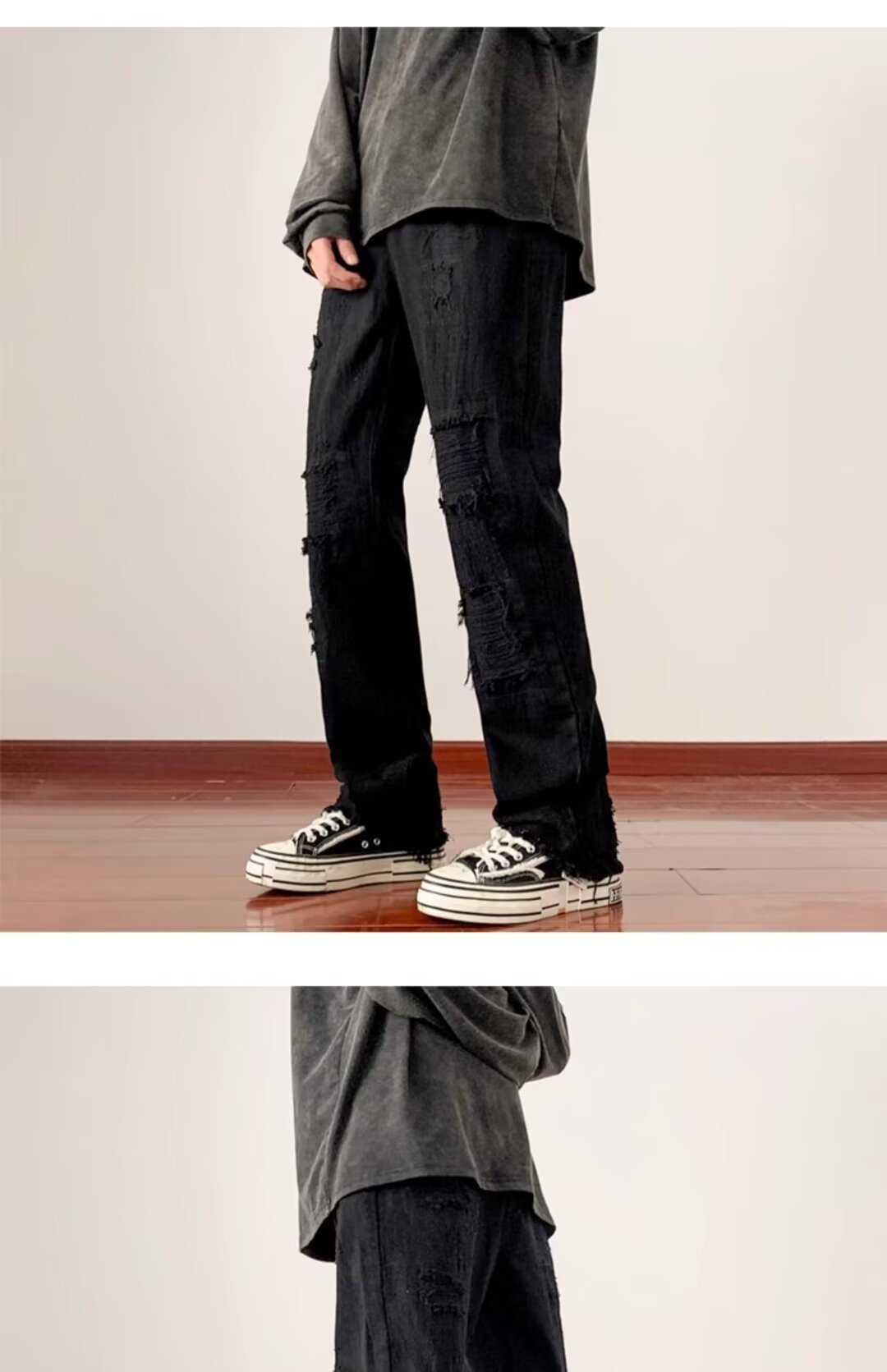 디자인 센스 리핑 엣지 청바지 남성용 봄과 여름 앤티크 워시 하이 스트리트 레트로 루스 스트레이트-레그 와이드 레그 팬츠