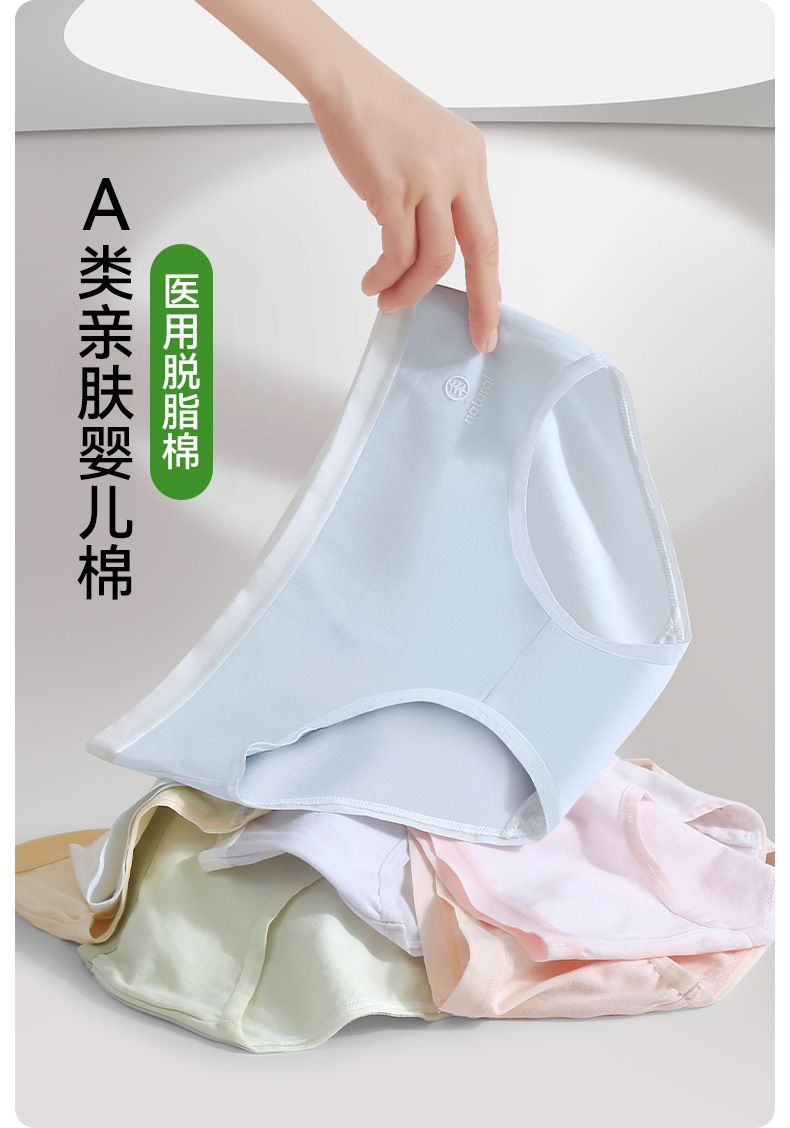 여성용 중간 허리 7A 순면 속옷, A형 베이비 면, 항균 가랑이, 흔적 없음, 꼬집음 없음, 여성용 대형 속옷스토어 가기