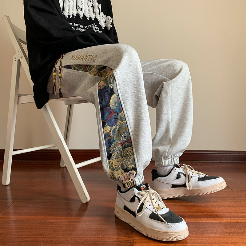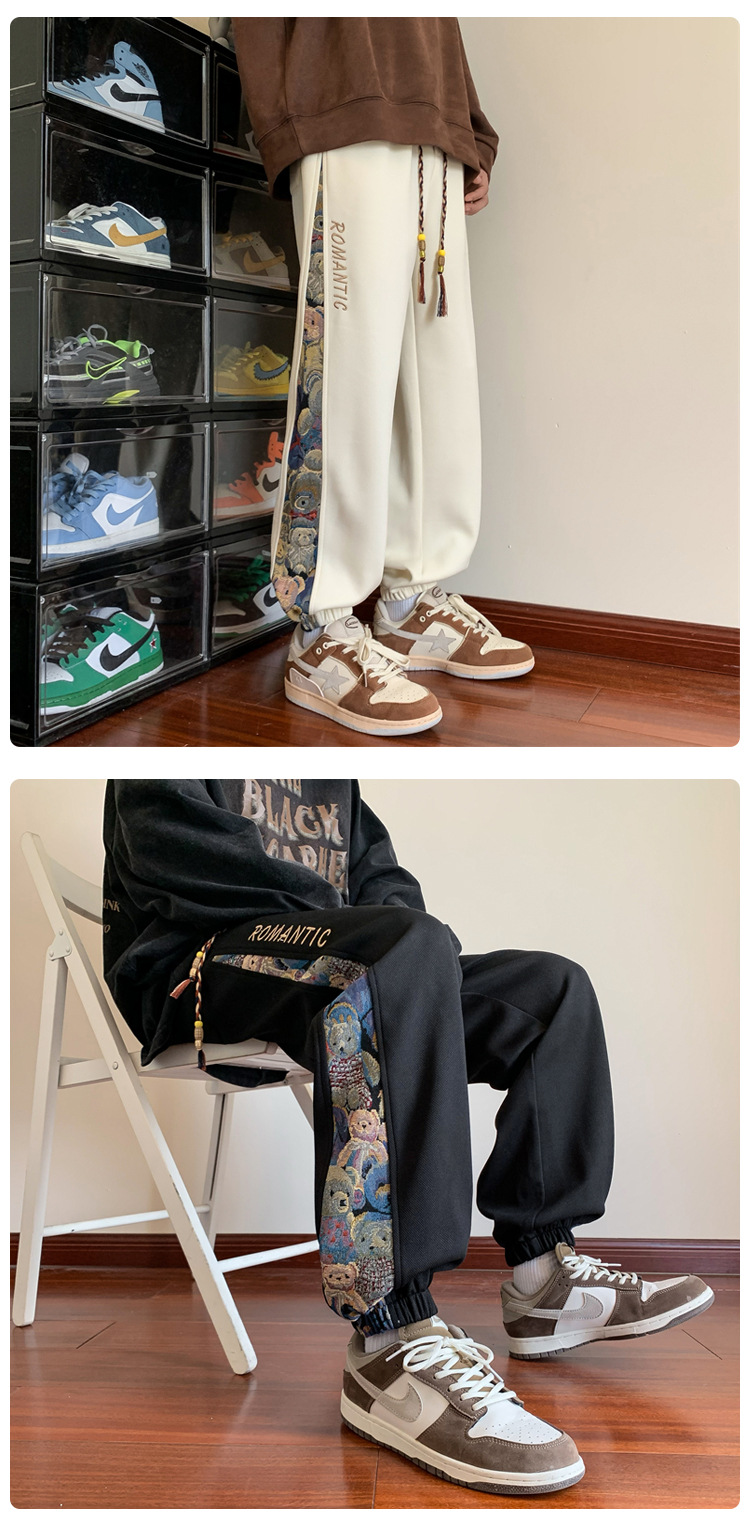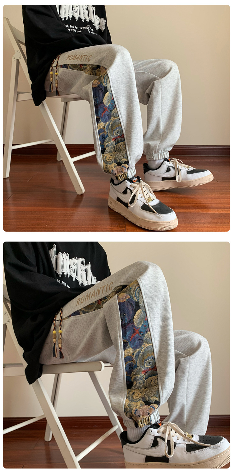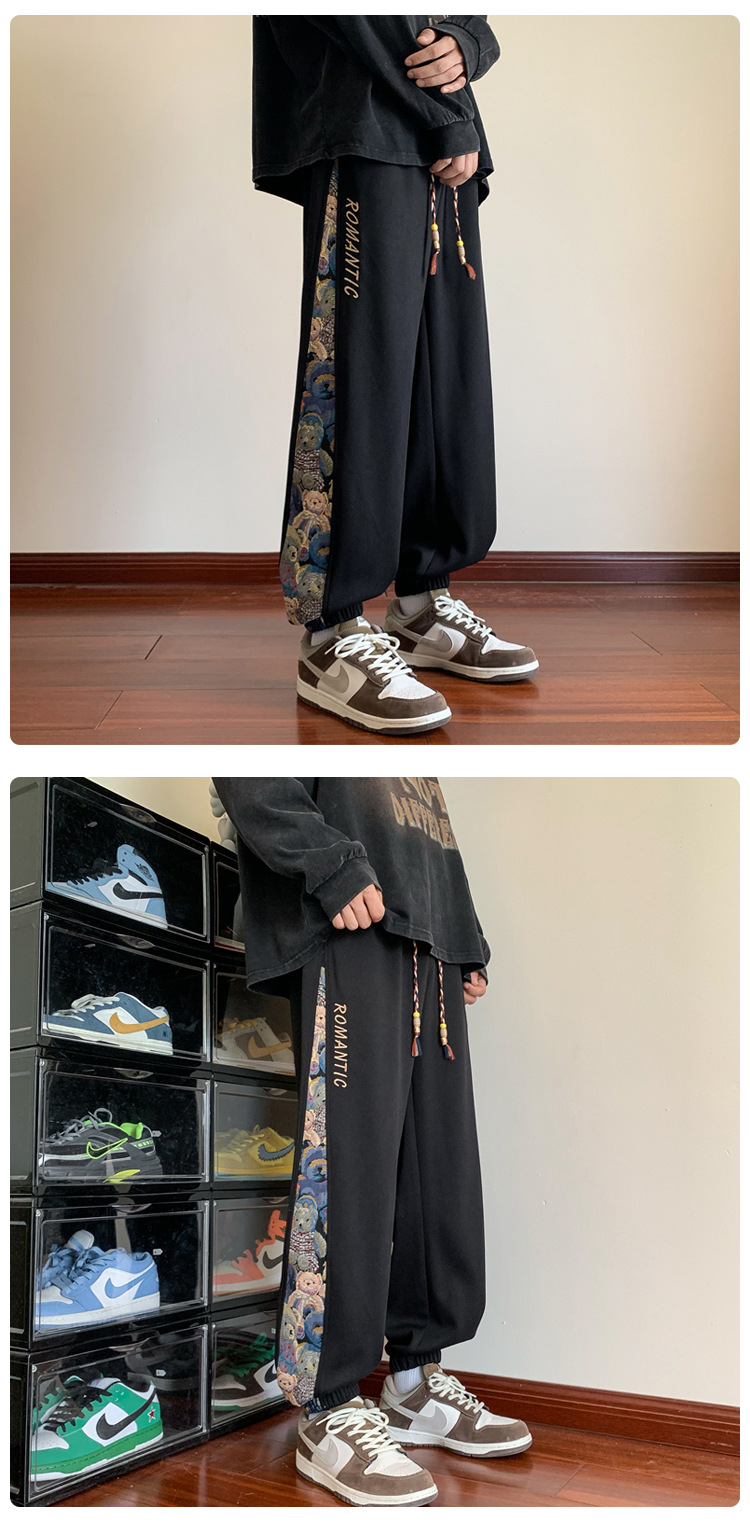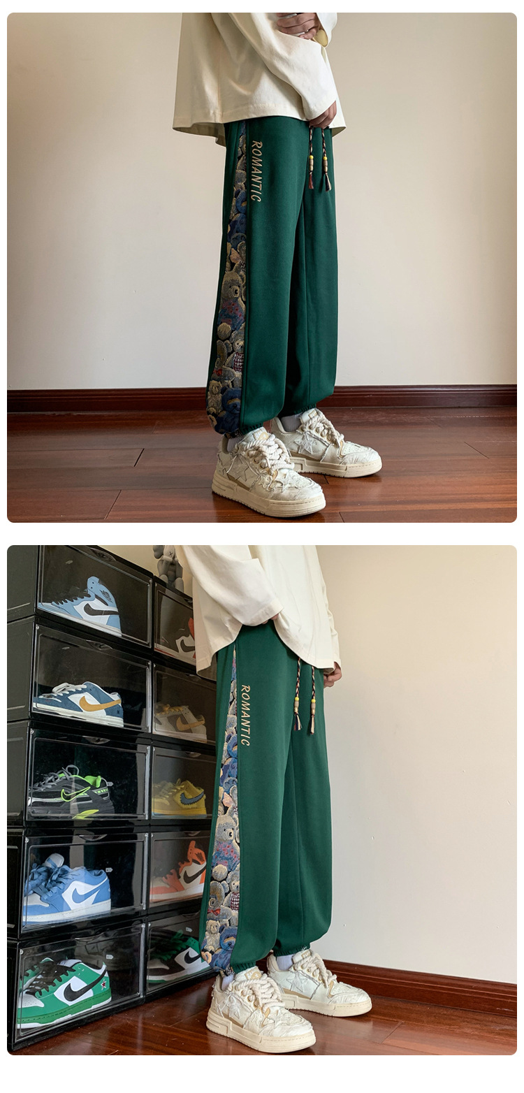 24 새로운 국가 스타일 발 바인딩 바지 남자의 가을/겨울 새로운 중국 자수 플러스 사이즈 느슨한 와이드 레그 캐주얼 스포츠 바지스토어 가기