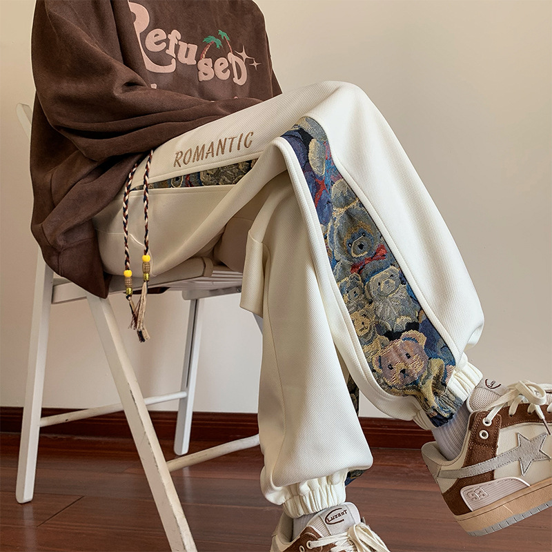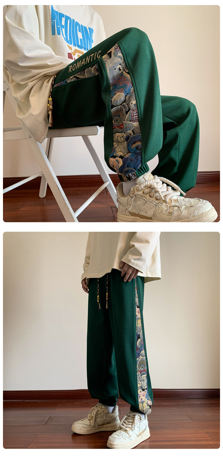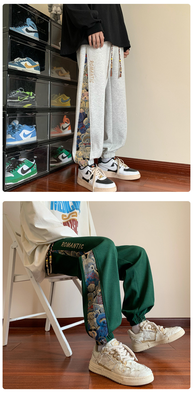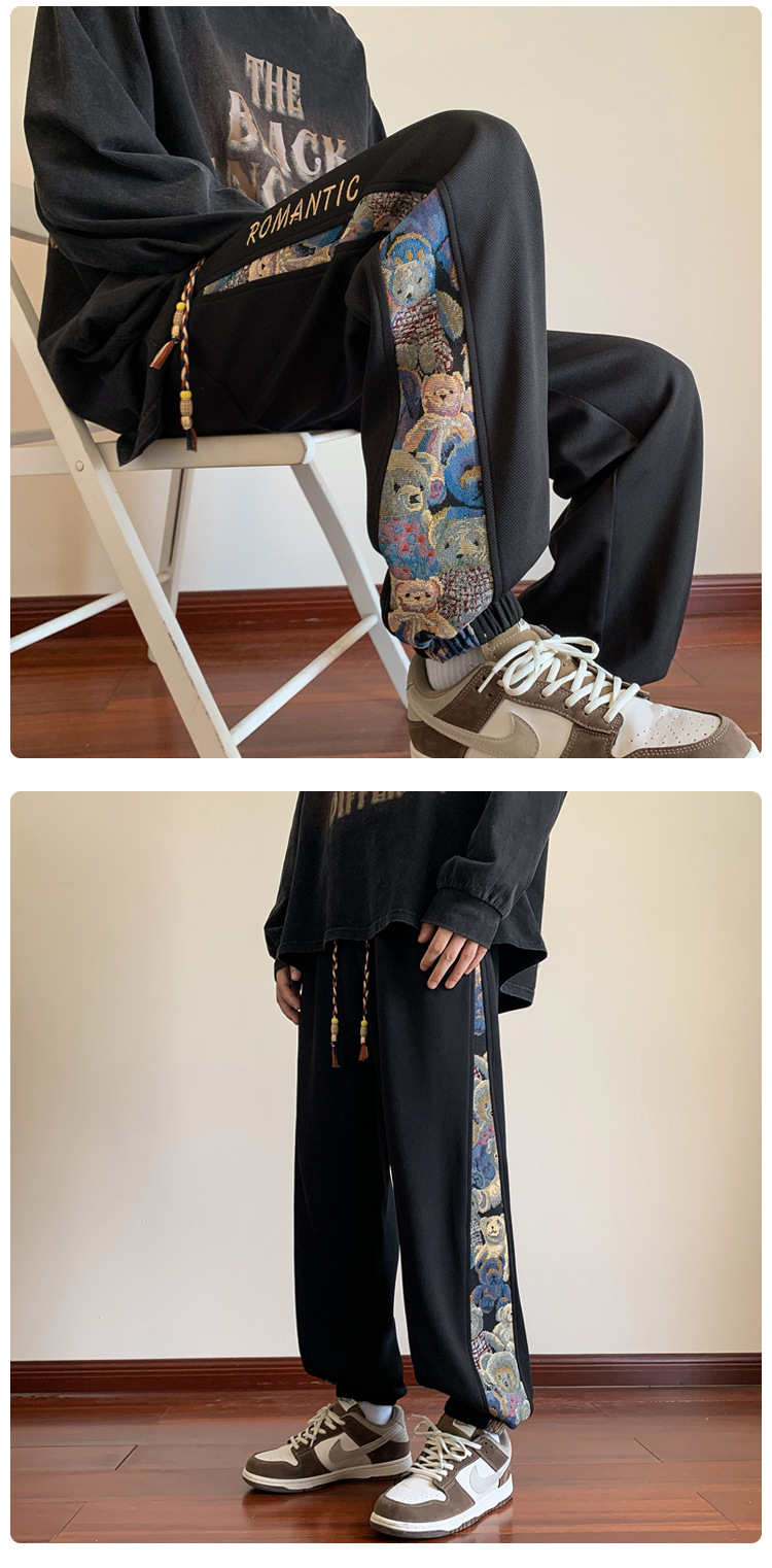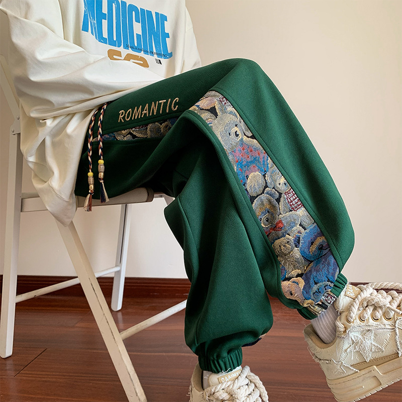 24 새로운 국가 스타일 발 바인딩 바지 남자의 가을/겨울 새로운 중국 자수 플러스 사이즈 느슨한 와이드 레그 캐주얼 스포츠 바지스토어 가기