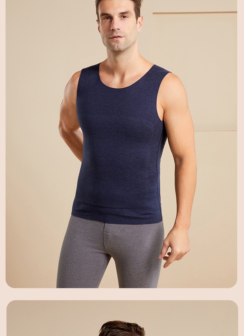 양모 따뜻한 남자 조끼 겨울 기모 두껍게베이스 내복 탑 중년 및 노인을위한 냉간 면화 조끼