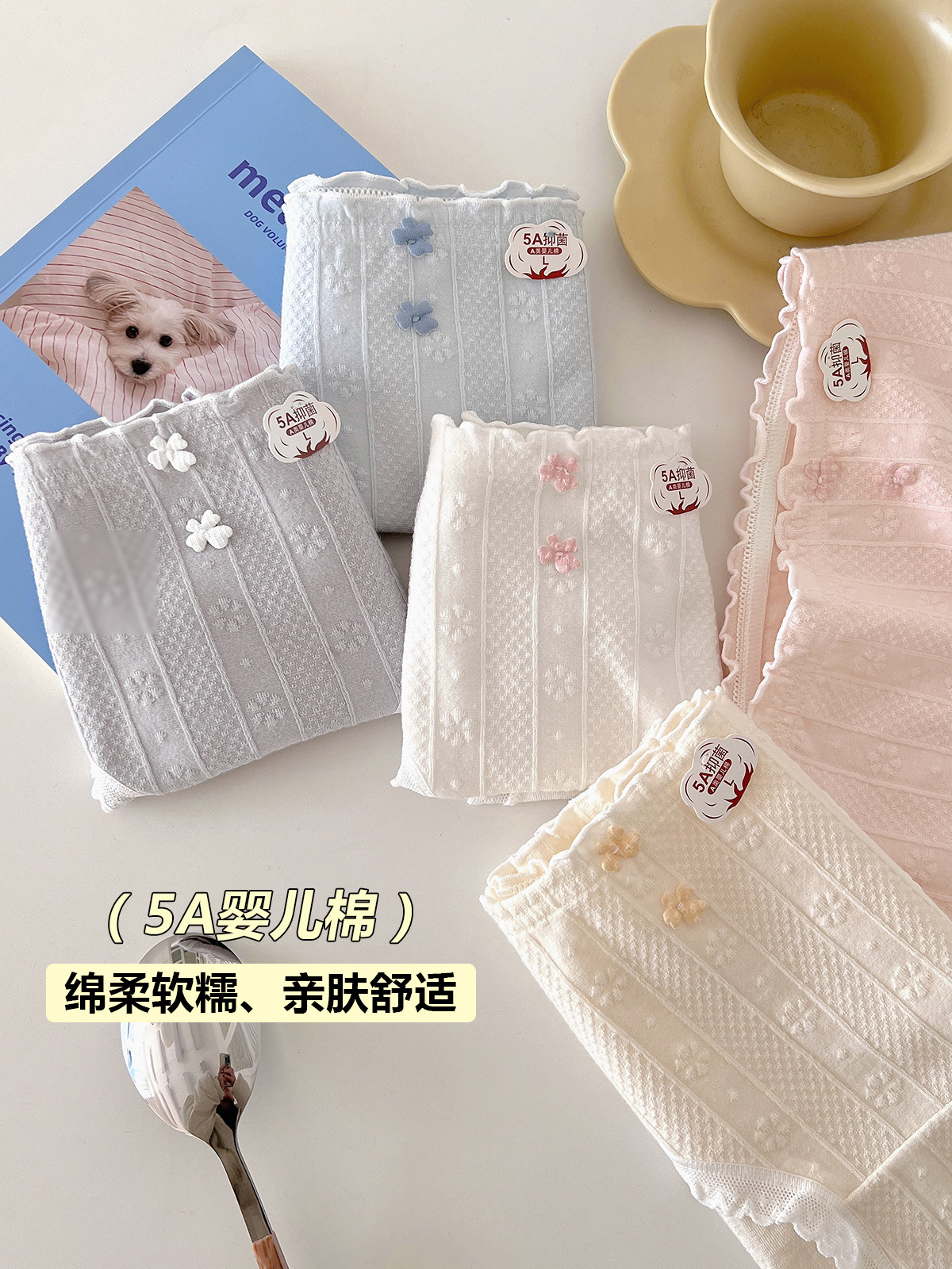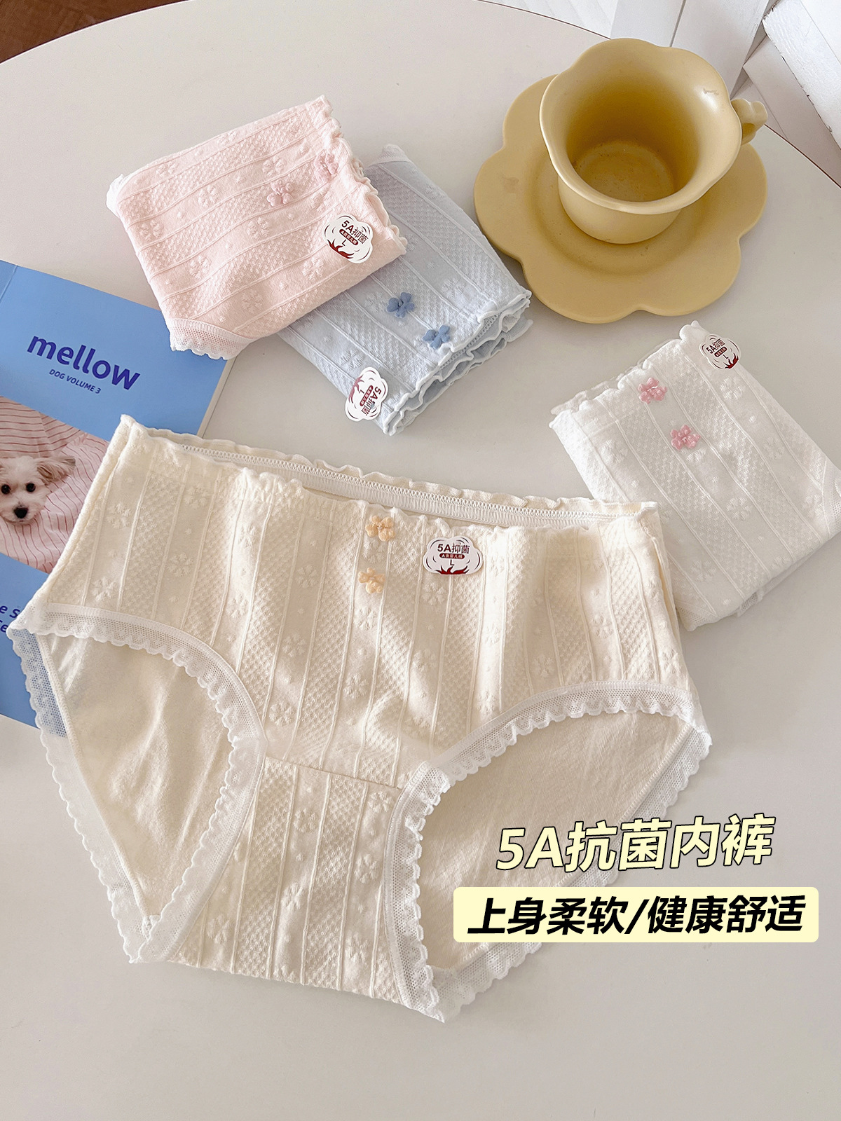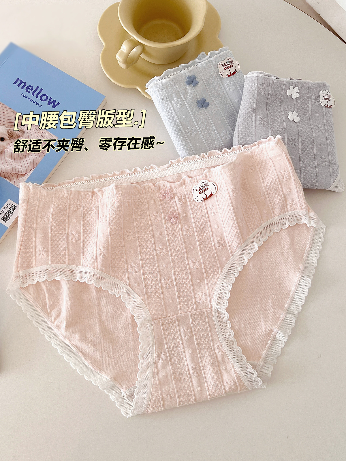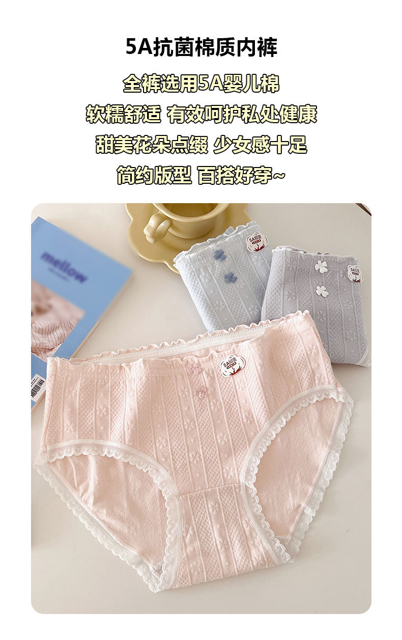 5A 항균 아기 면화 소녀 속옷 부드러운 자카드 편안한 달콤한 중간 허리 탄성 학생 브리프스토어 가기