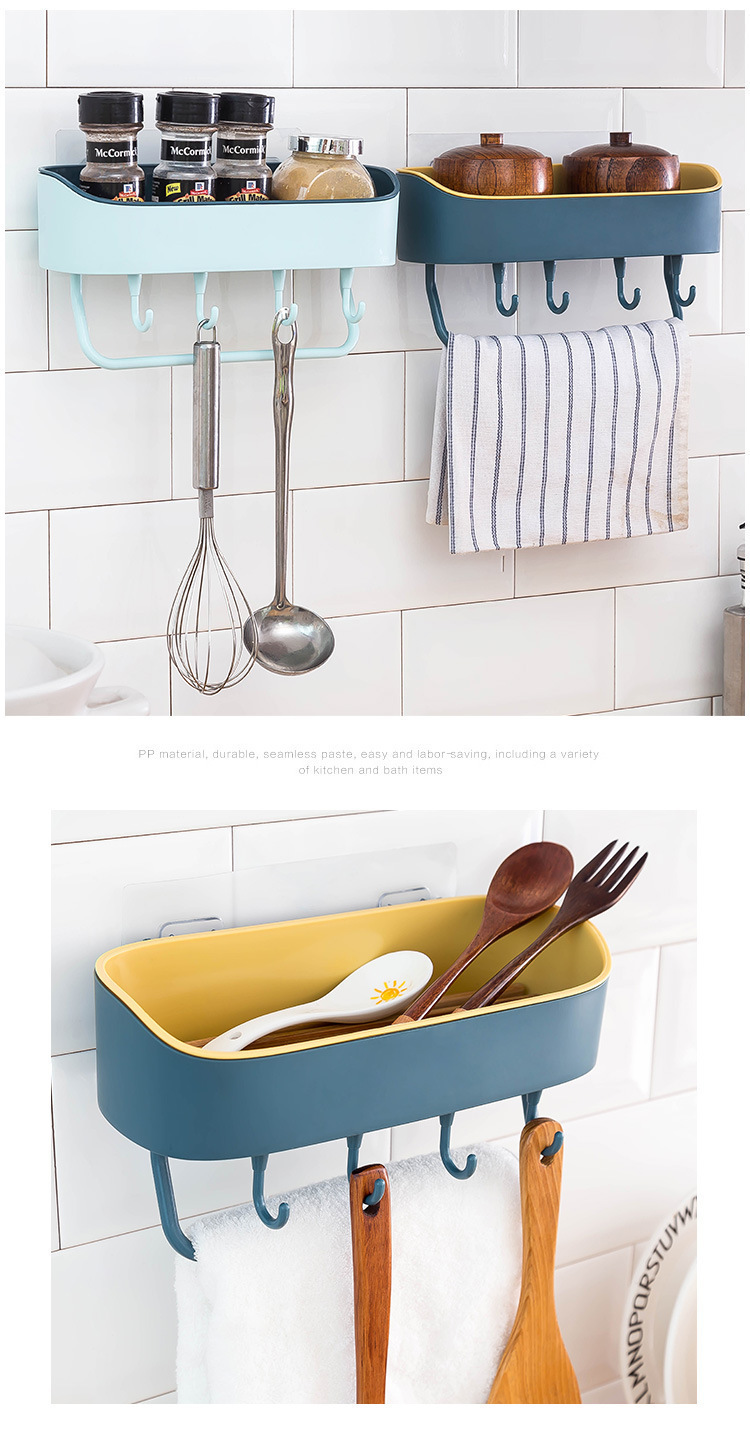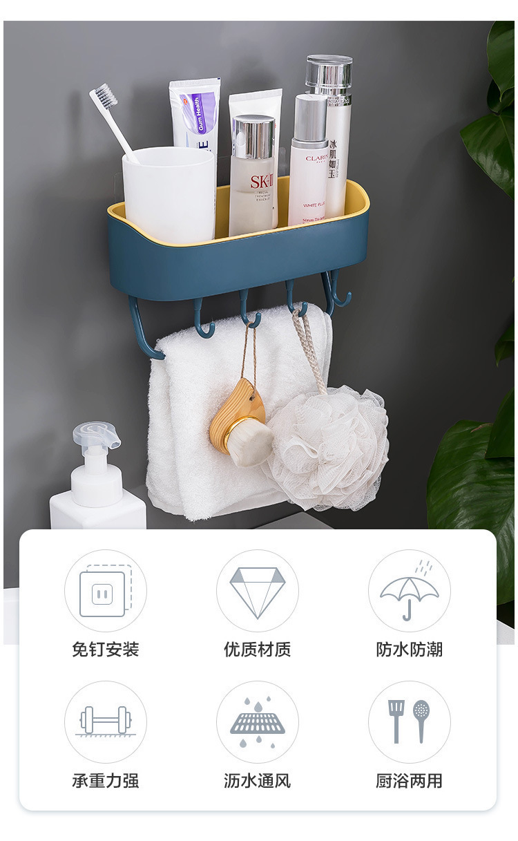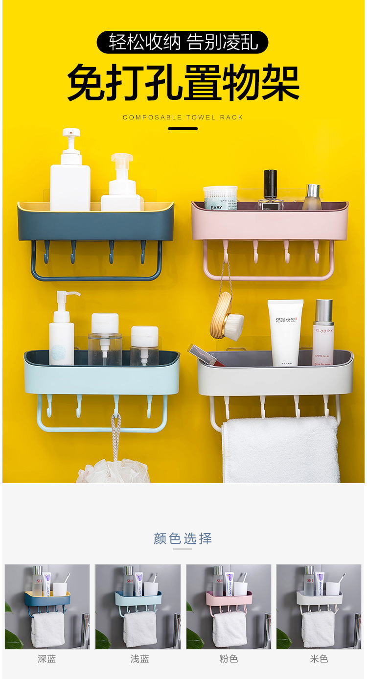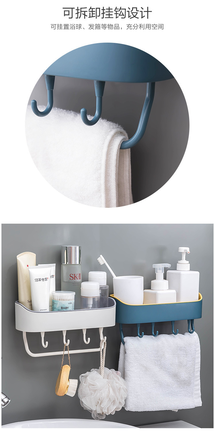새로운 2 색 가정용 4 후크 화장실 보관 랙 욕실 다기능 벽 흡입 비 펀칭 벽 매달린 보관 랙스토어 가기