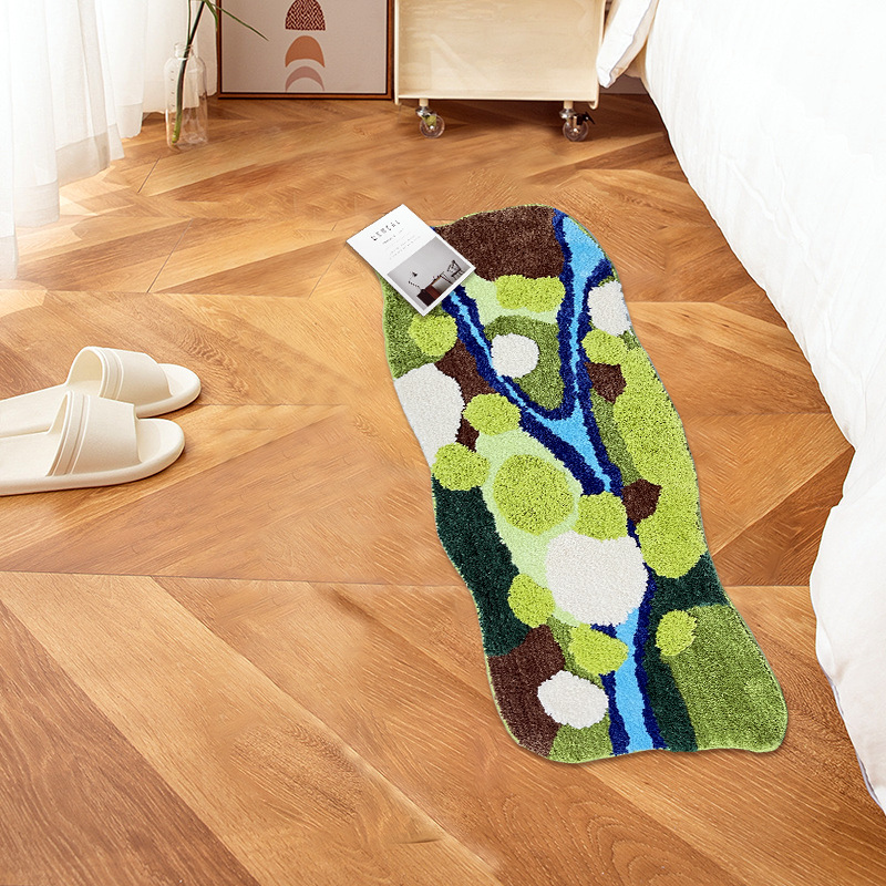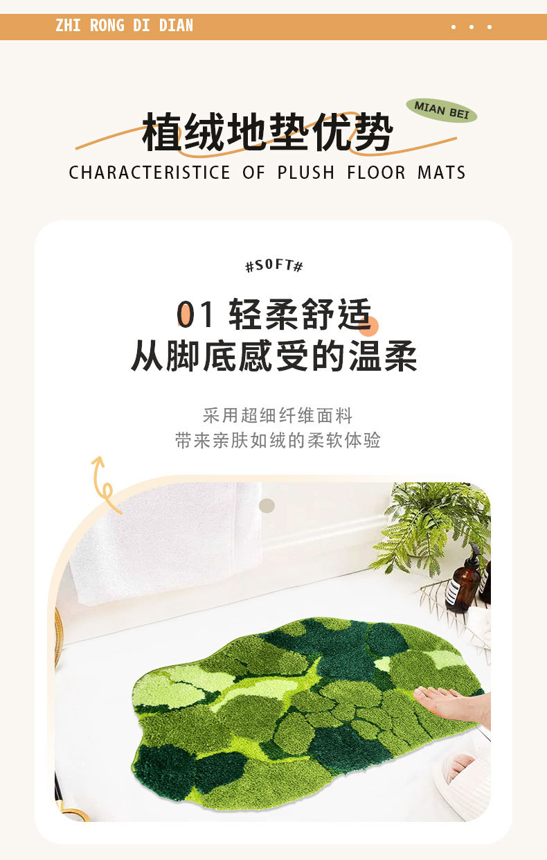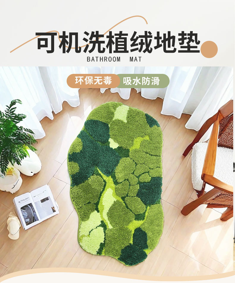 Ins 스타일 고급 그린 모스 카펫 욕실 흡수성 미끄럼 방지 매트 도어 웨이 풋 매트 홈 잠금 매트