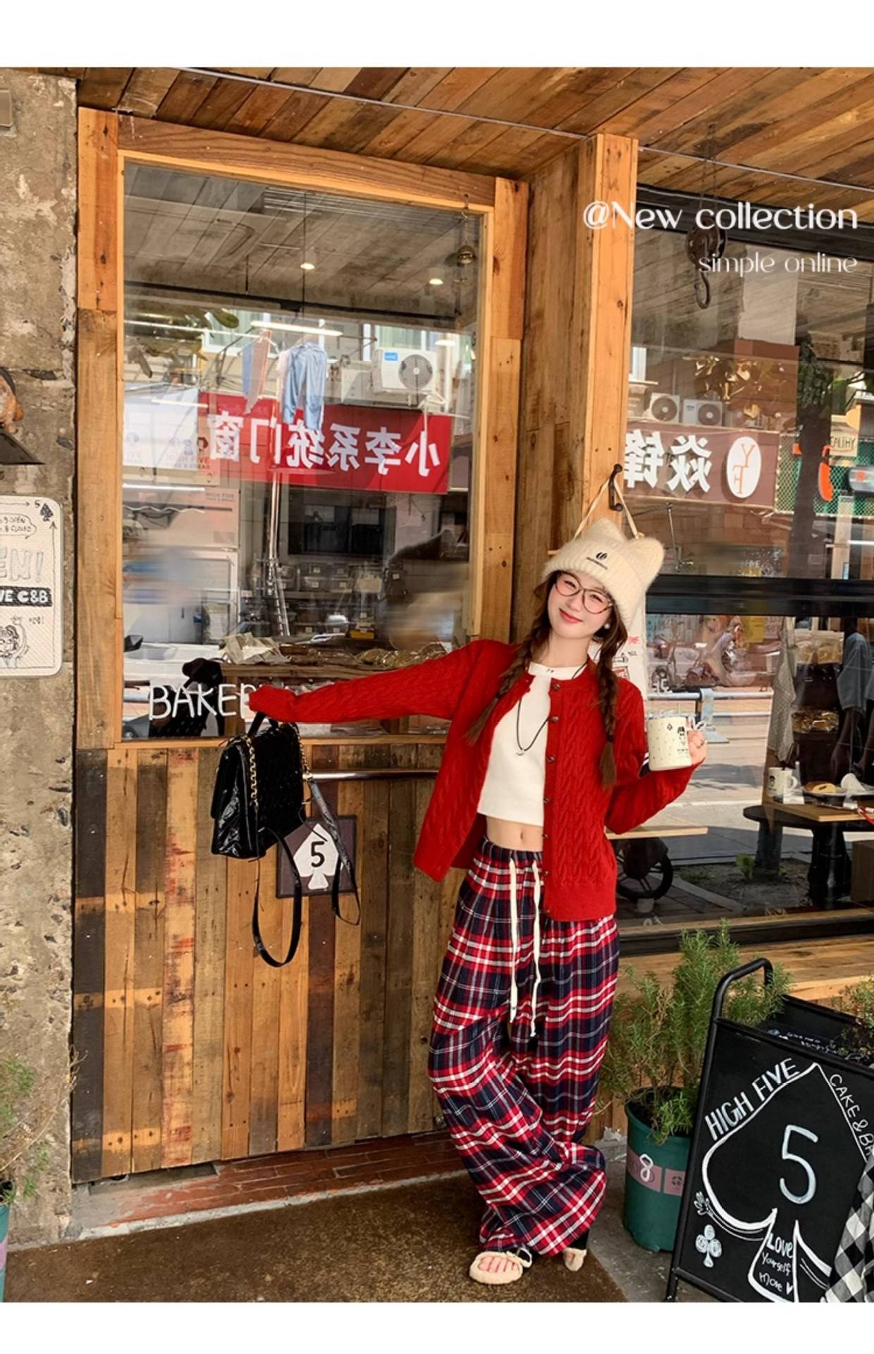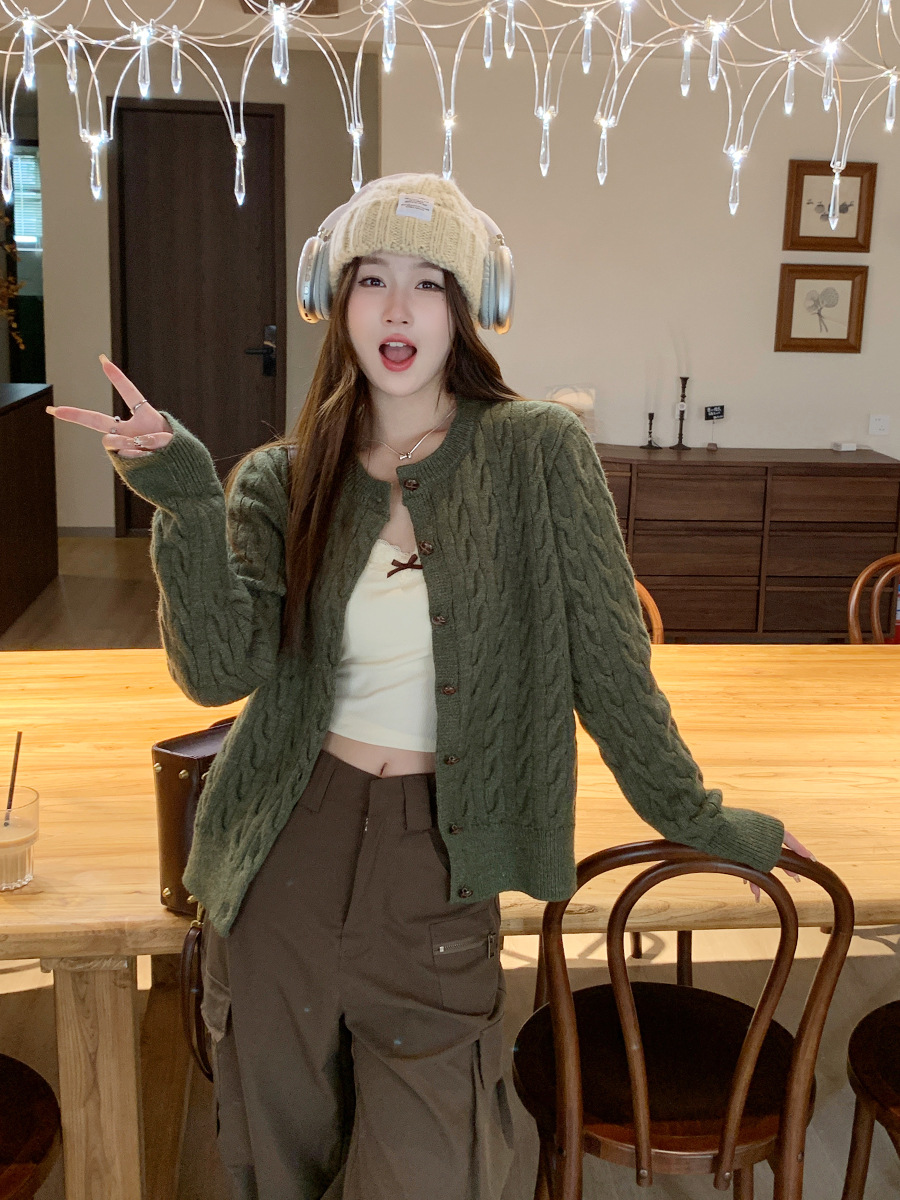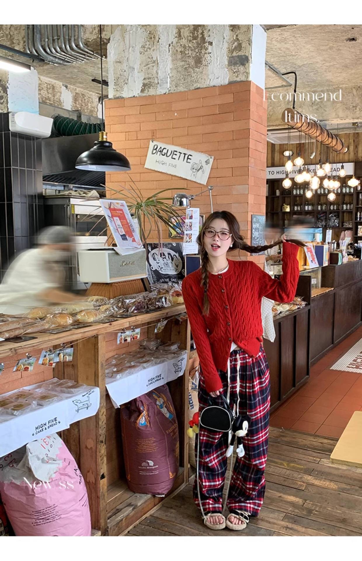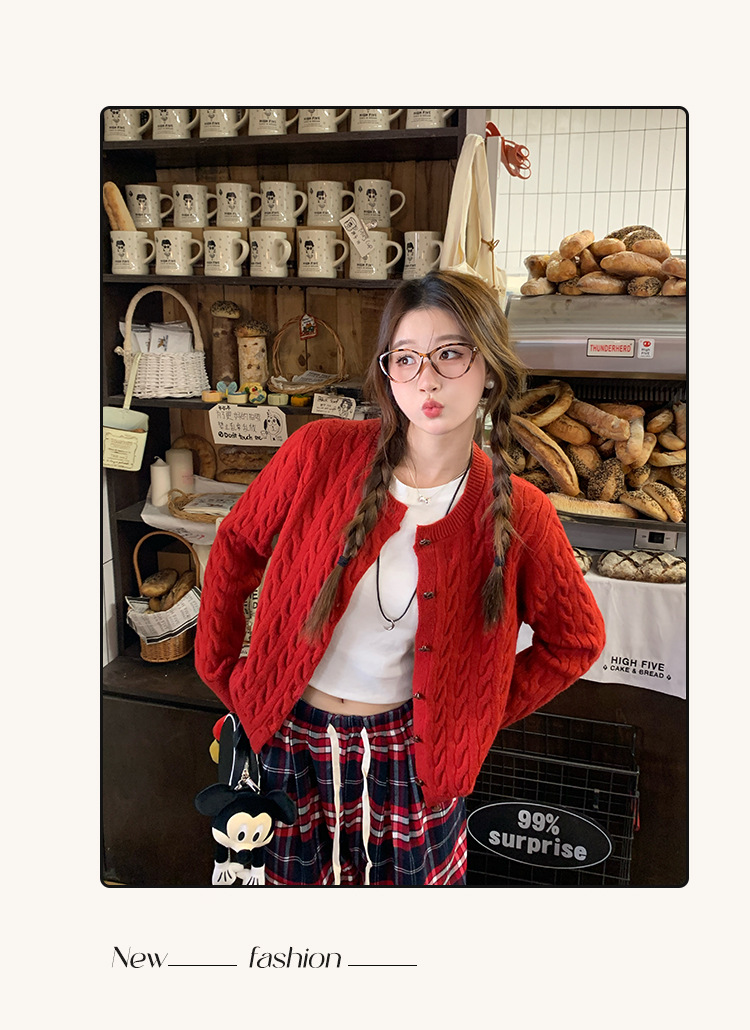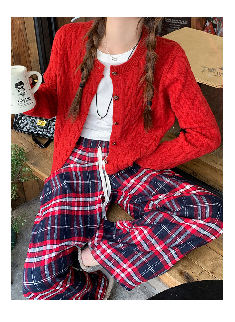 안코라 레드 스웨터 가디건 여성용 2025 신상 봄 가을 루즈핏 레이지 스타일 레드 코트 상의스토어 가기