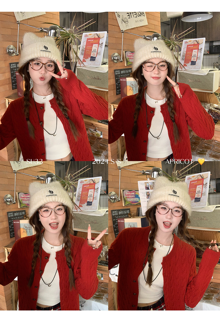 안코라 레드 스웨터 가디건 여성용 2025 신상 봄 가을 루즈핏 레이지 스타일 레드 코트 상의