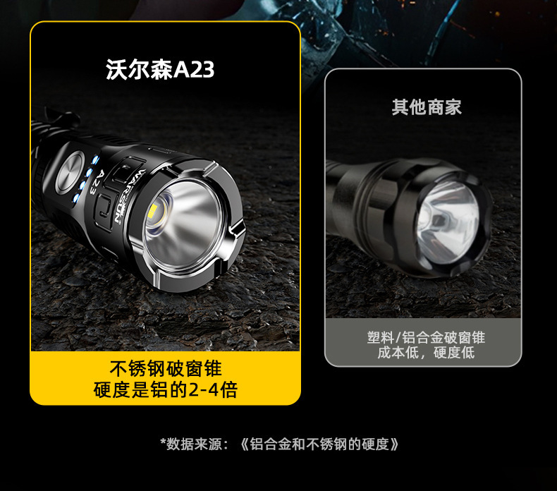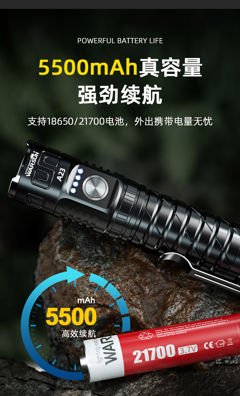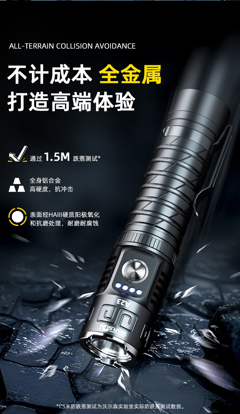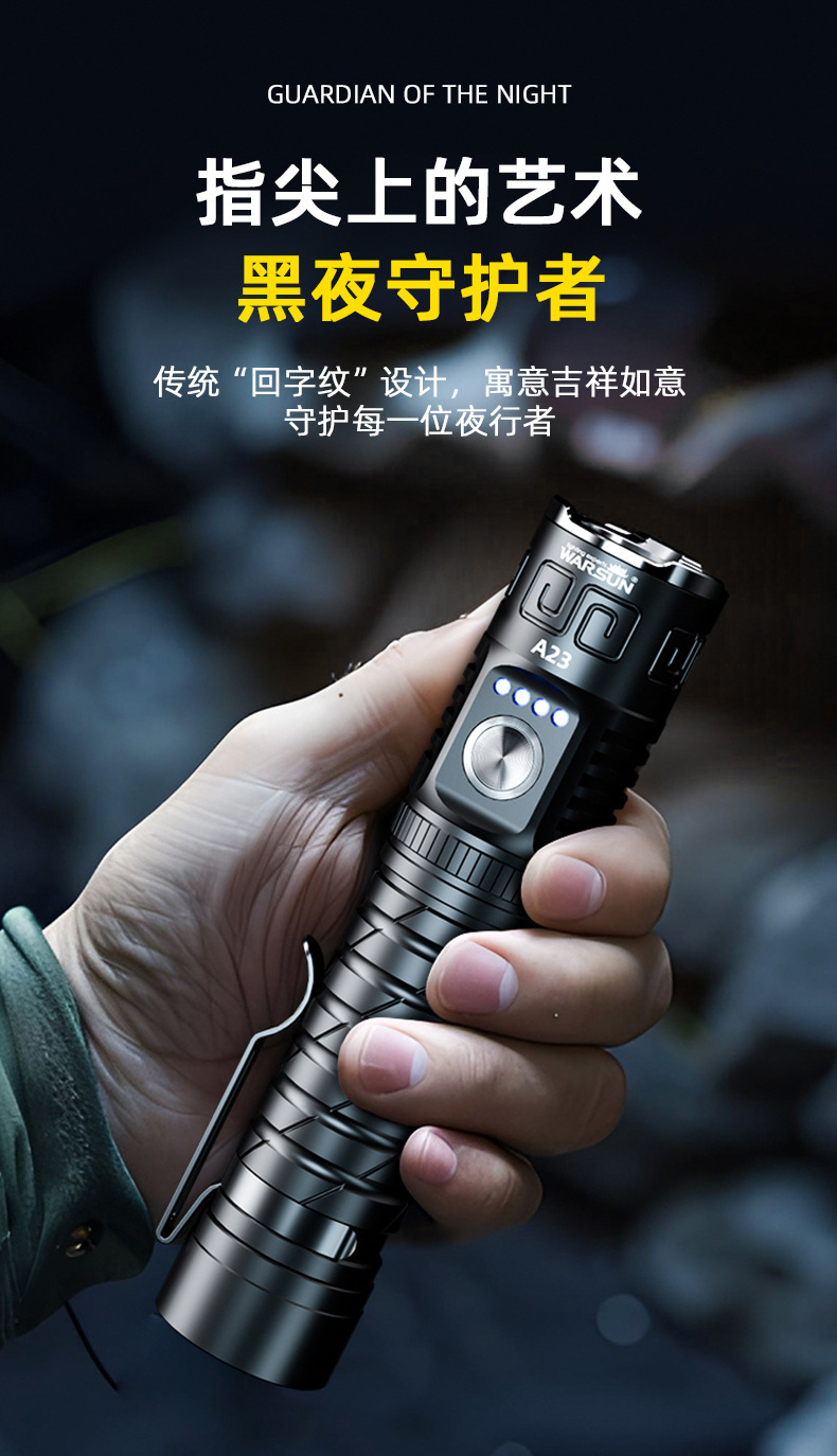 월슨 제조 업체 A23 손전등 확대 긴 샷 슈퍼 밝은 충전식 휴대용 야외 조명 비상 조명