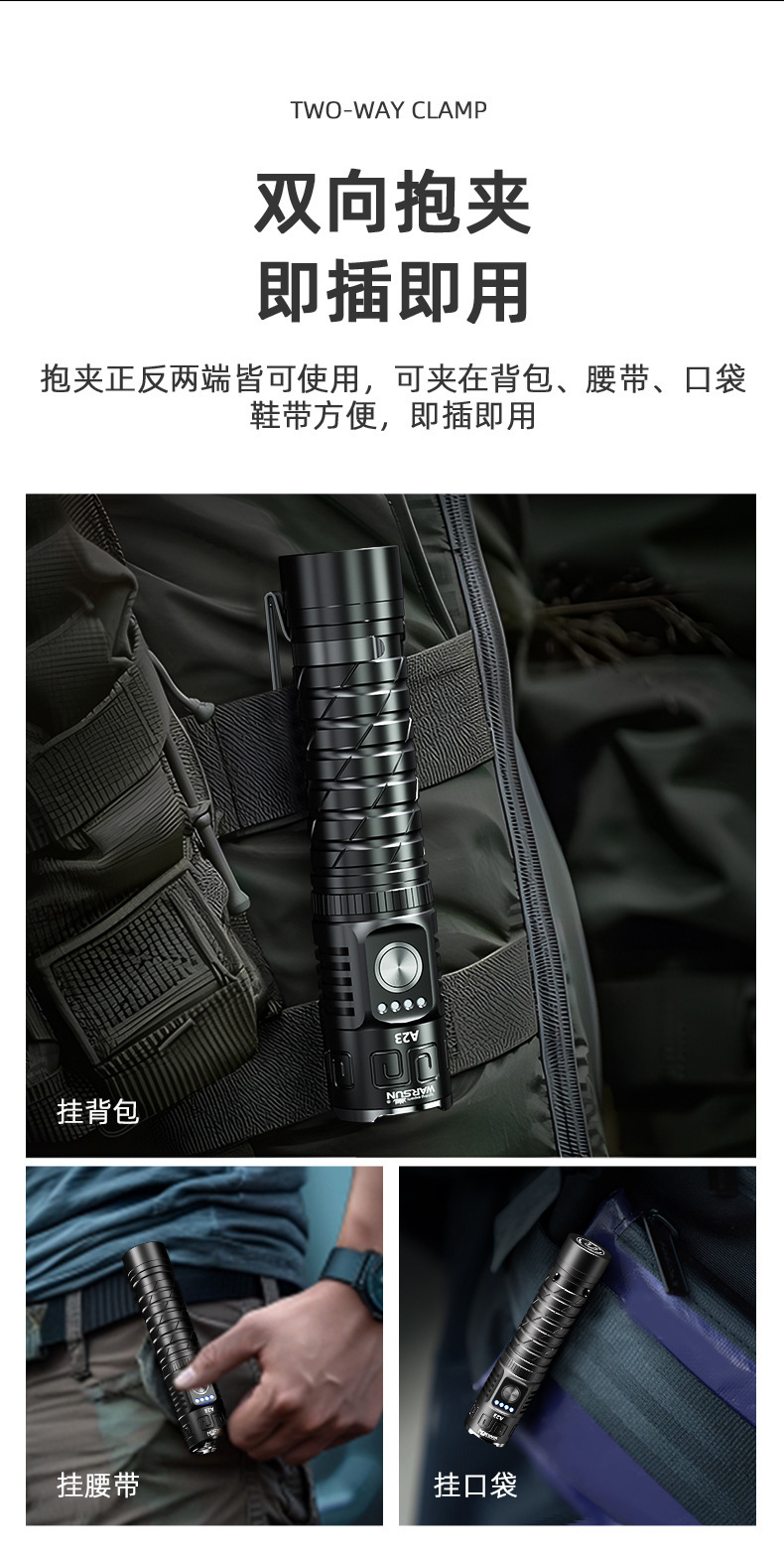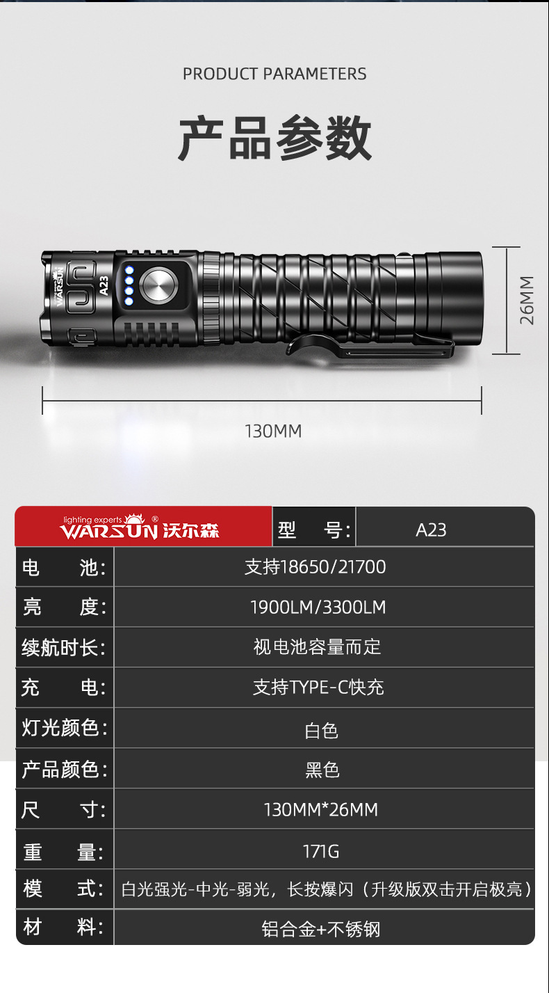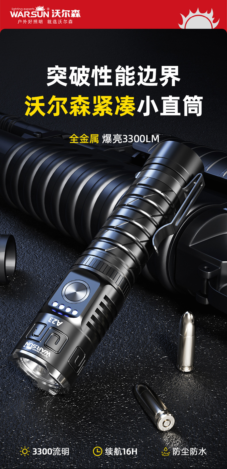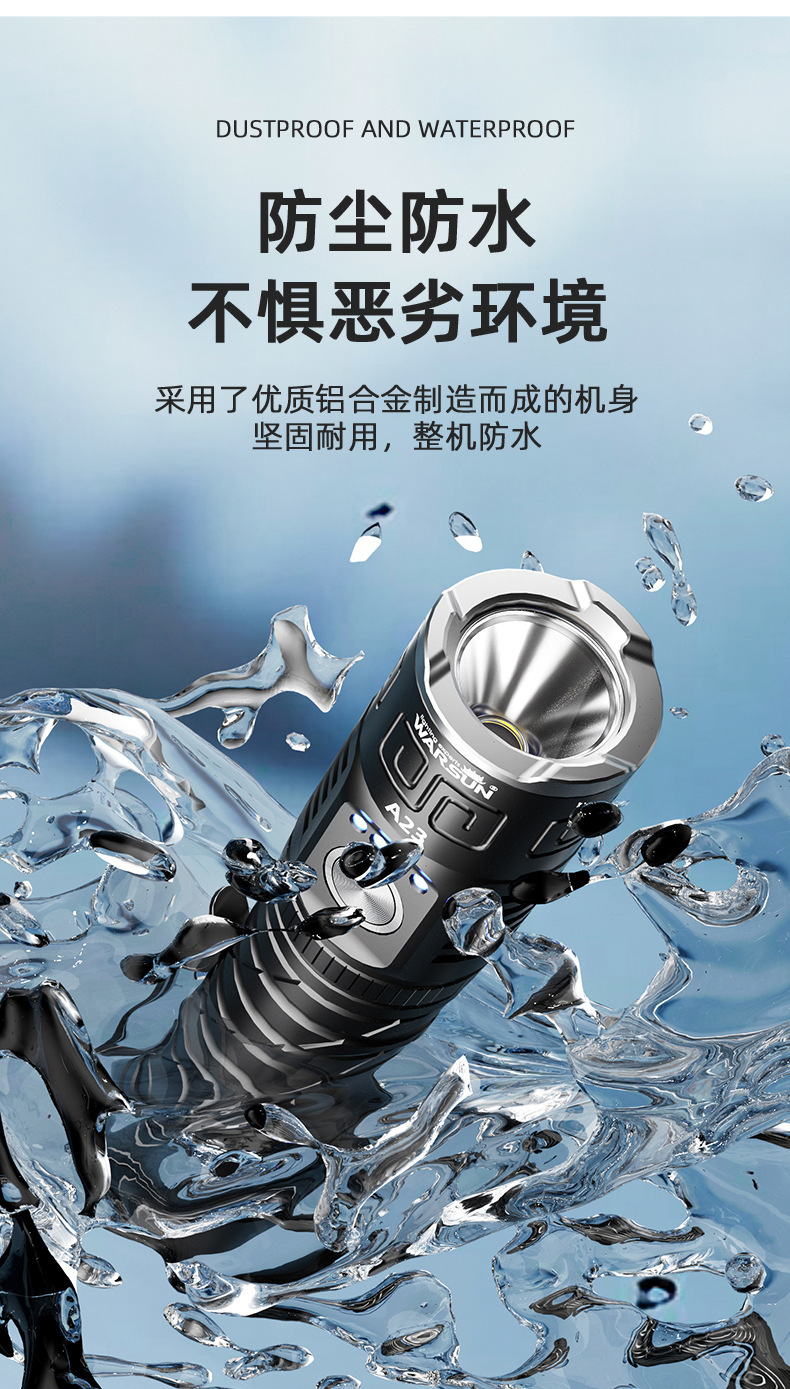 월슨 제조 업체 A23 손전등 확대 긴 샷 슈퍼 밝은 충전식 휴대용 야외 조명 비상 조명