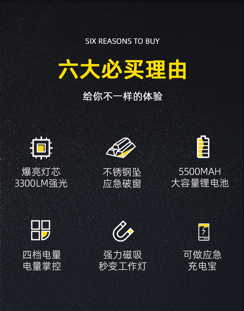 • 5050 램프 비드(쿼드 코어 매우 밝은 버전/5500mAh, 3300루멘)
