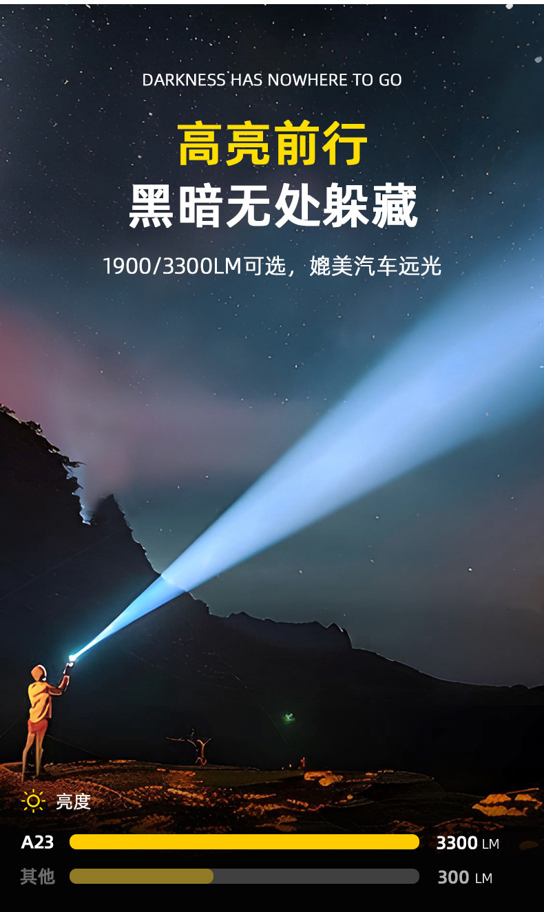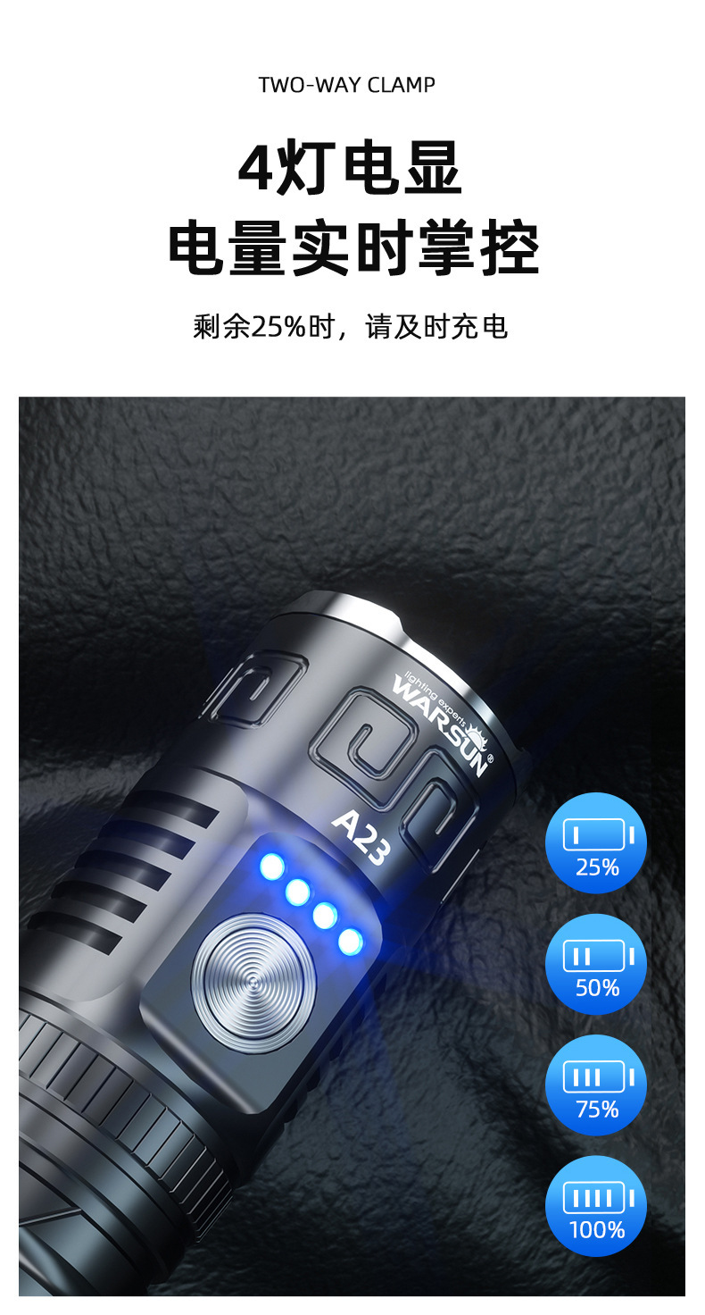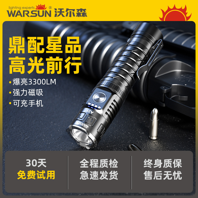 월슨 제조 업체 A23 손전등 확대 긴 샷 슈퍼 밝은 충전식 휴대용 야외 조명 비상 조명스토어 가기