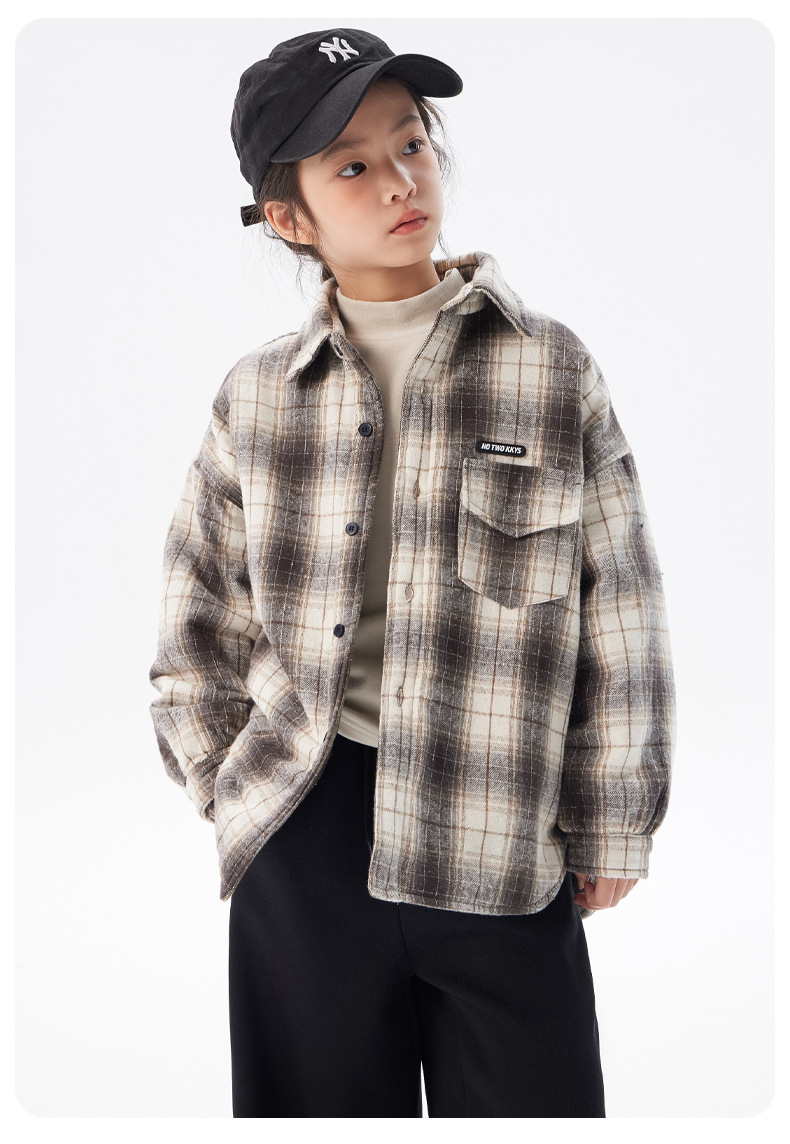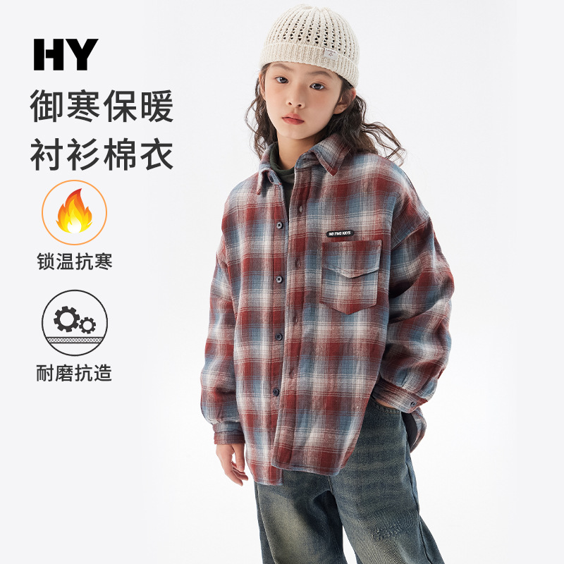 어린이 퀼트 두꺼운 셔츠 재킷 2025 겨울 새 스타일 소녀 한국 스타일 따뜻한 긴팔 중대형 어린이 가을, 겨울 의류