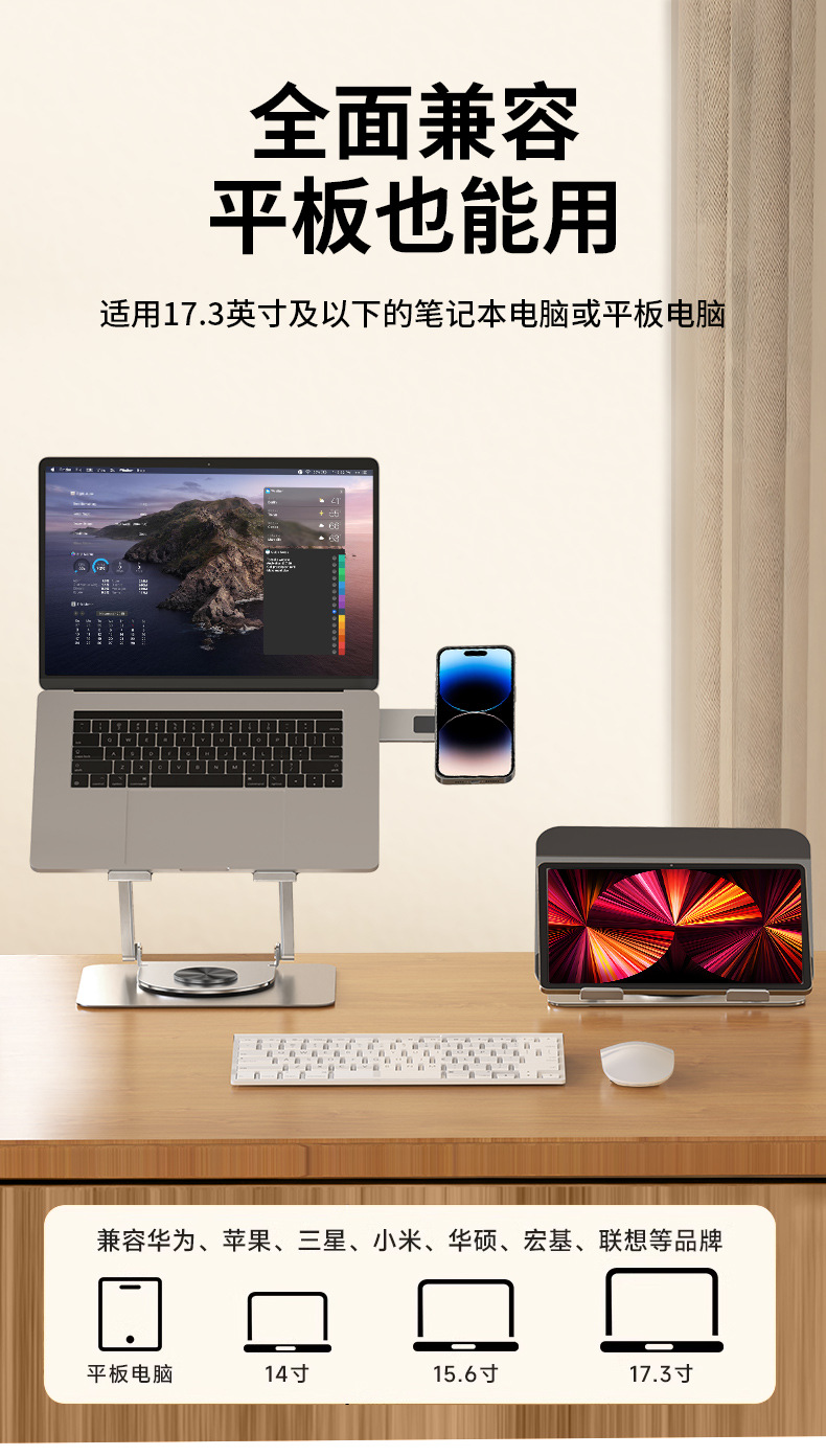 자기 매력 회전 가능한 노트북 브래킷 데스크탑 리프팅 프레임이있는 탄소 강철 360 도 휴대 전화 브래킷
