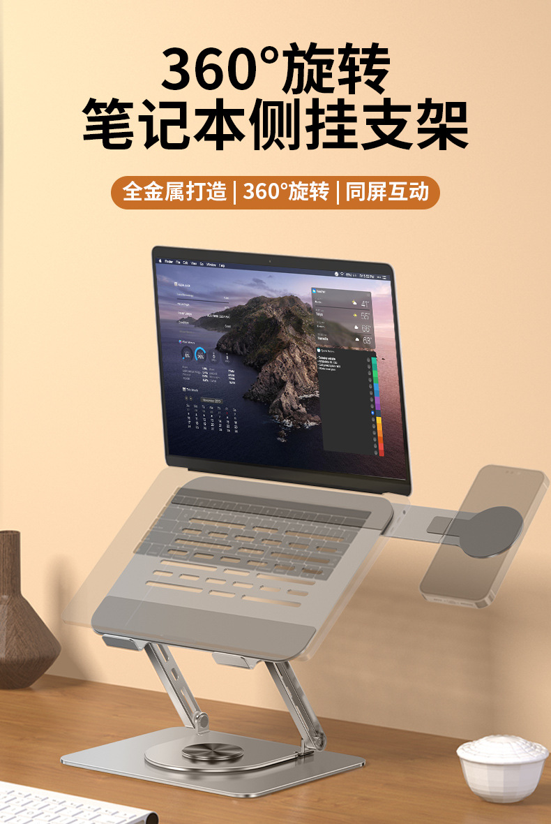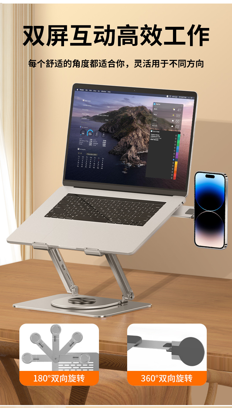 자기 매력 회전 가능한 노트북 브래킷 데스크탑 리프팅 프레임이있는 탄소 강철 360 도 휴대 전화 브래킷스토어 가기