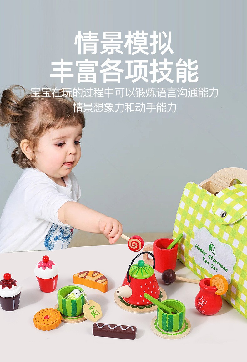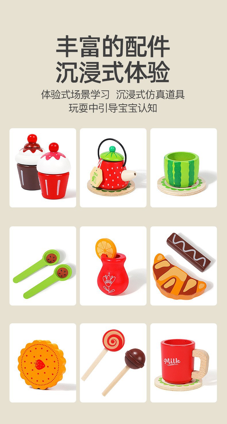 국경 나무 어린이 애프터눈 티 디저트 시뮬레이션 차 세트 핸드백 세트 교육 어린이 놀이 집 장난감스토어 가기