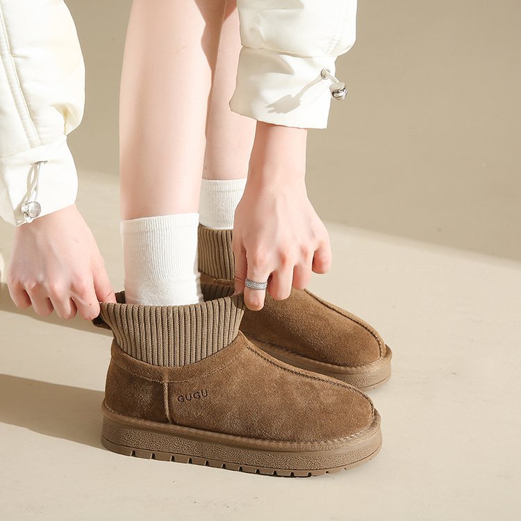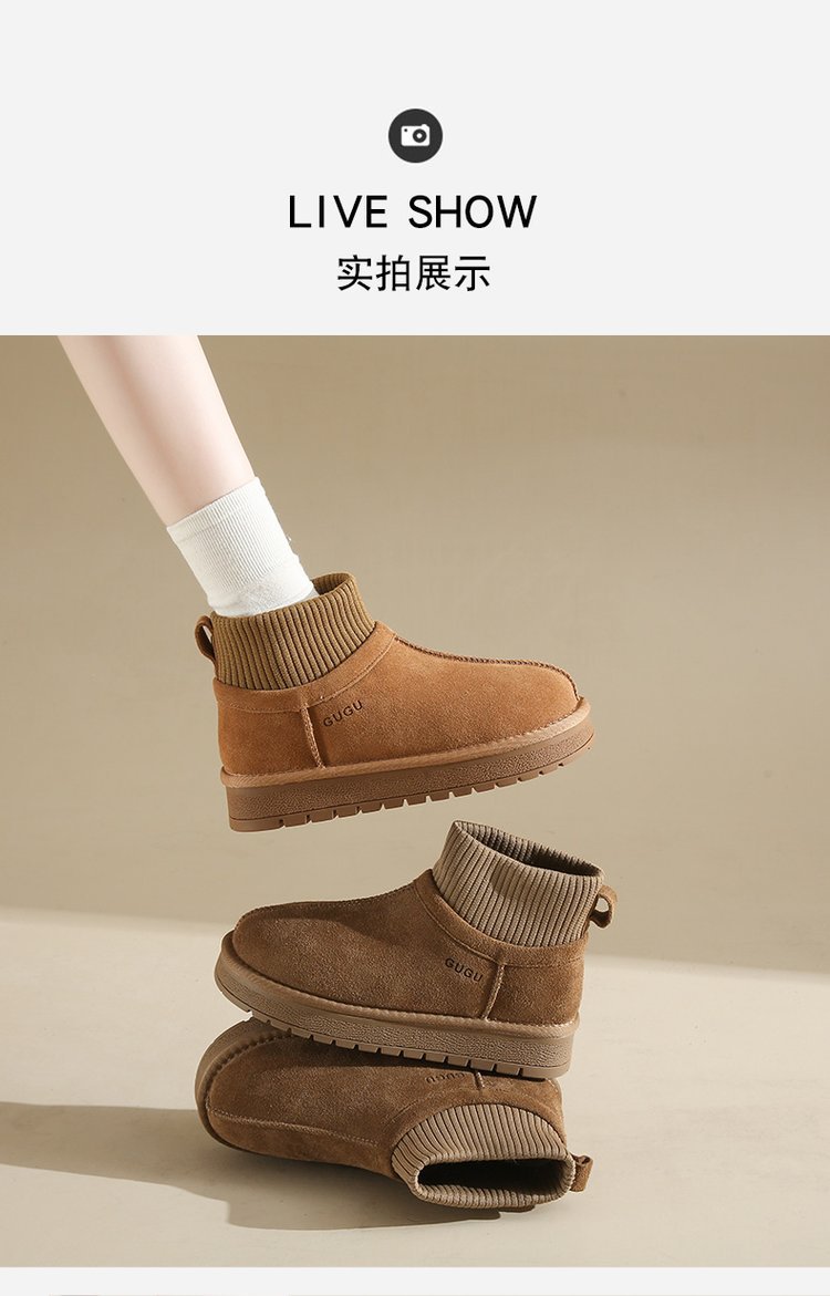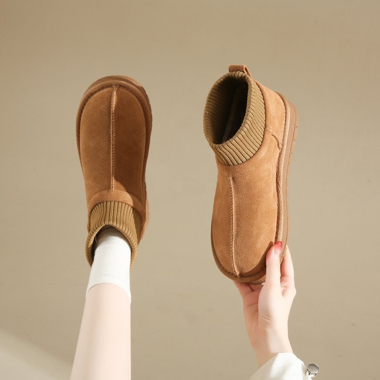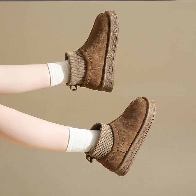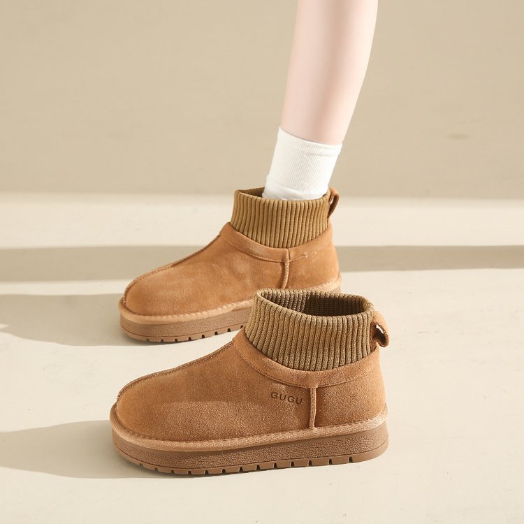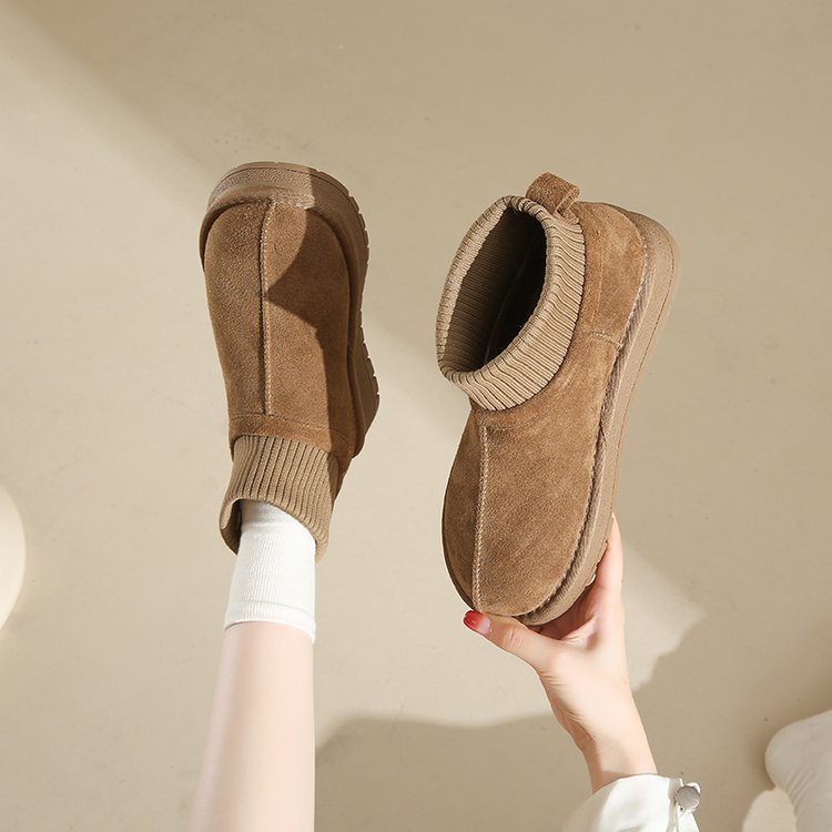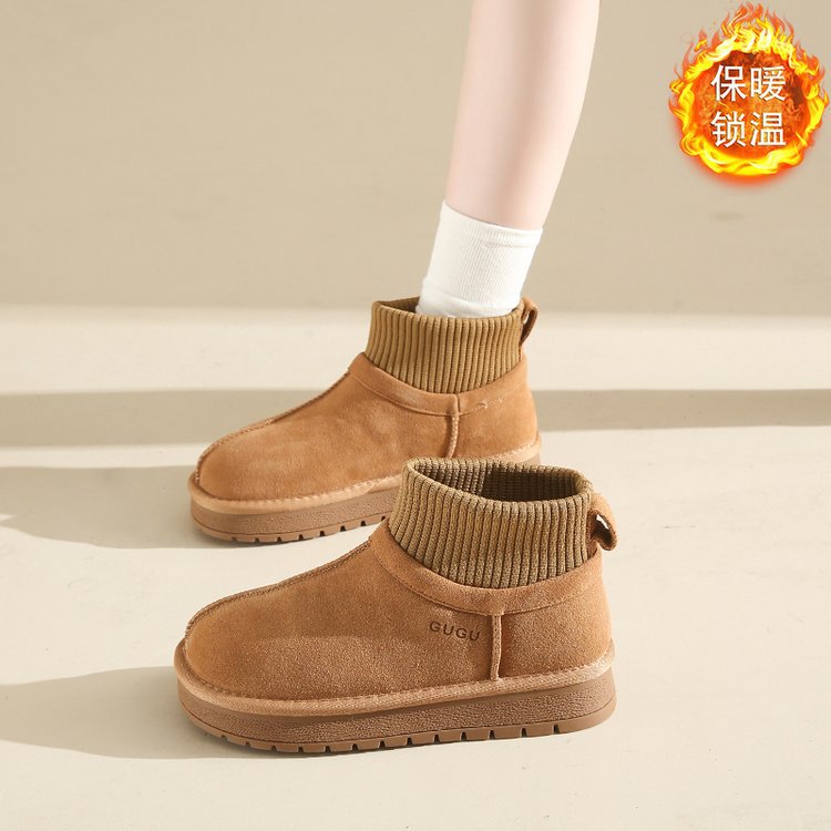 부드러운 가죽 버전 ~ 얇은 부츠 두꺼운 바닥 스노우 부츠 여성 2024 겨울 새로운 기모 두꺼운 따뜻한 니트 코튼 부츠 조수스토어 가기