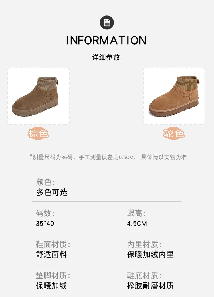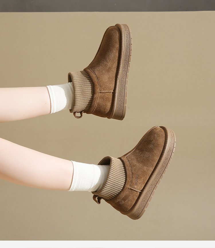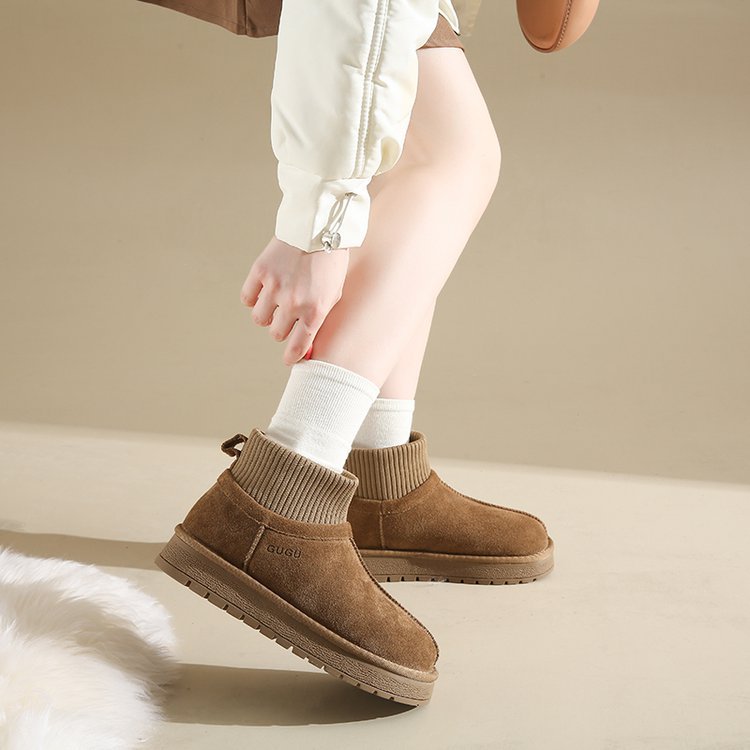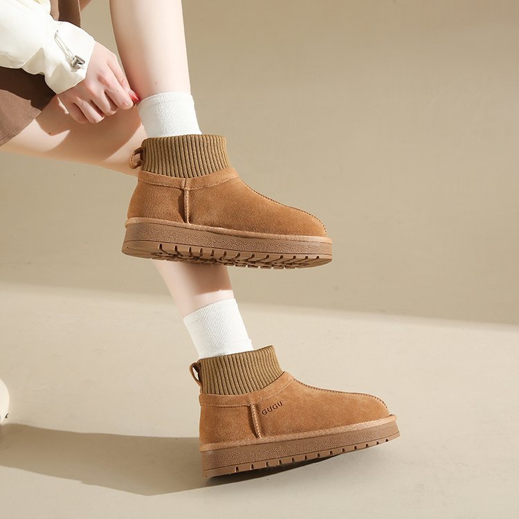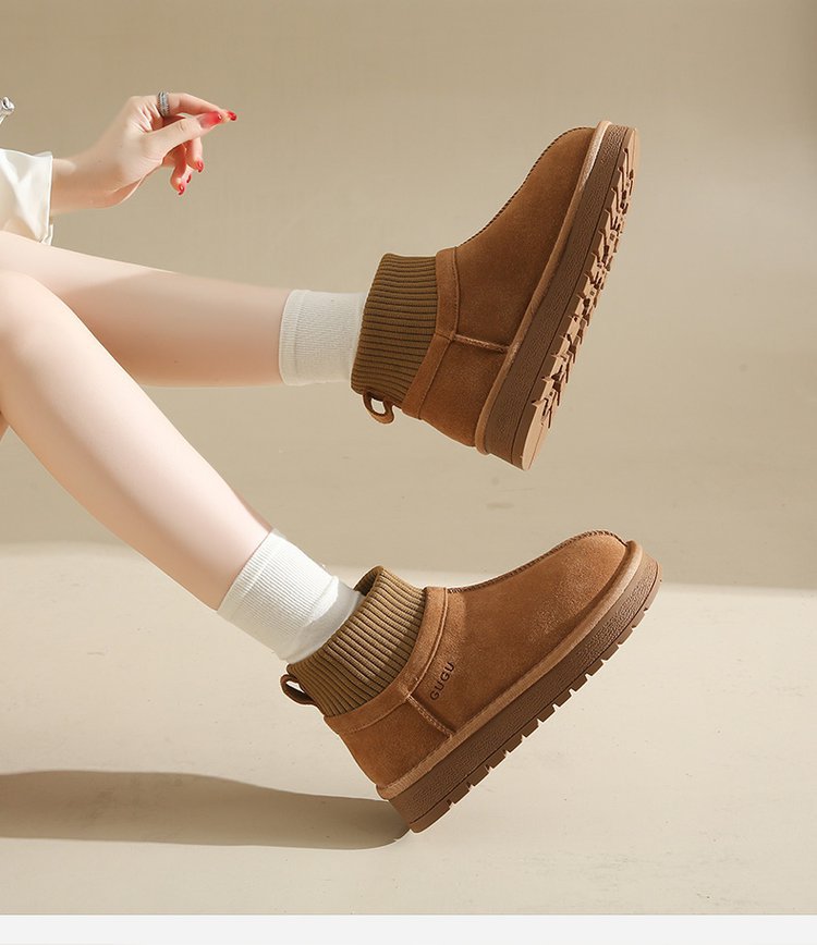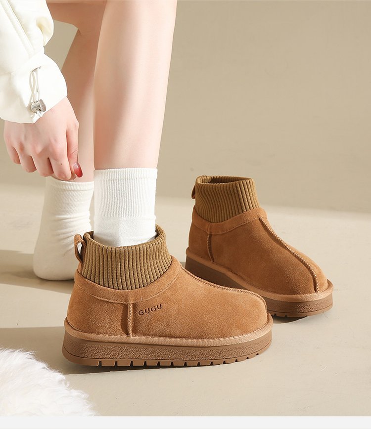 부드러운 가죽 버전 ~ 얇은 부츠 두꺼운 바닥 스노우 부츠 여성 2024 겨울 새로운 기모 두꺼운 따뜻한 니트 코튼 부츠 조수스토어 가기