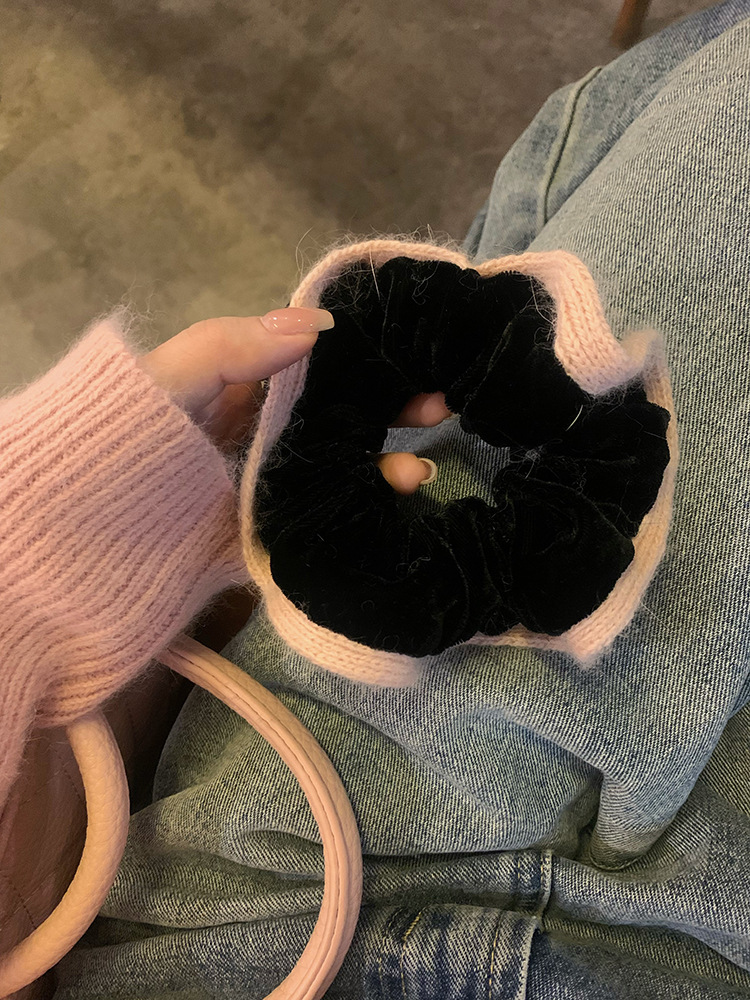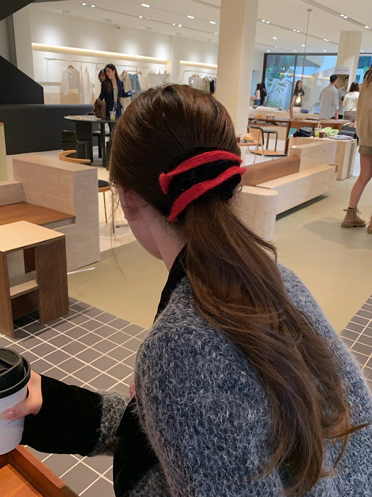 가을과 겨울 포니 테일 헤어 링 대조 컬러 울 패브릭 대형 직감 헤어 링 봉제 새 고무 텐돈 작은 샤넬 스타일 고급 헤드웨어스토어 가기