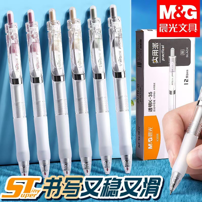 Chenguang 정품 빠른 건조 ST 프레스 K35 젤 펜 학생 서명 실용적인 투명 막대 블랙 및 레드 AGPK3558스토어 가기