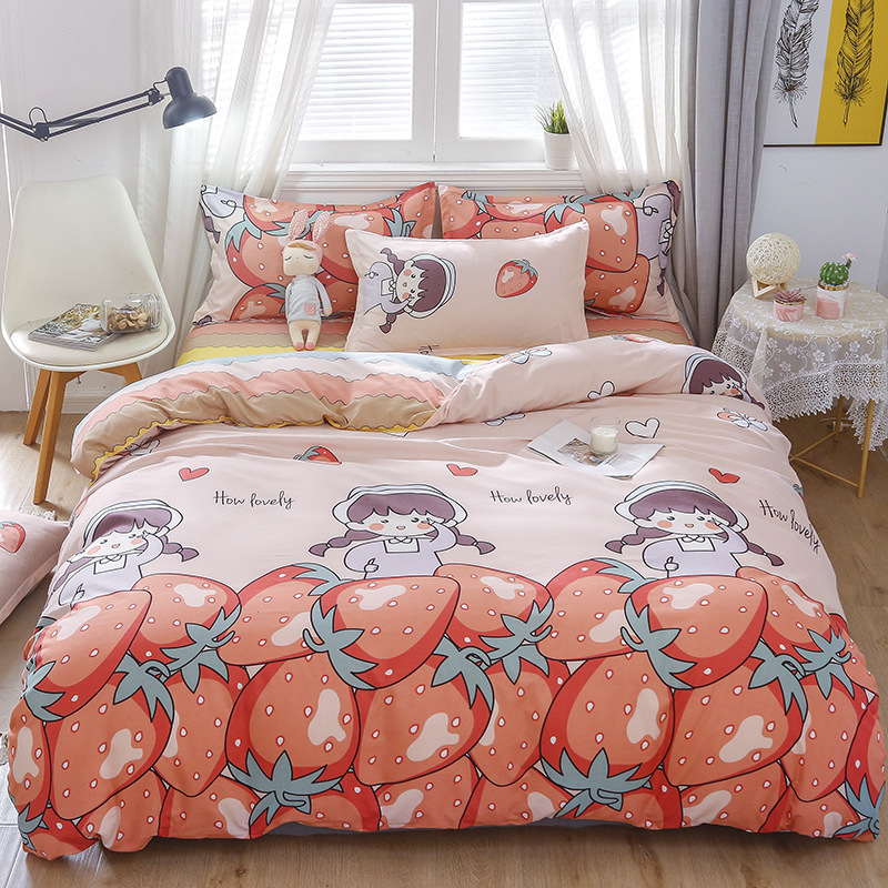 2024新款芦荟棉四件套活印染学生宿舍三件套磨毛款家用印 花四件스토어 가기