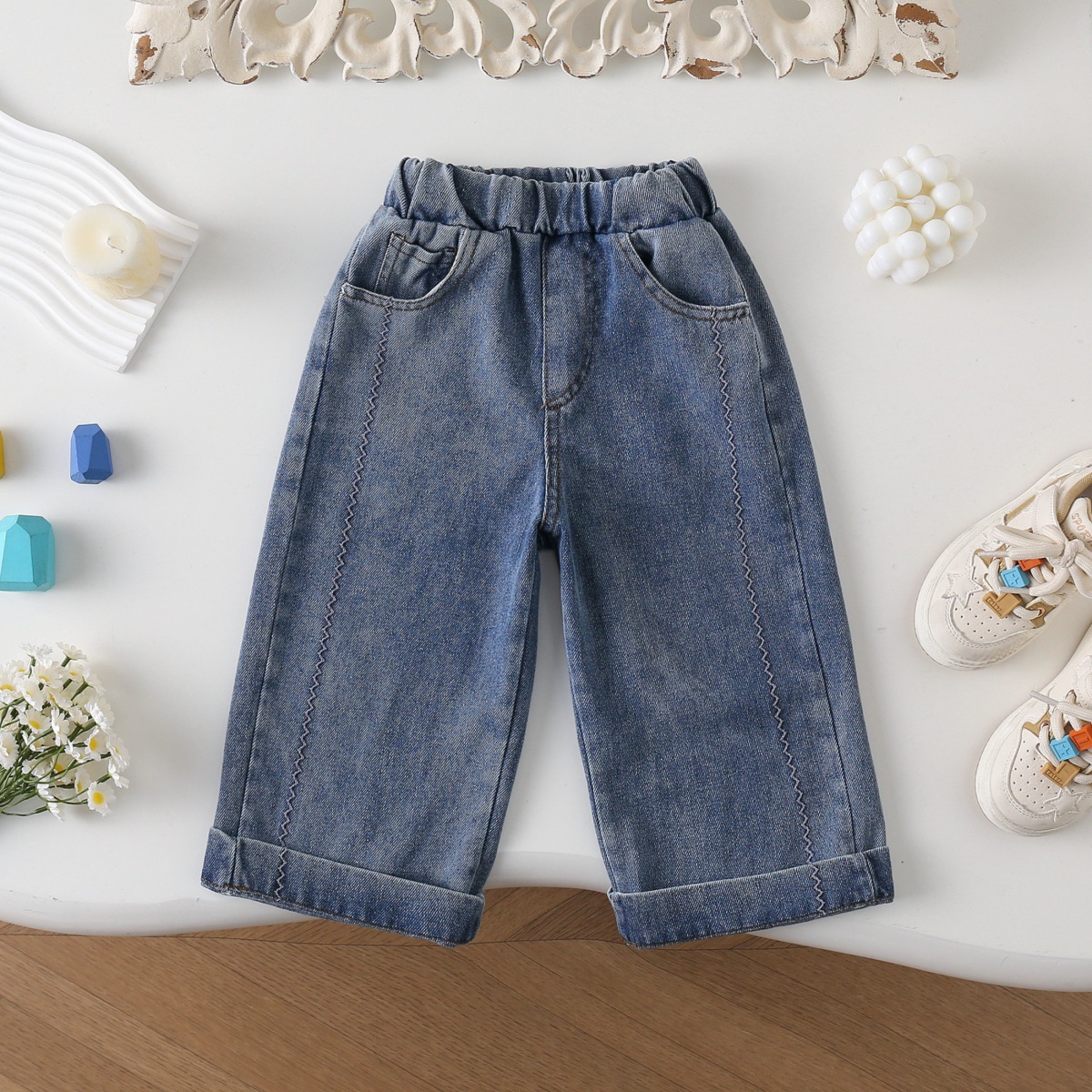 77333 아동복 봄과 가을 소녀 청바지 아기 소녀 캐주얼 올 매치 레이스 스트레이트 바지 어린 소녀 바지스토어 가기