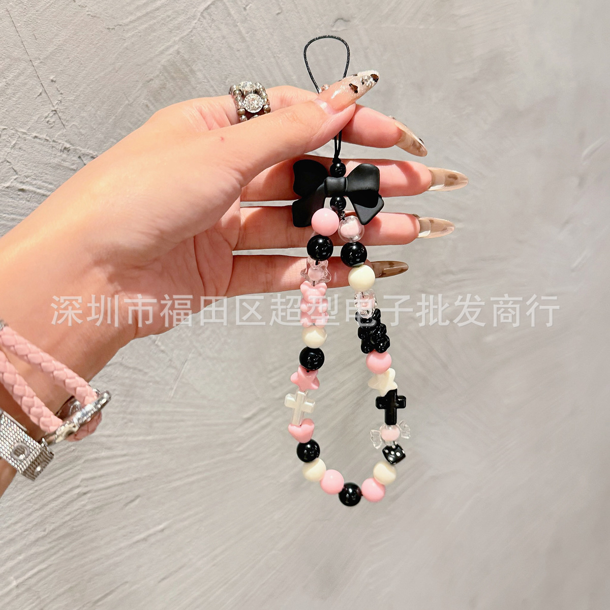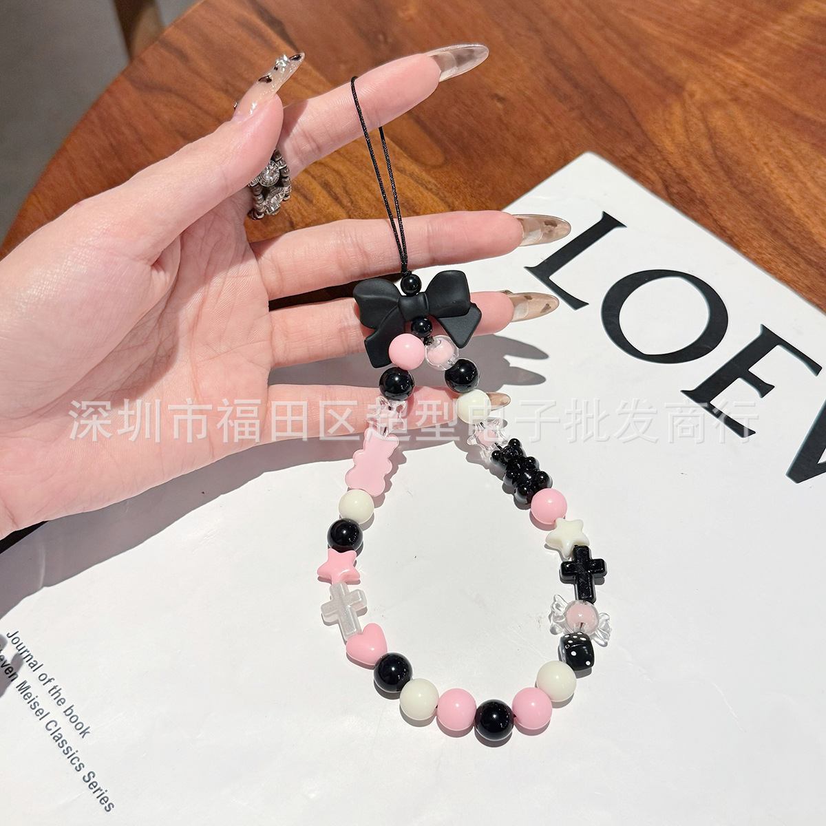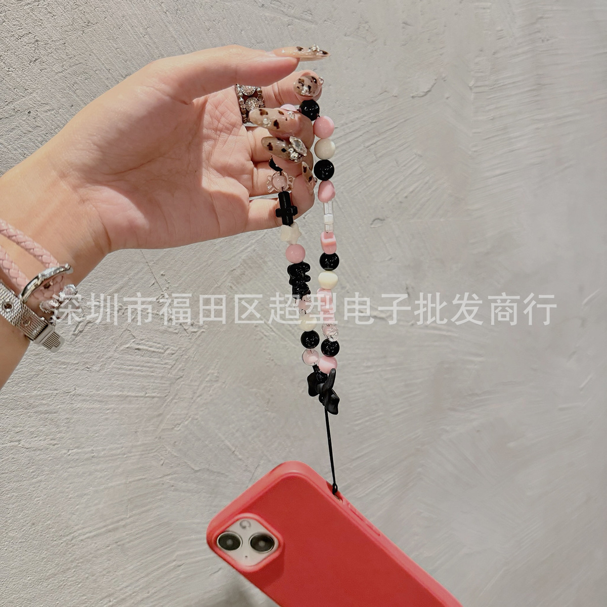 짧은 휴대 전화 체인 만화 곰 검은 핑크 활 휴대 전화 끈 cdd 카메라 체인 국경스토어 가기