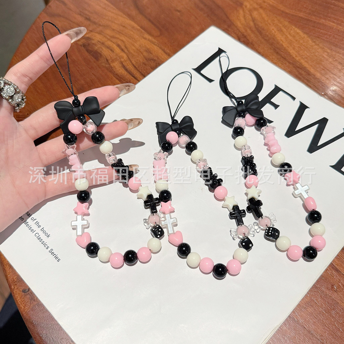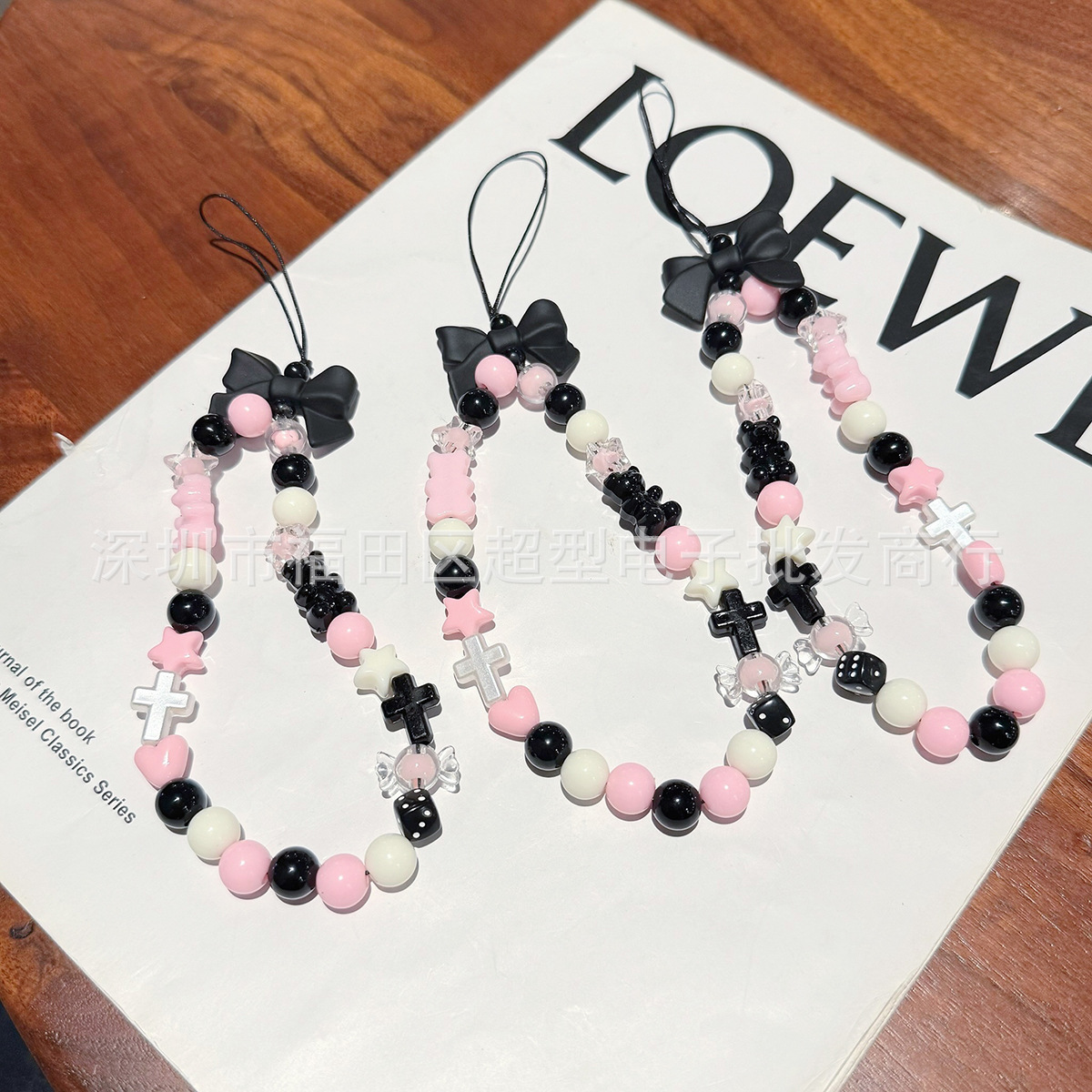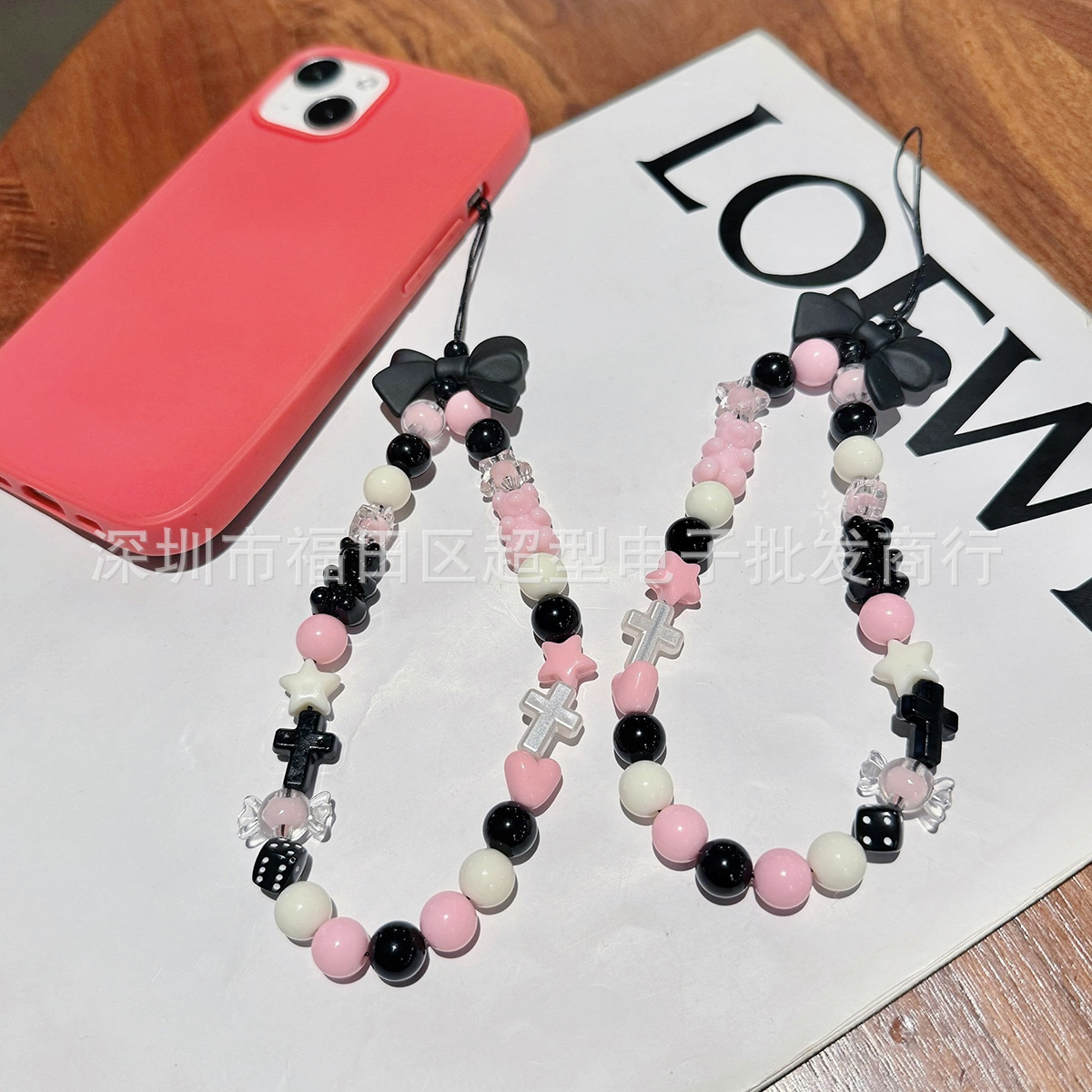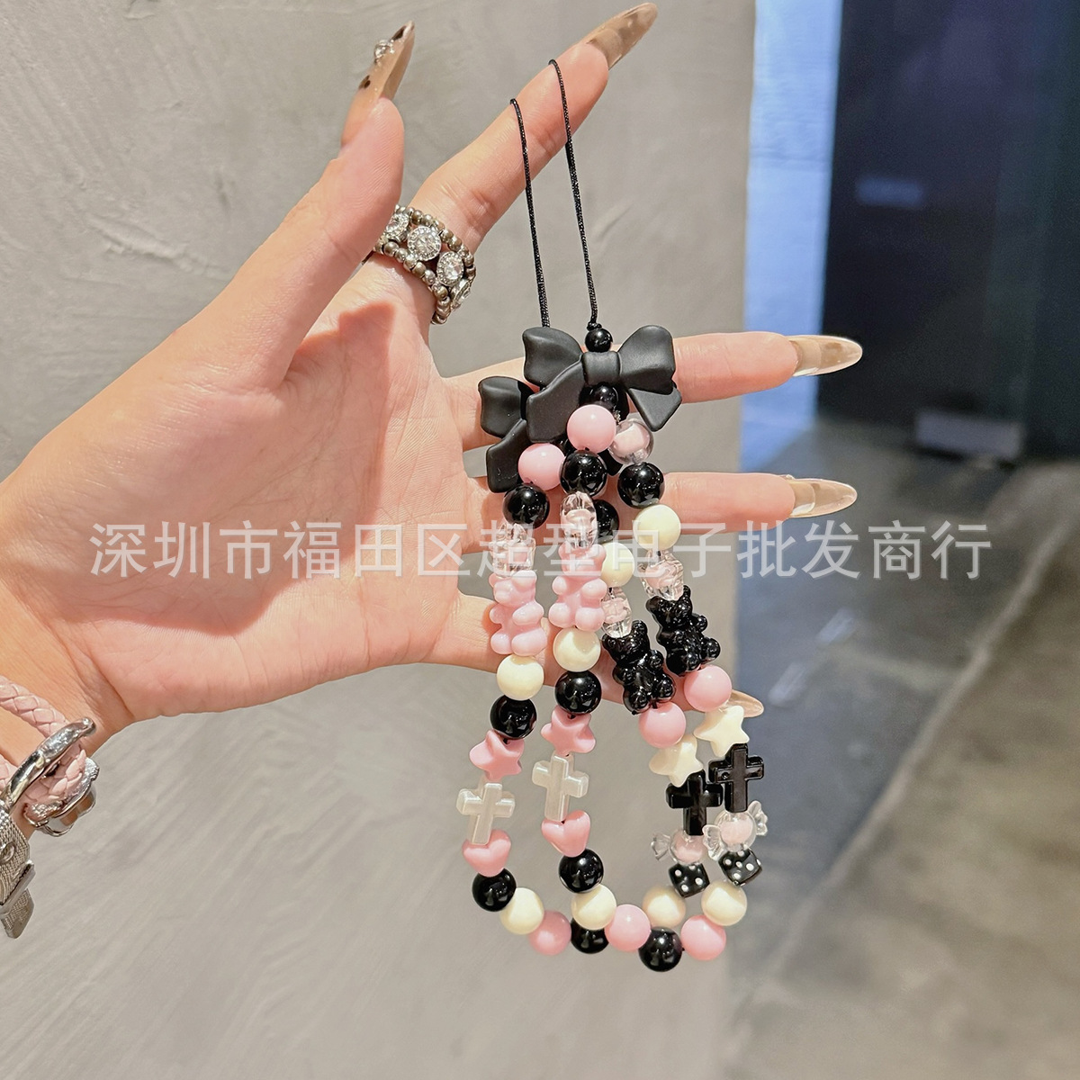 짧은 휴대 전화 체인 만화 곰 검은 핑크 활 휴대 전화 끈 cdd 카메라 체인 국경스토어 가기