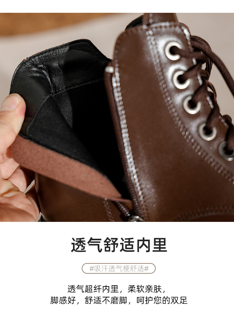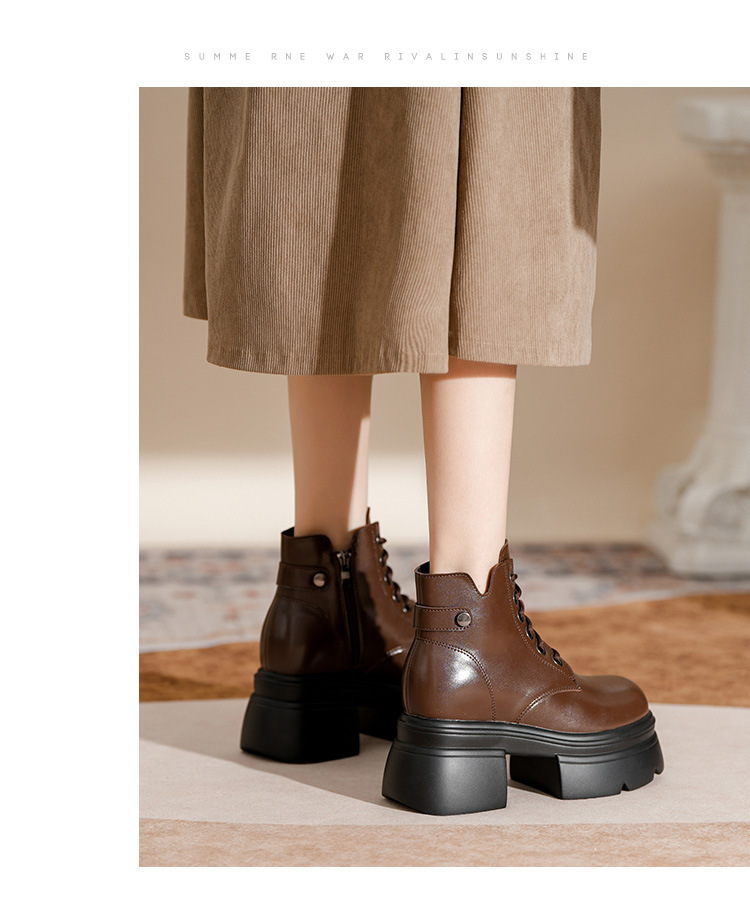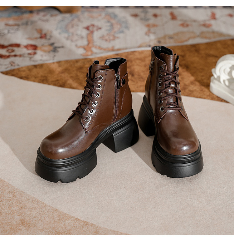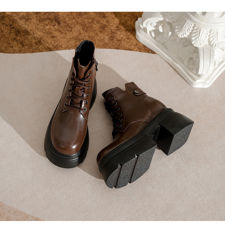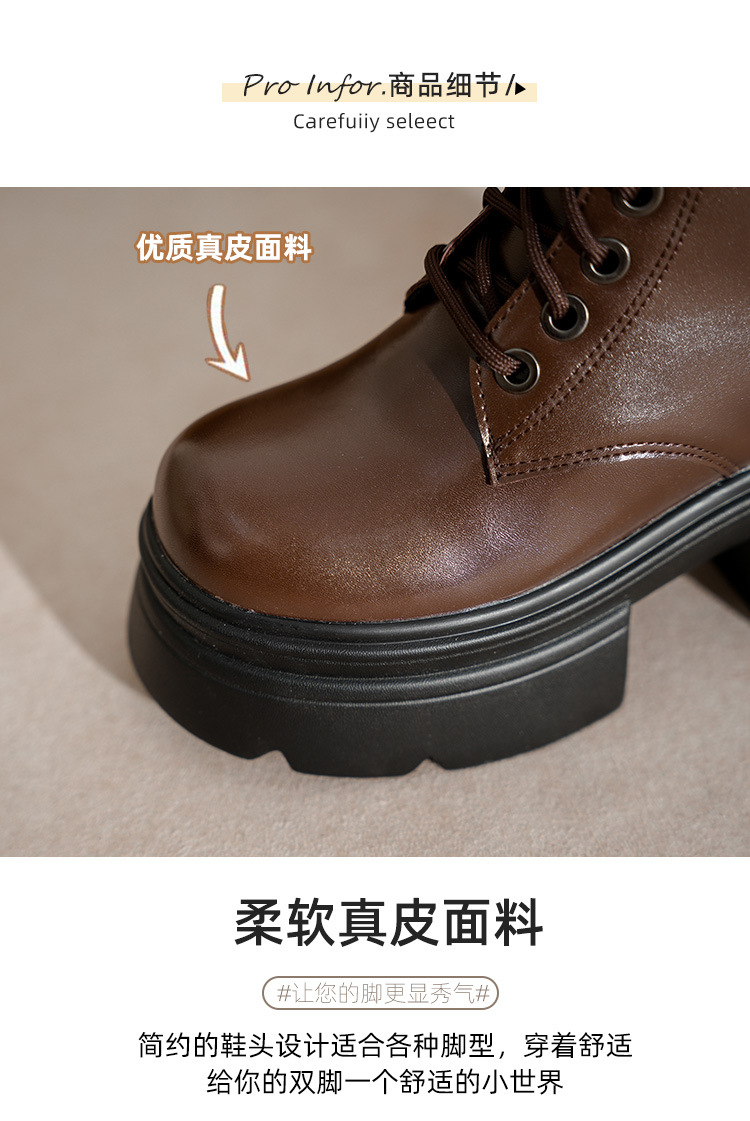 마틴 부츠 여성 다크 브라운 2024 새로운 가을 및 겨울 싱글 부츠 내부 높이 부츠 영국 작은 두꺼운 바닥 부츠