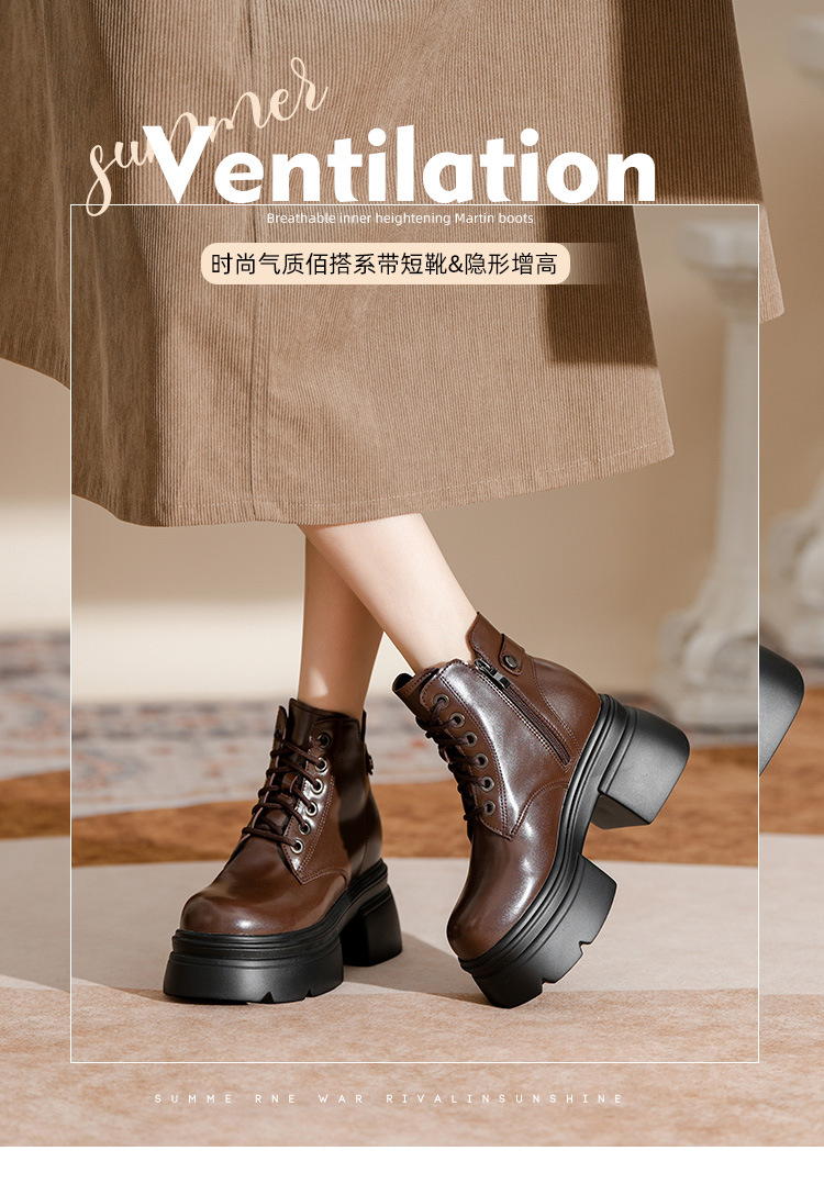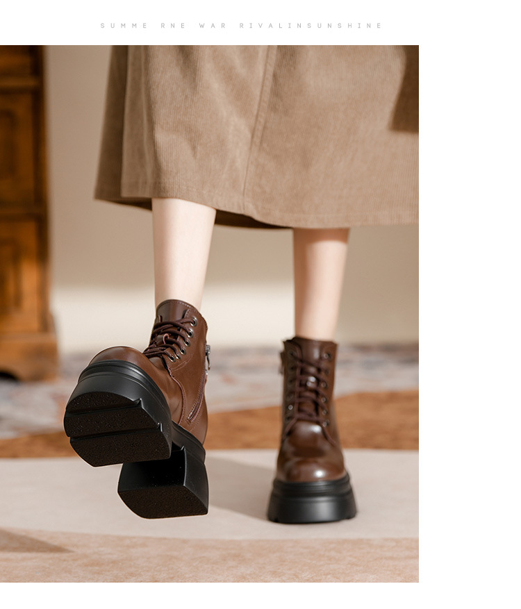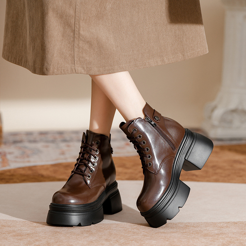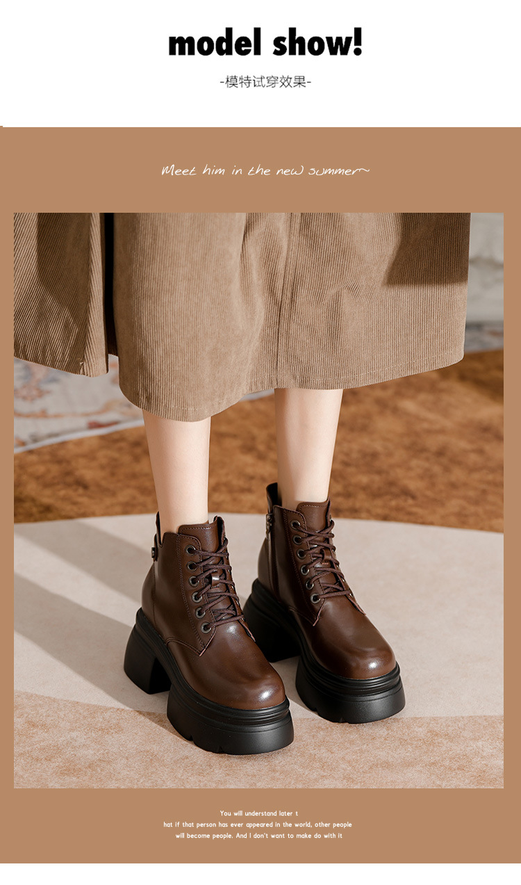 마틴 부츠 여성 다크 브라운 2024 새로운 가을 및 겨울 싱글 부츠 내부 높이 부츠 영국 작은 두꺼운 바닥 부츠