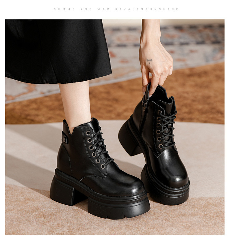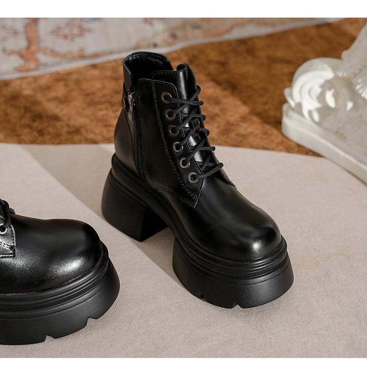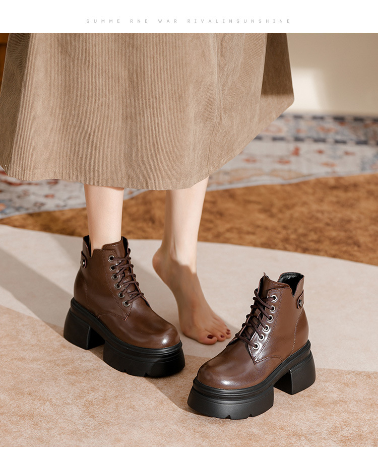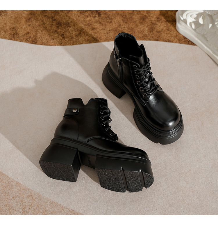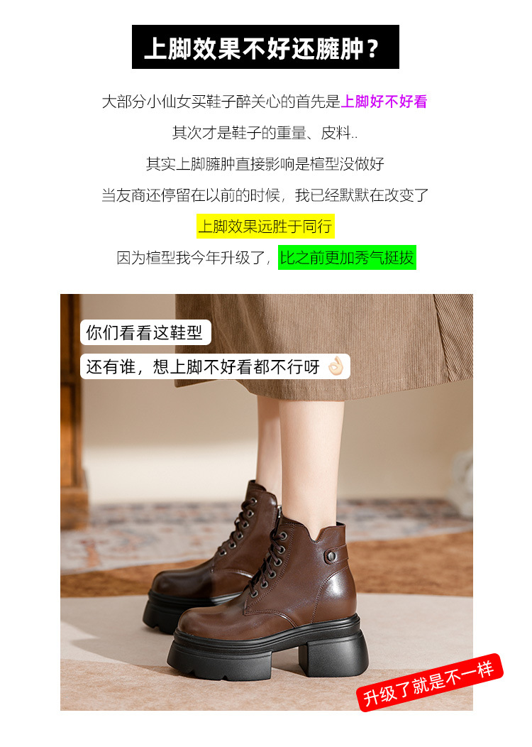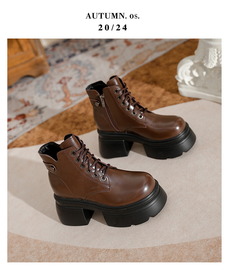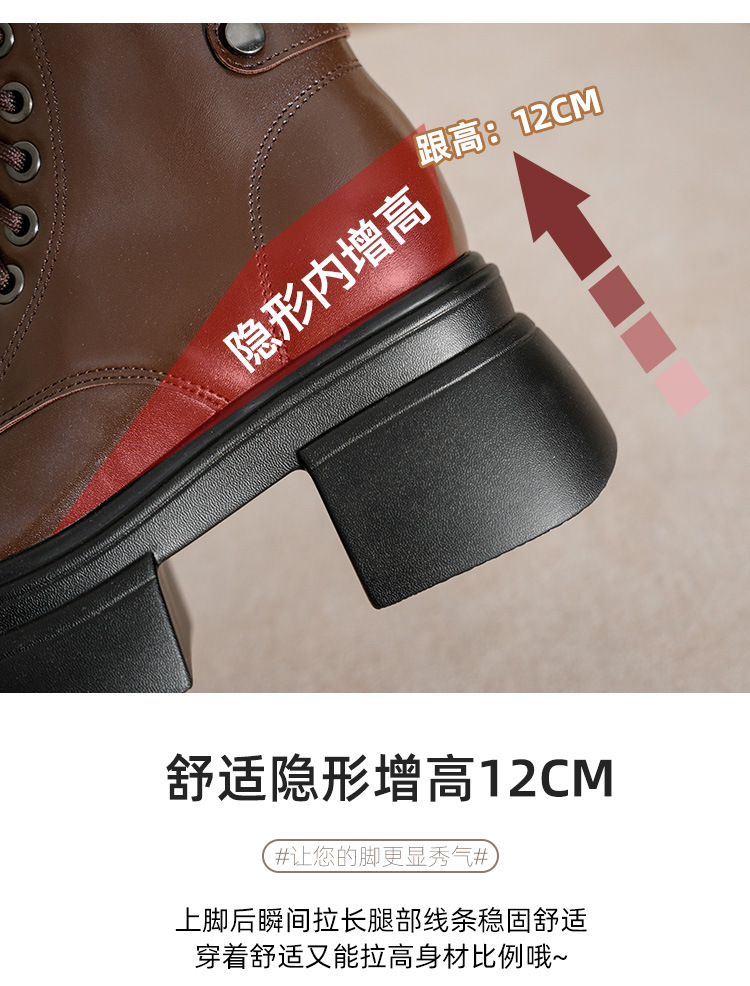마틴 부츠 여성 다크 브라운 2024 새로운 가을 및 겨울 싱글 부츠 내부 높이 부츠 영국 작은 두꺼운 바닥 부츠스토어 가기