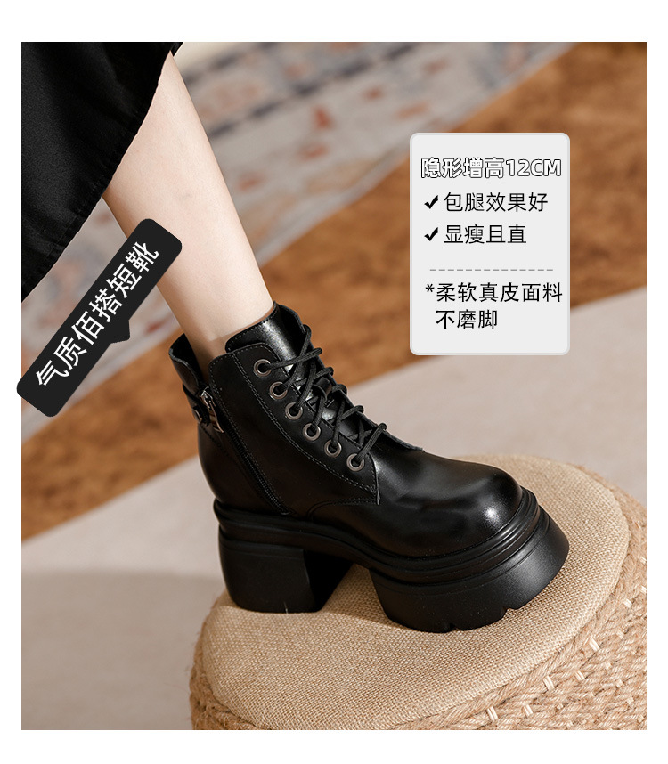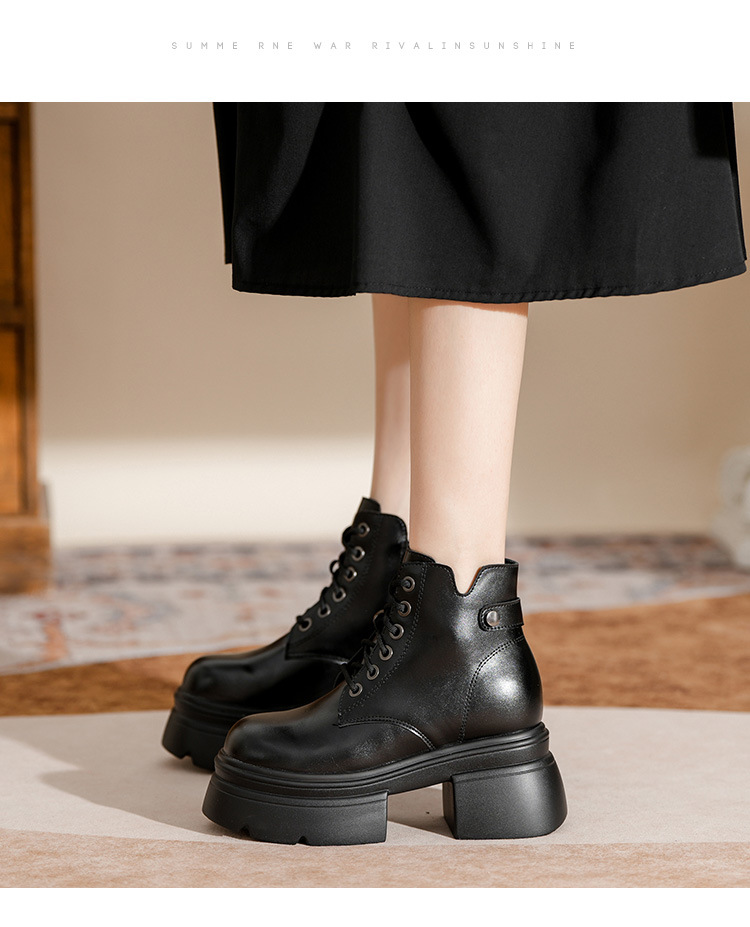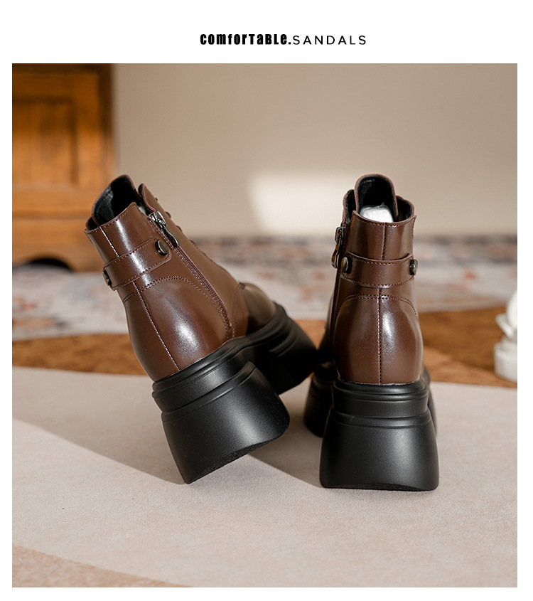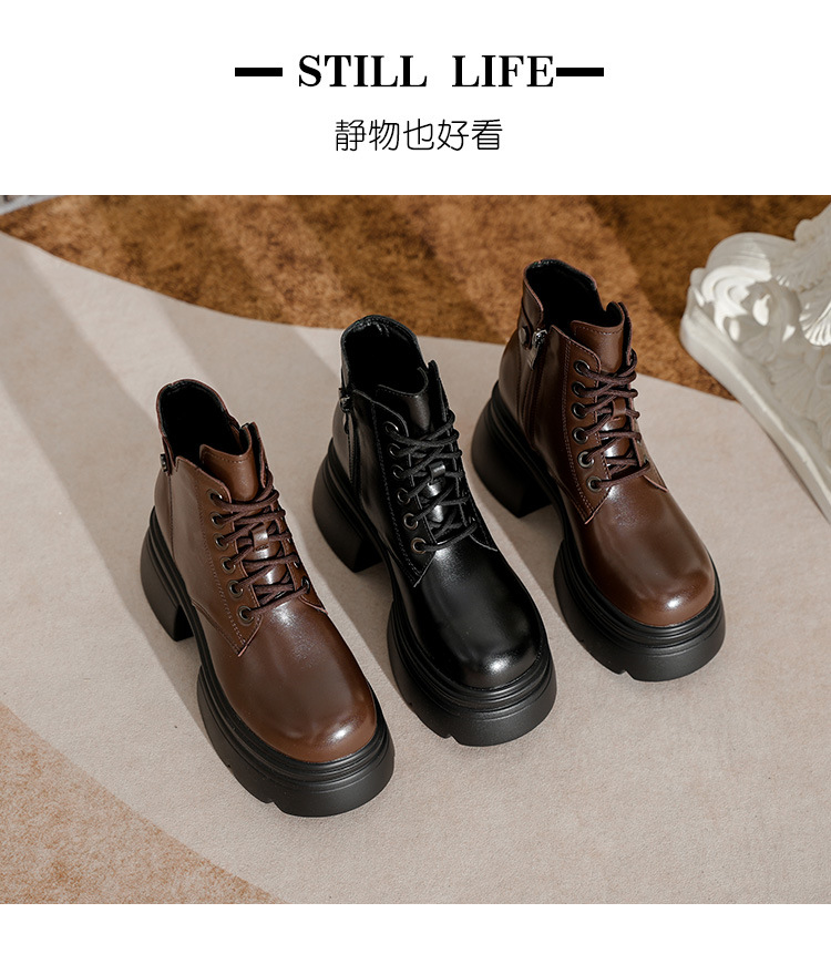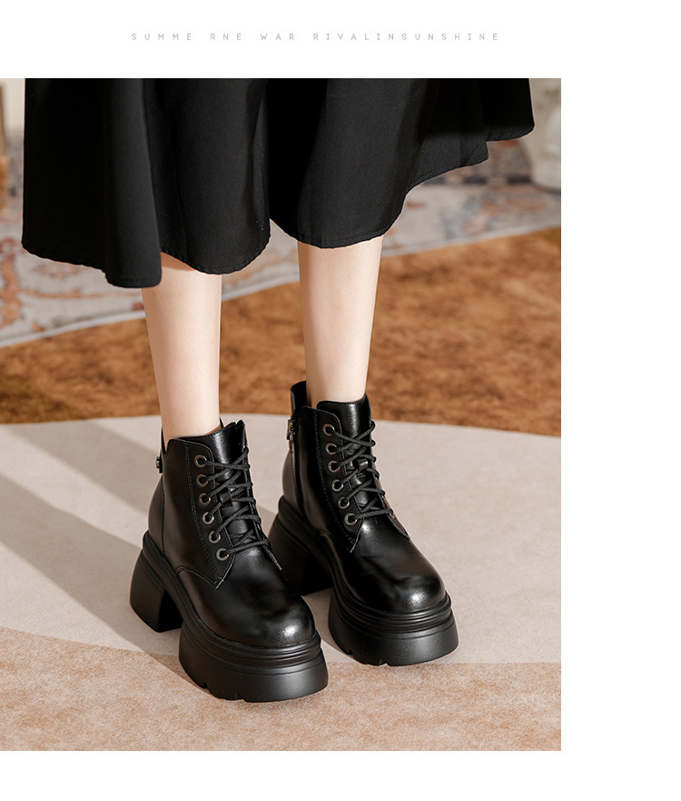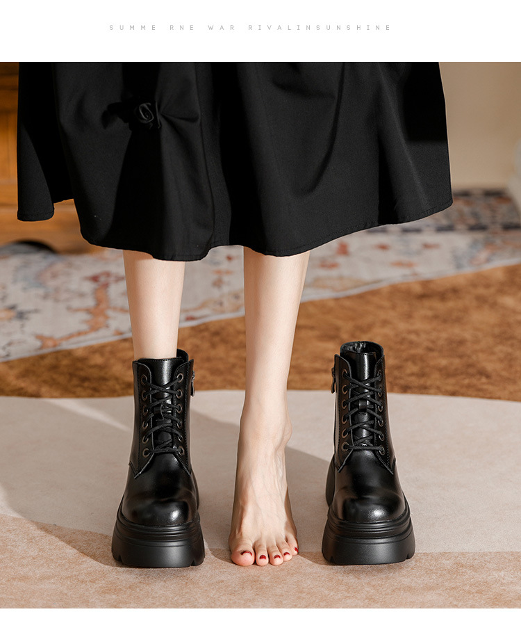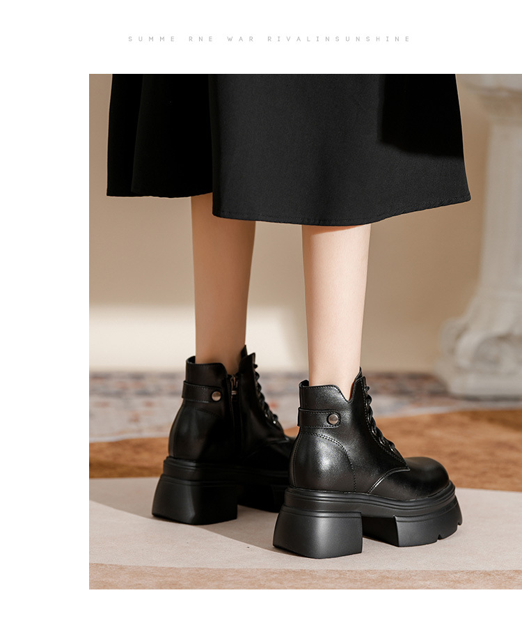 마틴 부츠 여성 다크 브라운 2024 새로운 가을 및 겨울 싱글 부츠 내부 높이 부츠 영국 작은 두꺼운 바닥 부츠스토어 가기