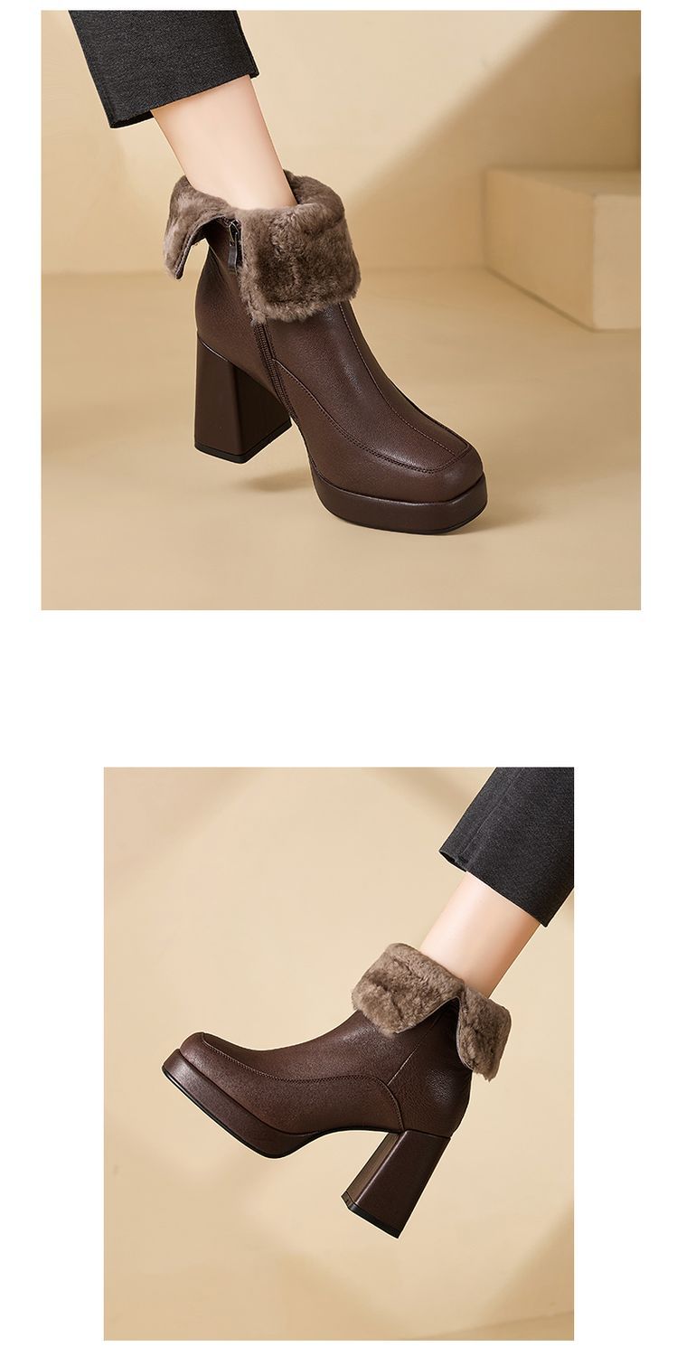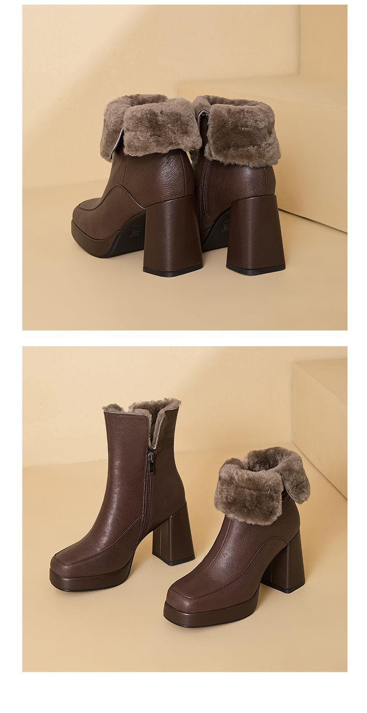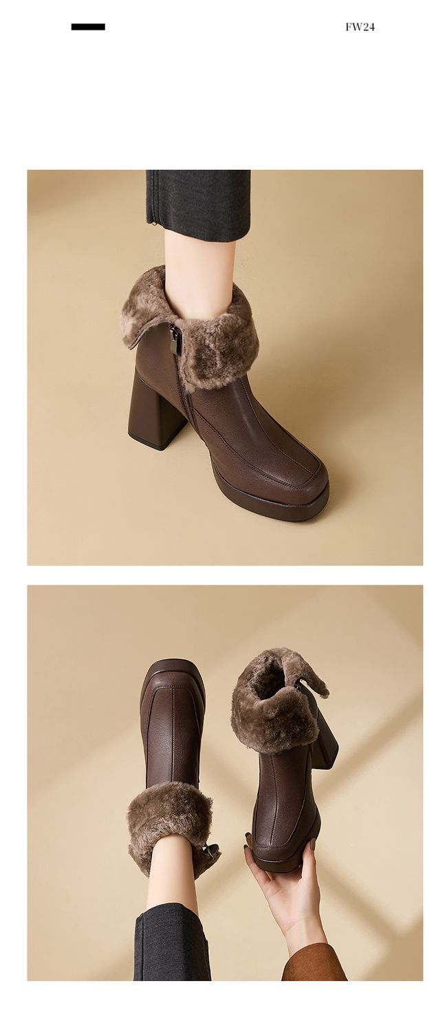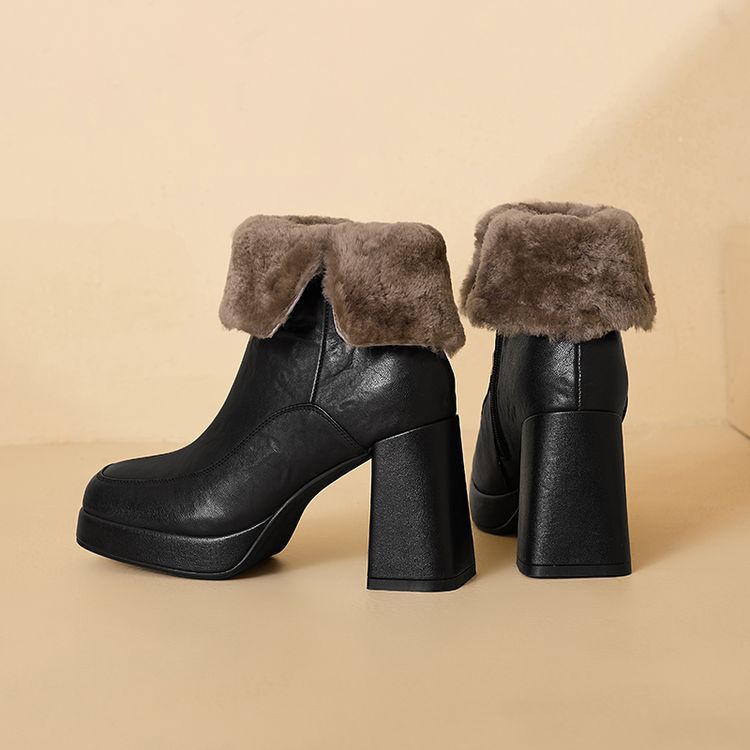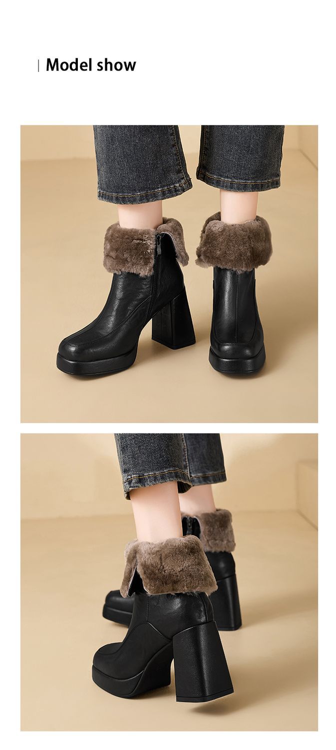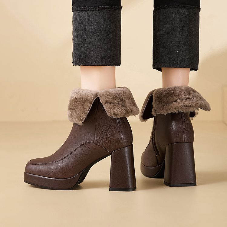동북 부츠 눈 부츠 여성의 겨울 두꺼운 벨벳 울 따뜻한 큰면 신발 카우보이 두꺼운 힐 하이 힐 스퀘어 발가락 발목 부츠