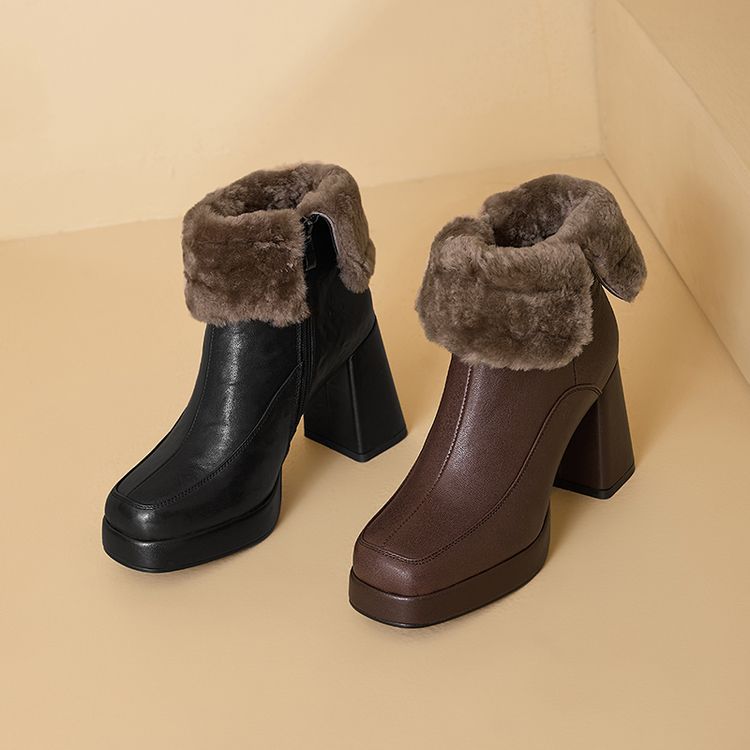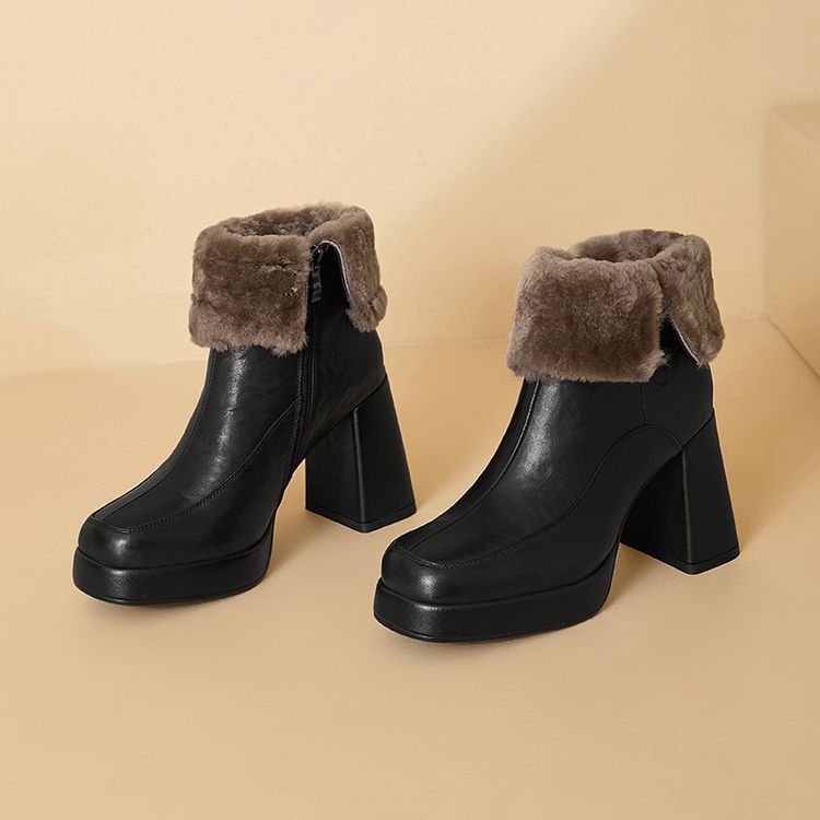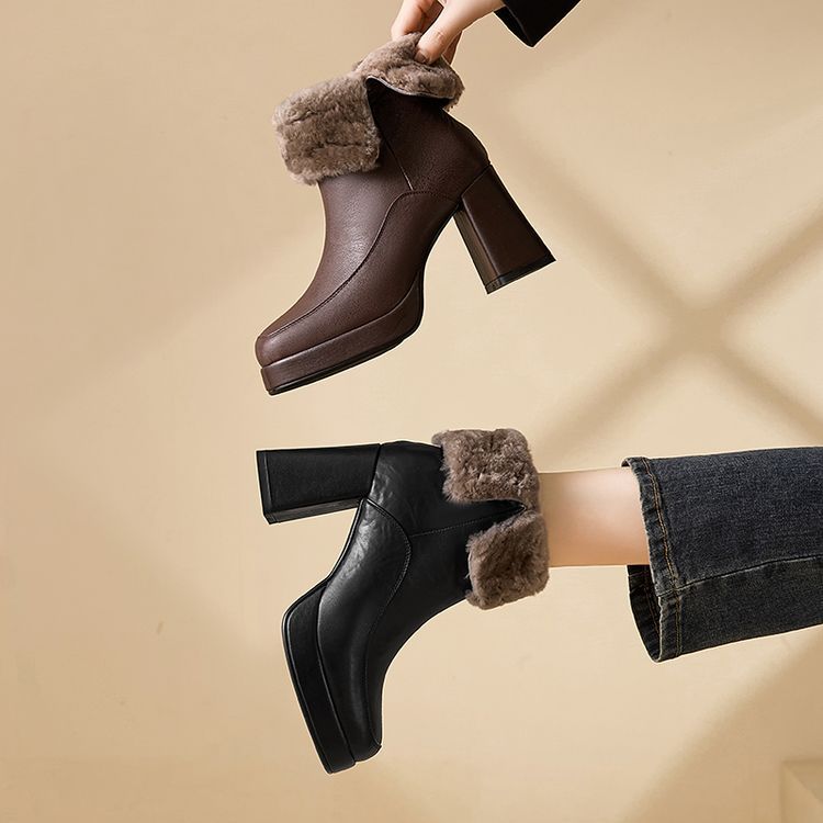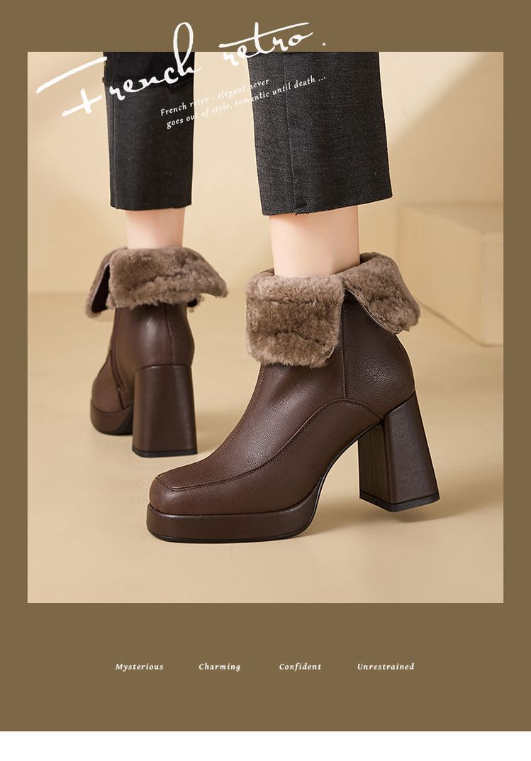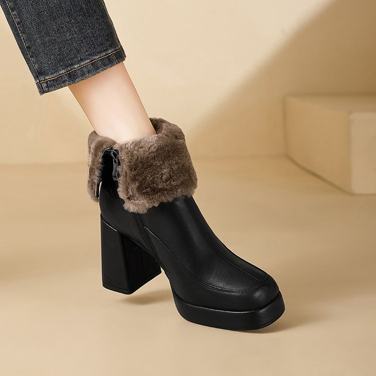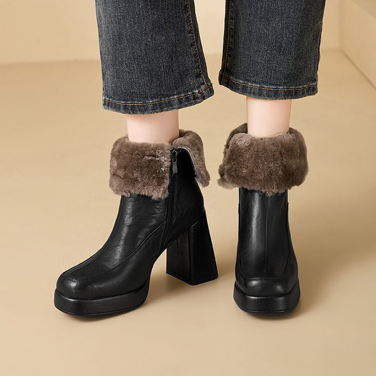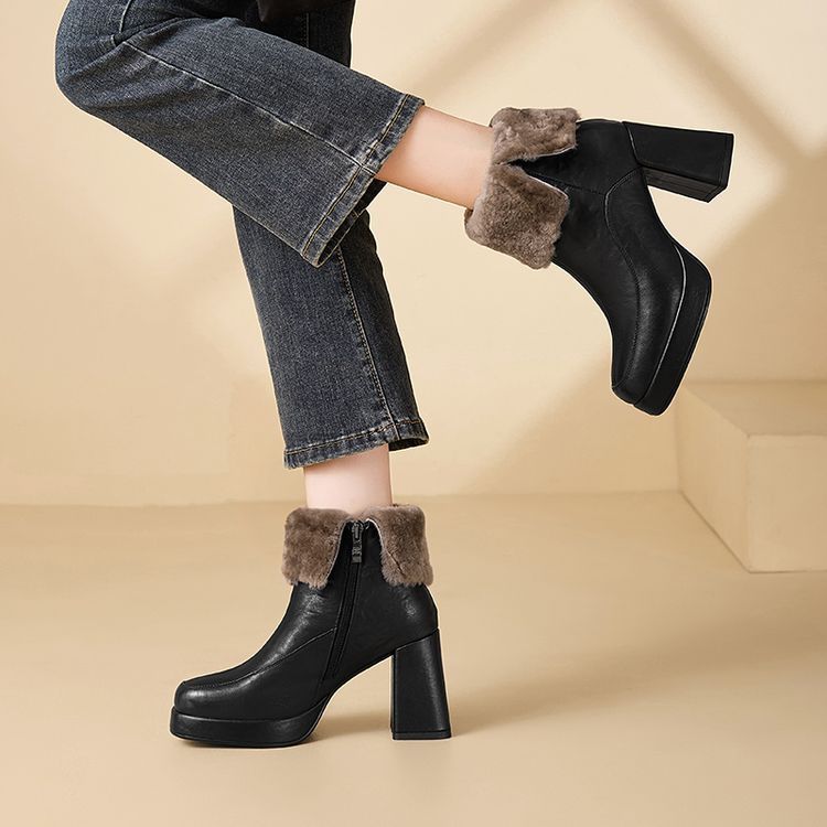 동북 부츠 눈 부츠 여성의 겨울 두꺼운 벨벳 울 따뜻한 큰면 신발 카우보이 두꺼운 힐 하이 힐 스퀘어 발가락 발목 부츠