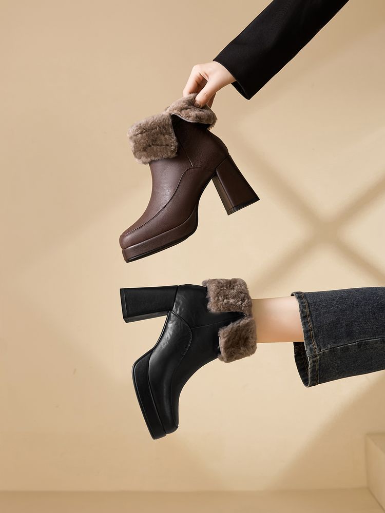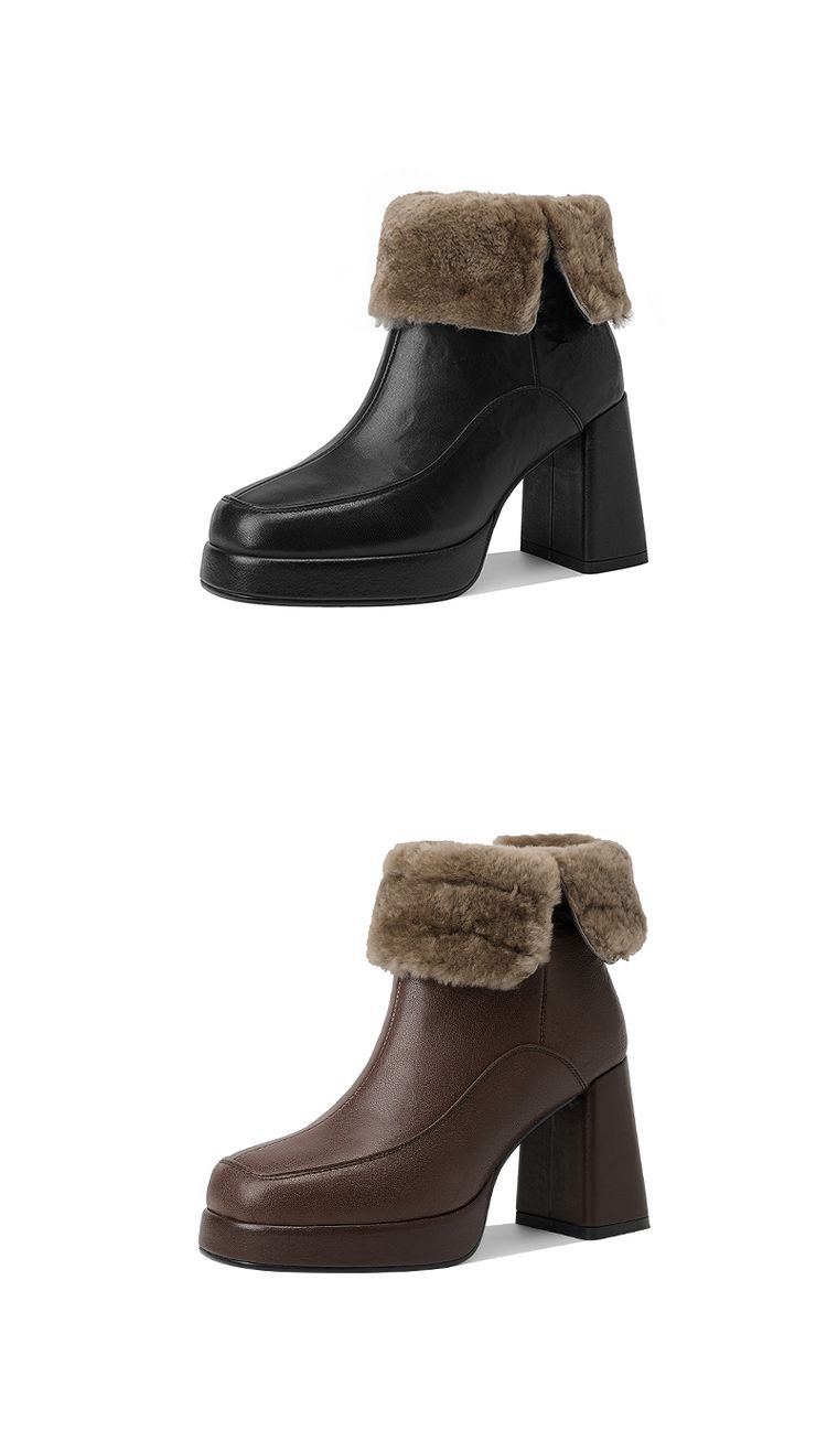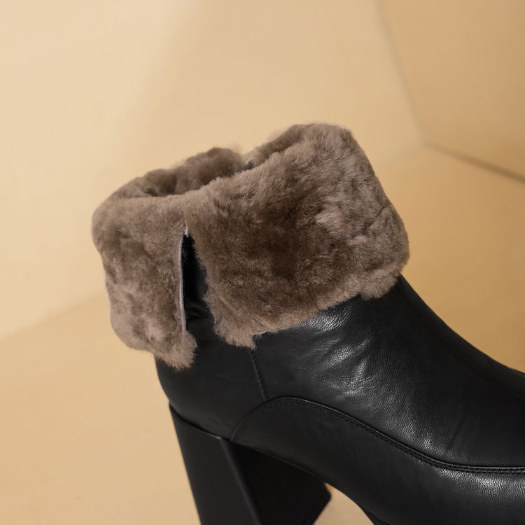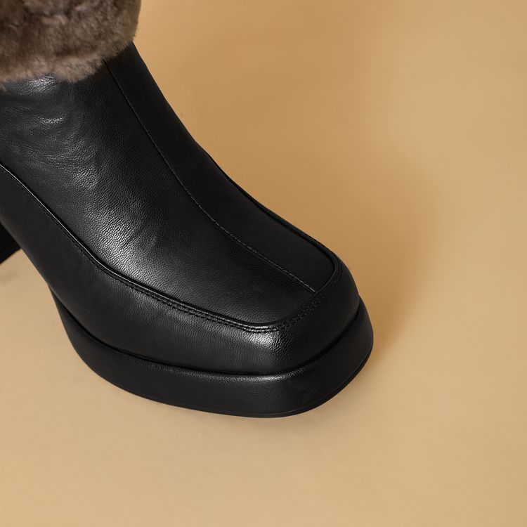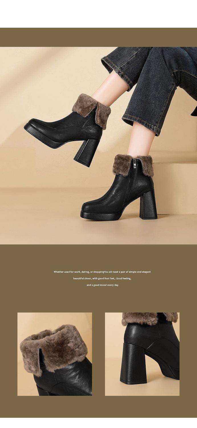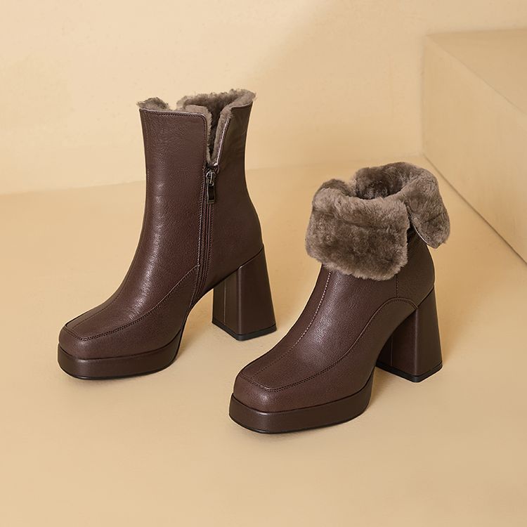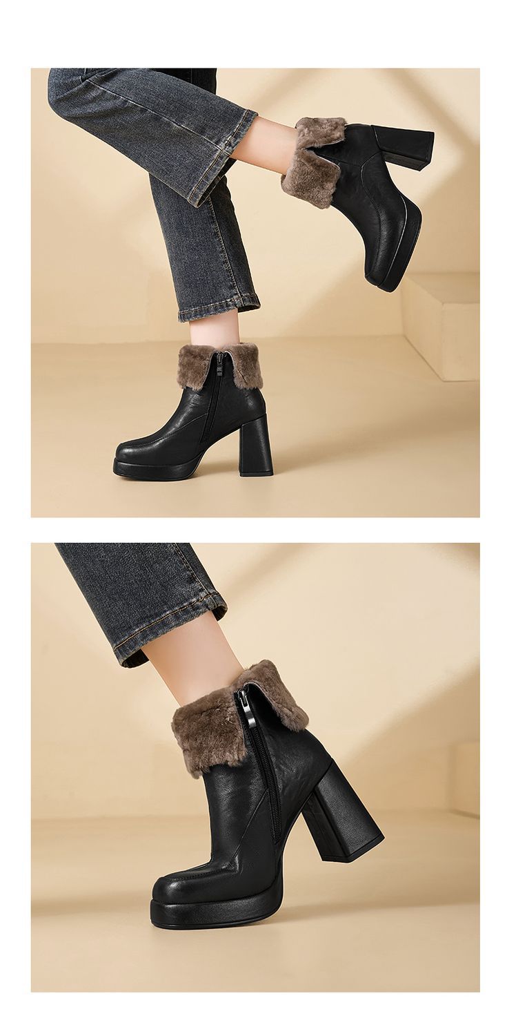 동북 부츠 눈 부츠 여성의 겨울 두꺼운 벨벳 울 따뜻한 큰면 신발 카우보이 두꺼운 힐 하이 힐 스퀘어 발가락 발목 부츠