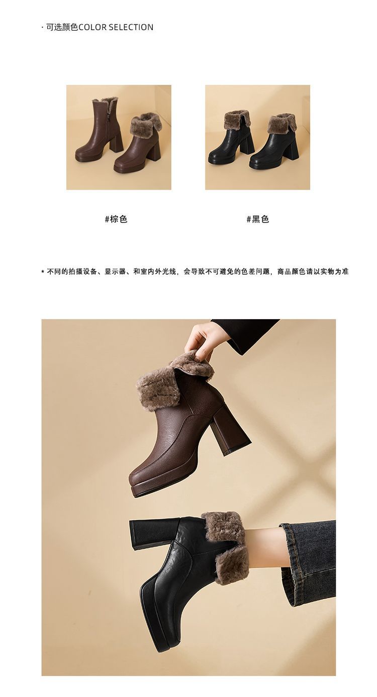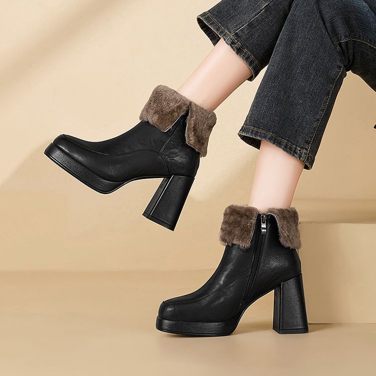 동북 부츠 눈 부츠 여성의 겨울 두꺼운 벨벳 울 따뜻한 큰면 신발 카우보이 두꺼운 힐 하이 힐 스퀘어 발가락 발목 부츠스토어 가기