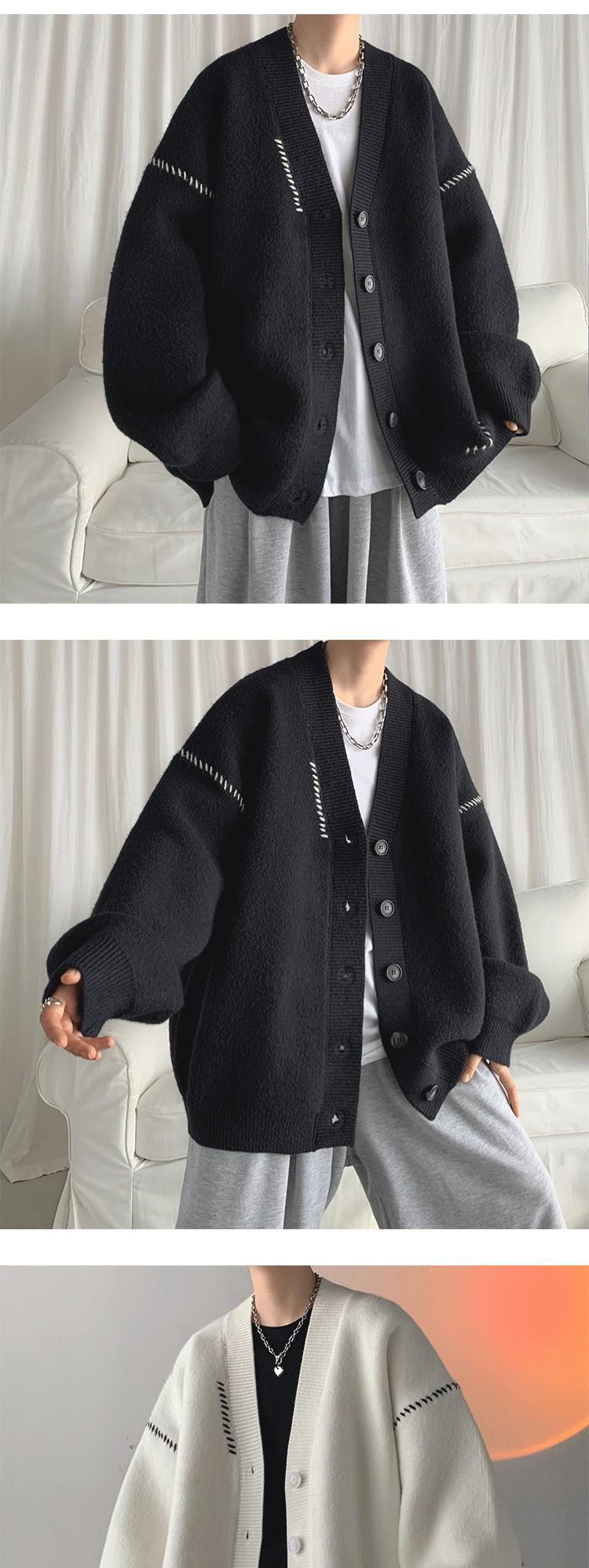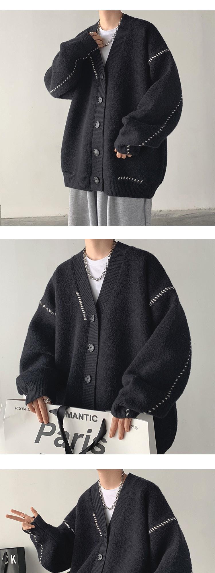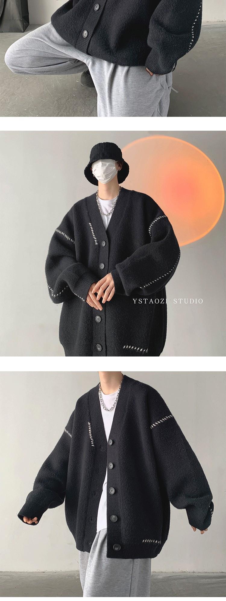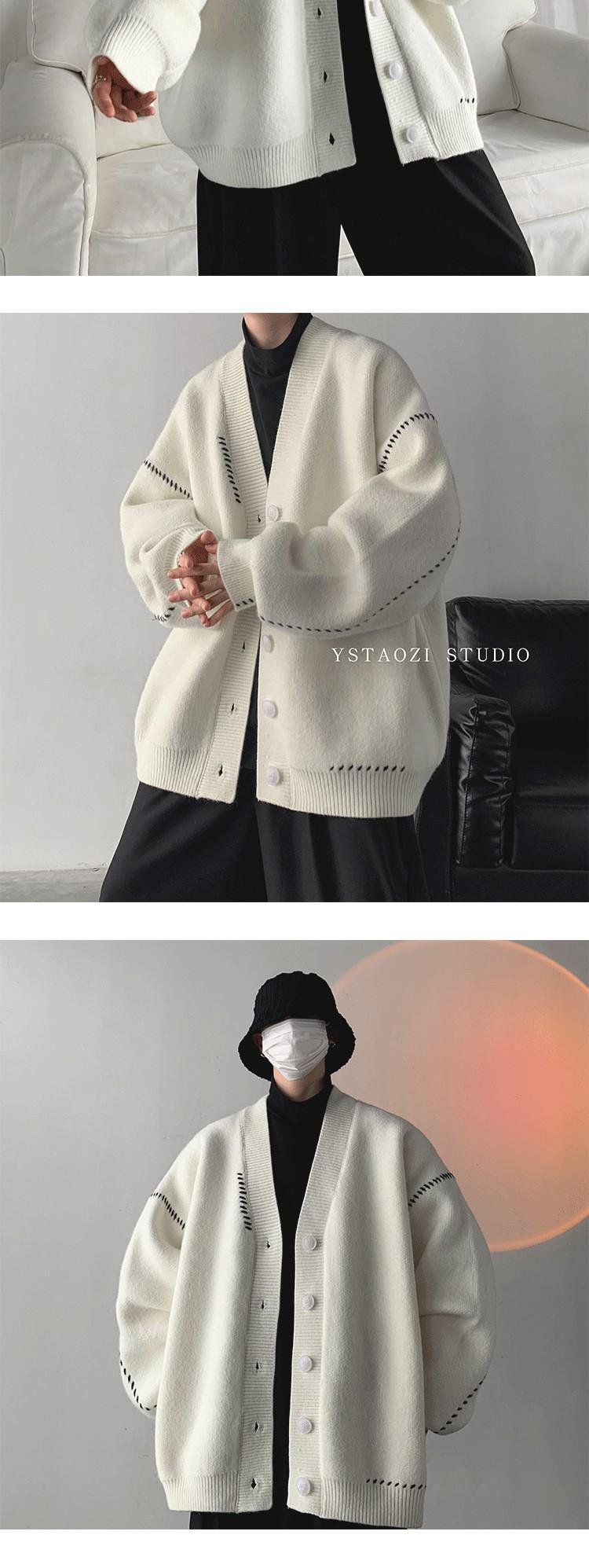 일본 스웨터 코트 남자 루즈 레트로 게으른 스타일 스웨터 가을과 겨울 두꺼운 트렌디 인 커플의 카디건 V-Neck 니트스토어 가기