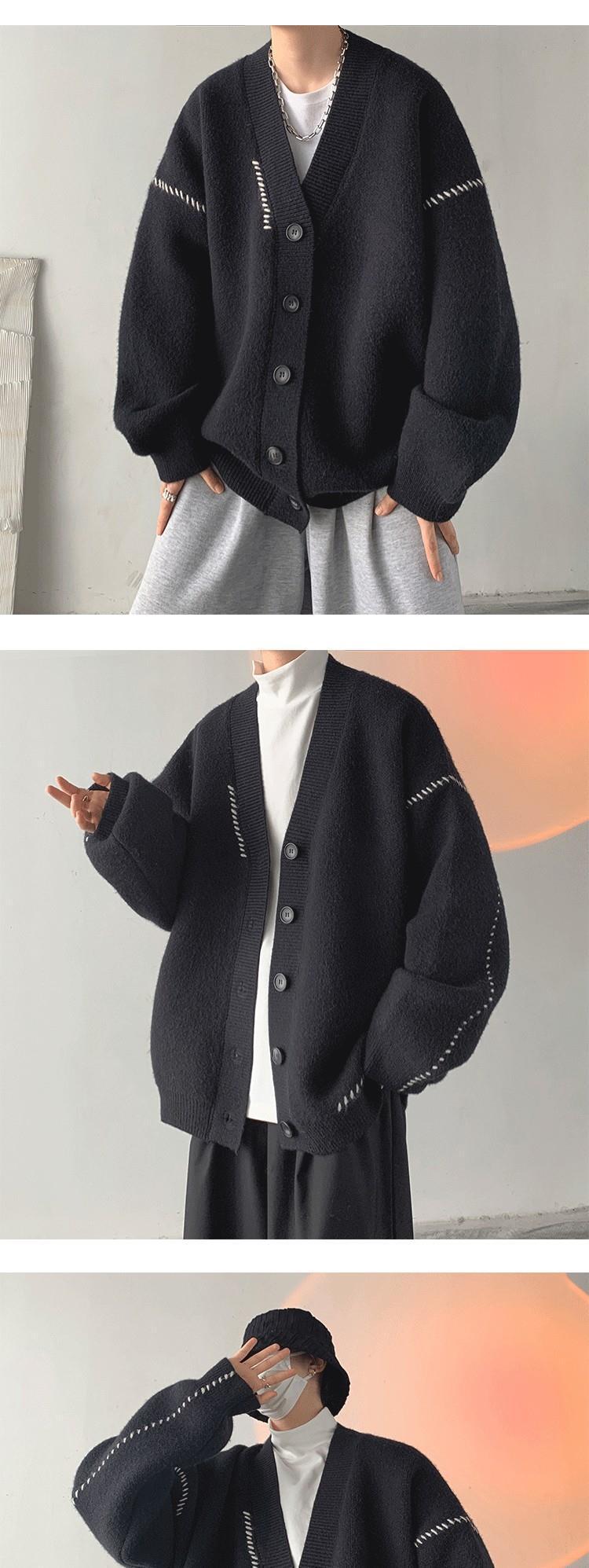 일본 스웨터 코트 남자 루즈 레트로 게으른 스타일 스웨터 가을과 겨울 두꺼운 트렌디 인 커플의 카디건 V-Neck 니트