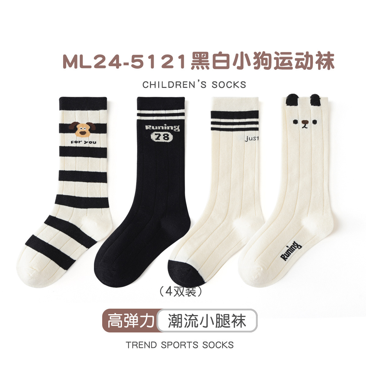 • ML24-5121 흑백 강아지 스포츠 양말