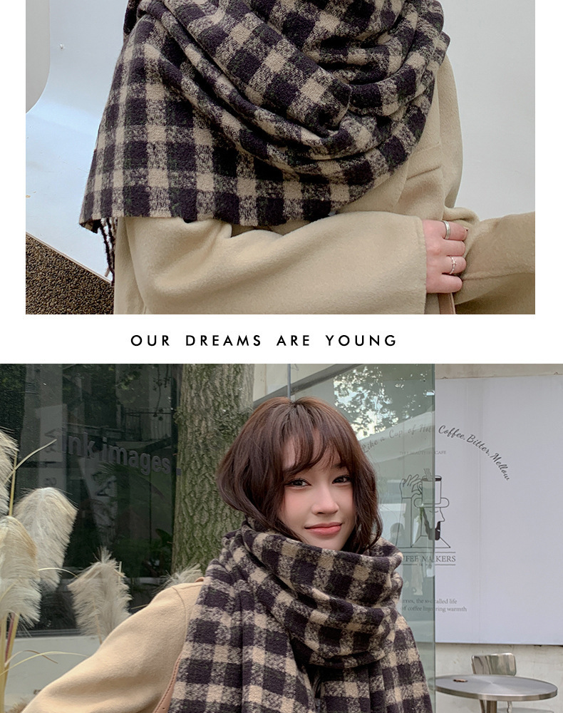 클래식 격자 무늬 스카프 여자 가을 겨울 한국 스타일 올매치 학생 스카프 겨울 캐시미어 따뜻한 외부 긴 목도리