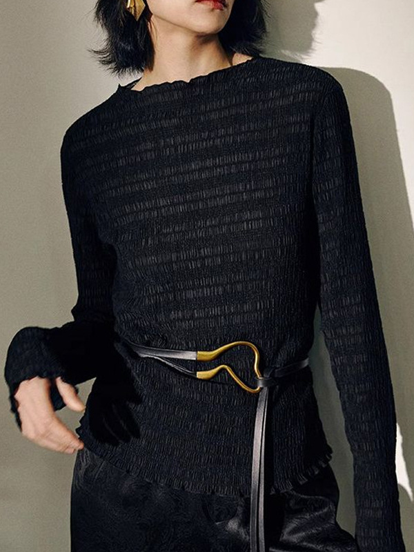 얇은 간단한 질감 올 매치 가을 2024 새로운 도착 긴 소매 스트레치 슬림 티셔츠