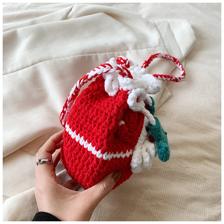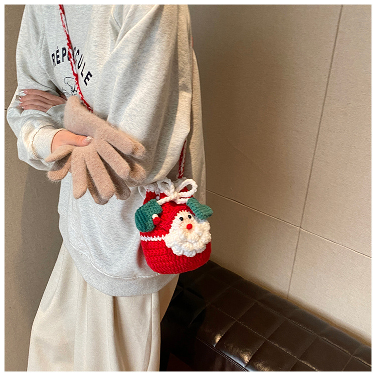 어린이 가방 크리스마스 니트 귀여운 미니 가방 손으로 짠 양모 변경 액세서리 어깨 배낭