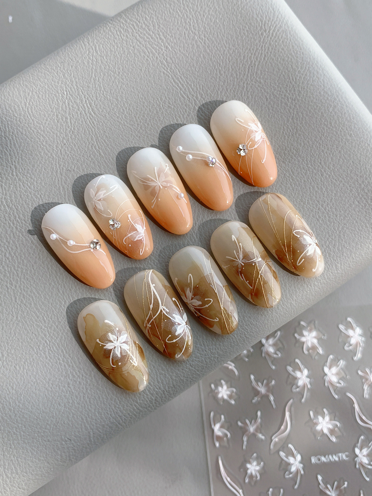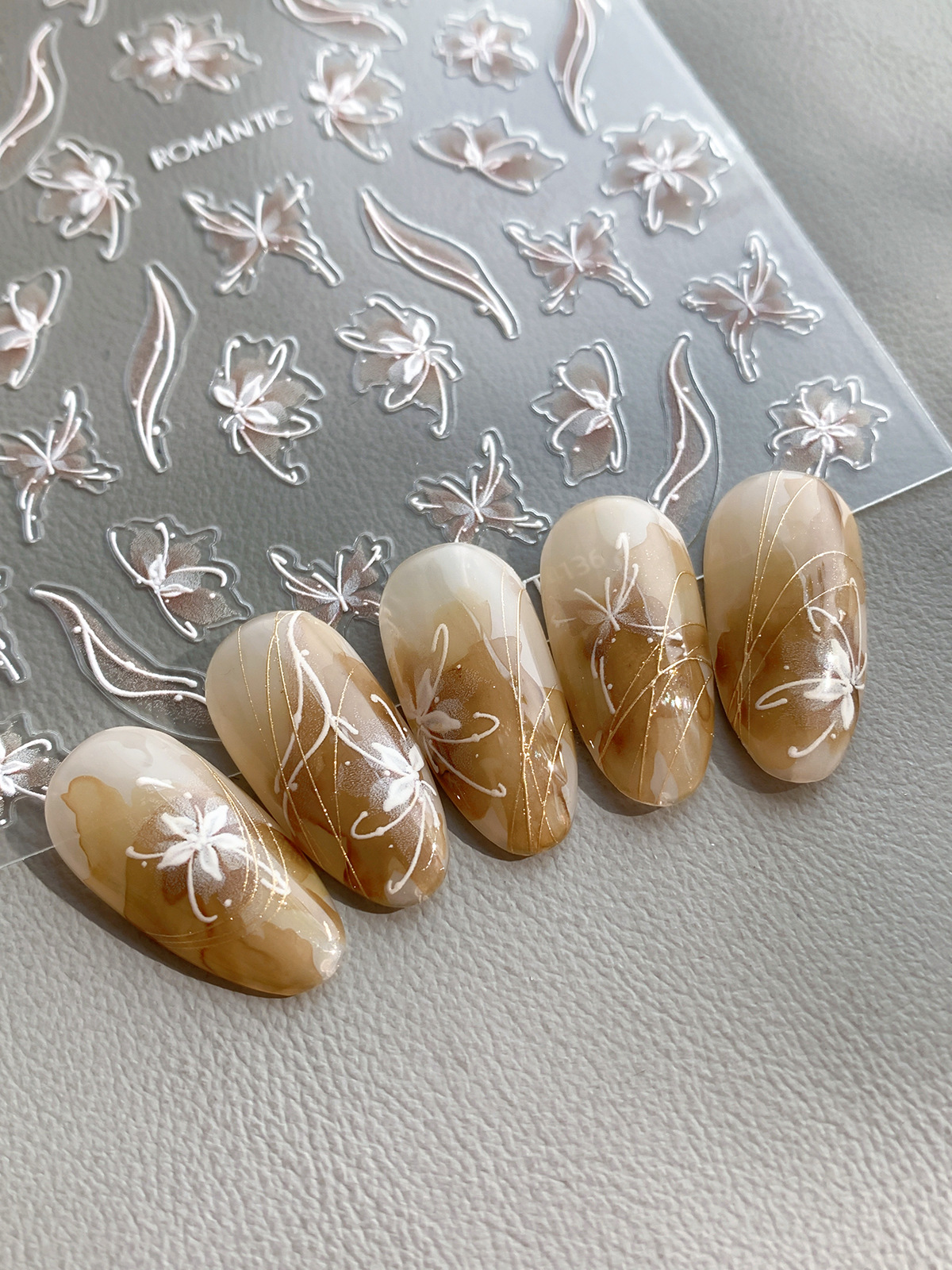 YITU 개미 그림 눈 깎기 네일 아트 스티커 손으로 그린 꽃 3 차원 구호 접착제 네일 장식 YT4136