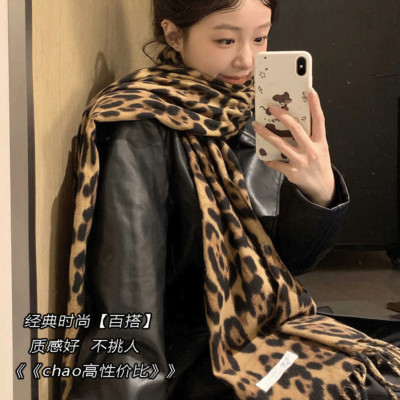 새로운 가을과 겨울 레오파드 무늬 두꺼운 따뜻한 유럽과 미국 한국 패션 매일 모방 캐시미어 술 스카프 목도리스토어 가기