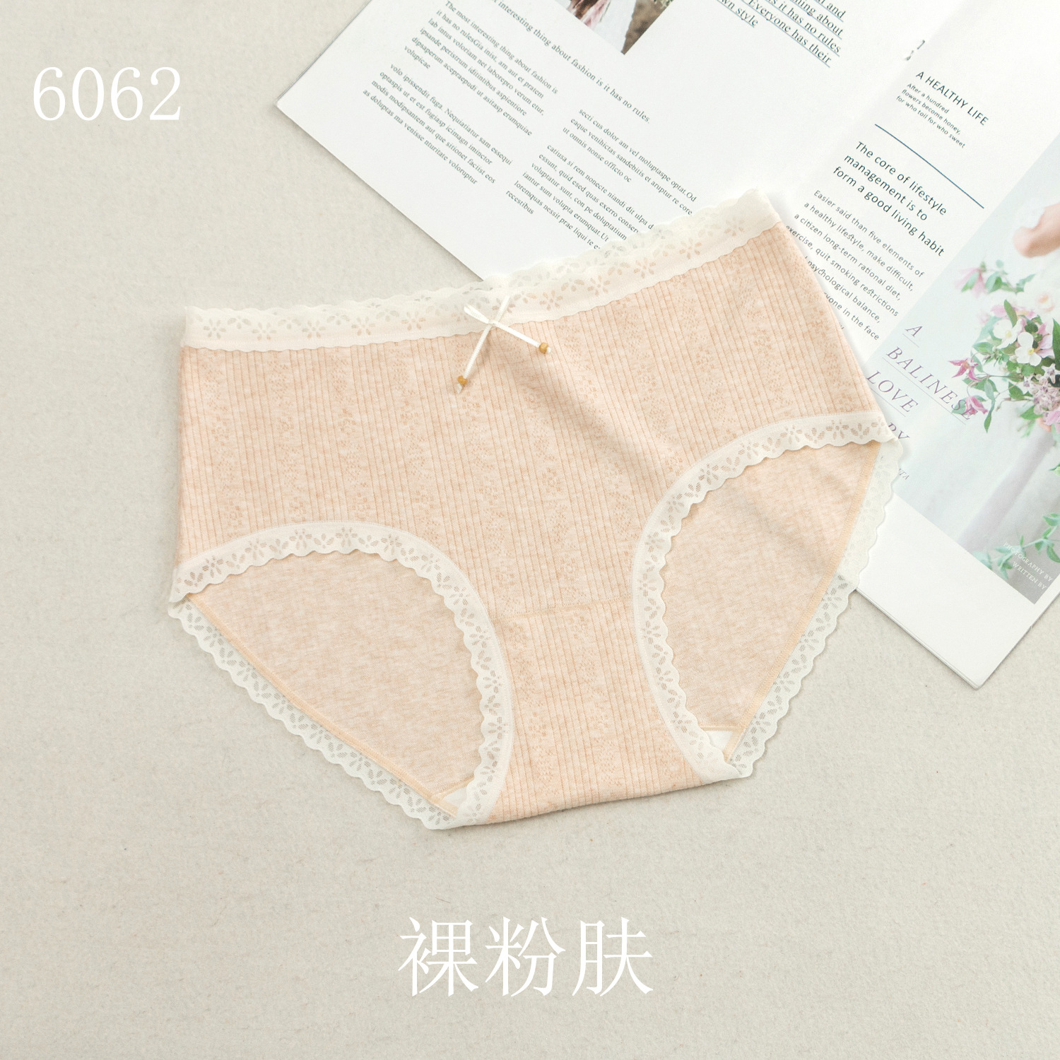 퓨어 코튼 자카드 속옷 여성의 중간 허리 레이스 소녀 브리프 편안한 학생 바지 해피 자세 6062 가을과 겨울 뉴