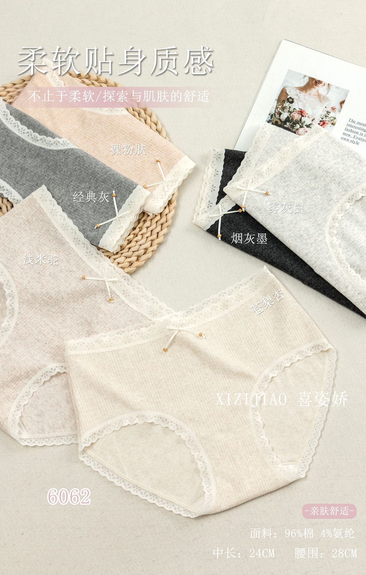 퓨어 코튼 자카드 속옷 여성의 중간 허리 레이스 소녀 브리프 편안한 학생 바지 해피 자세 6062 가을과 겨울 뉴스토어 가기