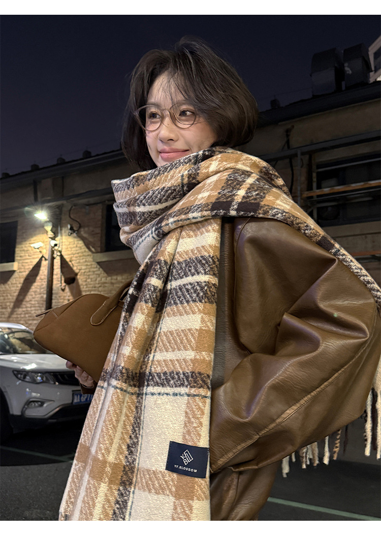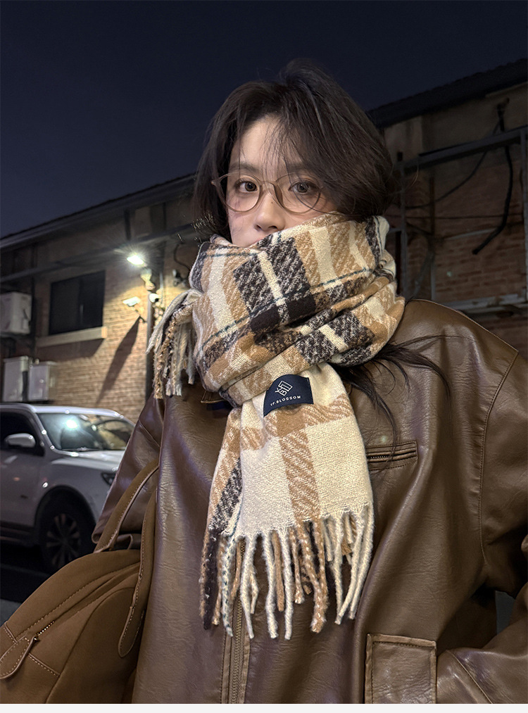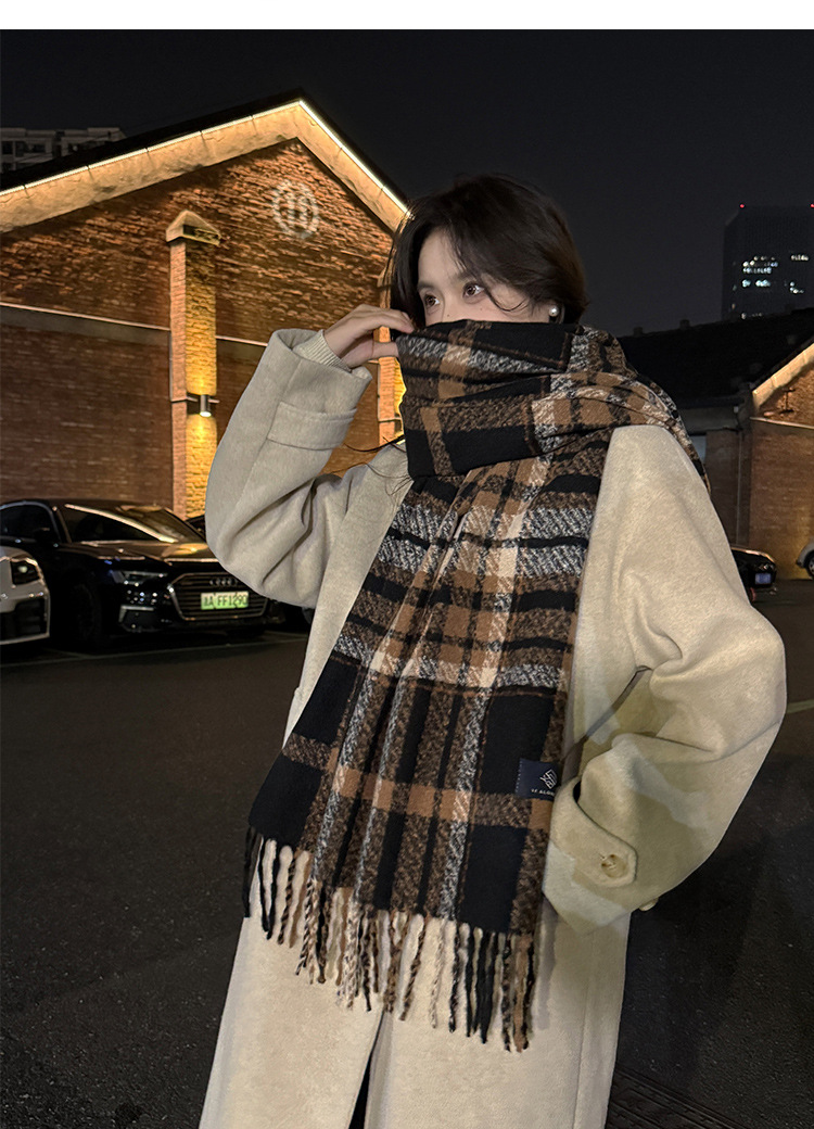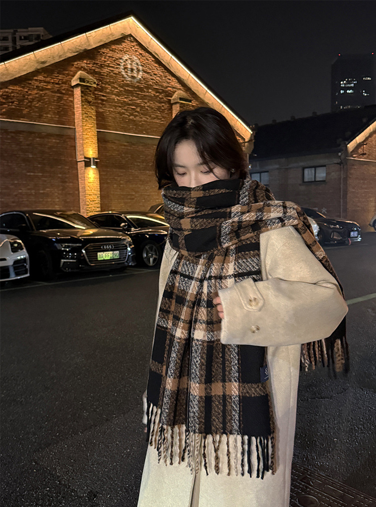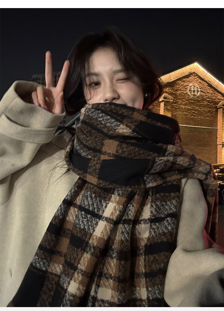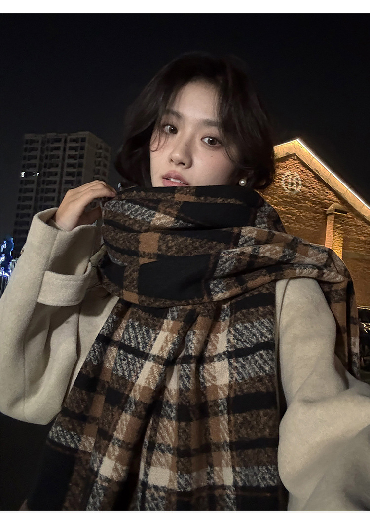 겨울 스카프 여성의 2024 새로운 하이 엔드 드라이 로즈 체크 무늬 캐시미어 목도리 넥 듀얼 사용 남성 패션스토어 가기