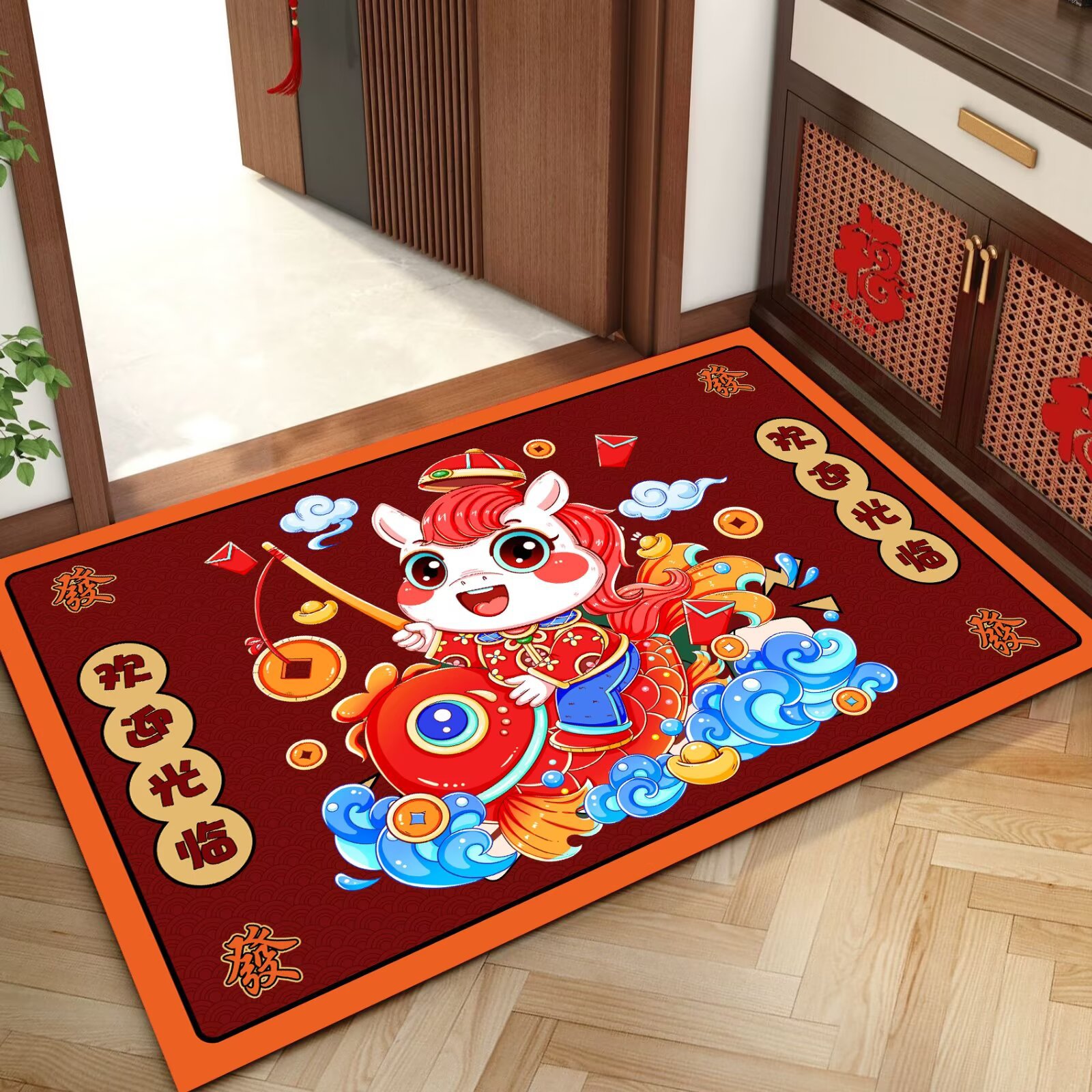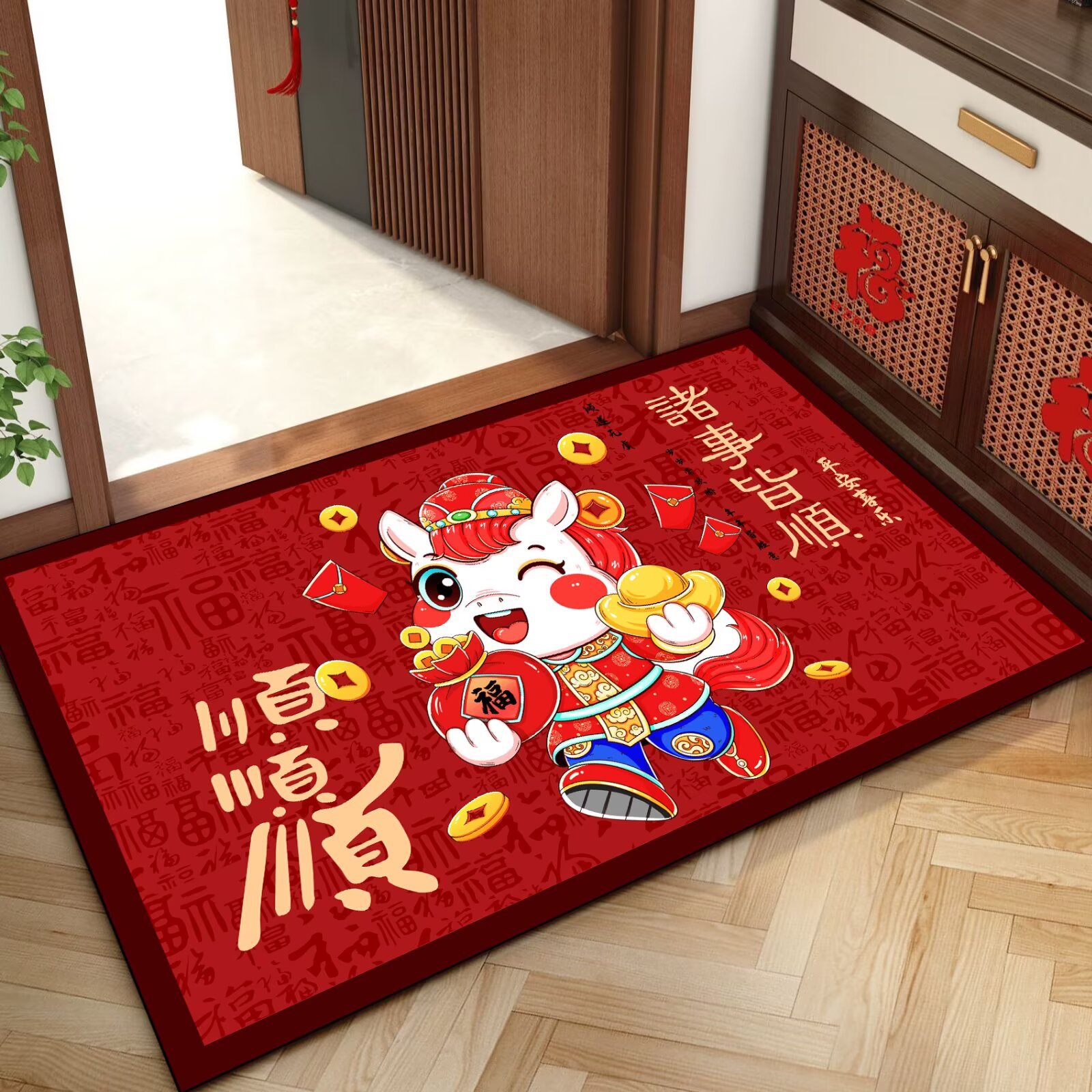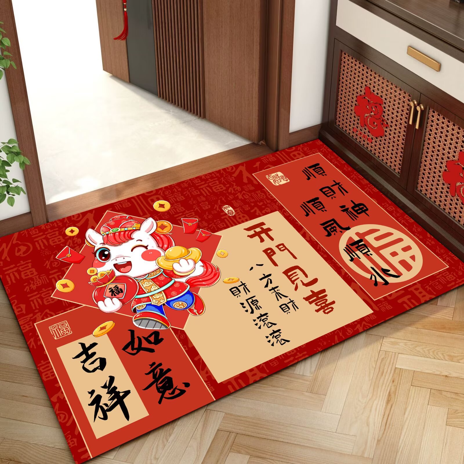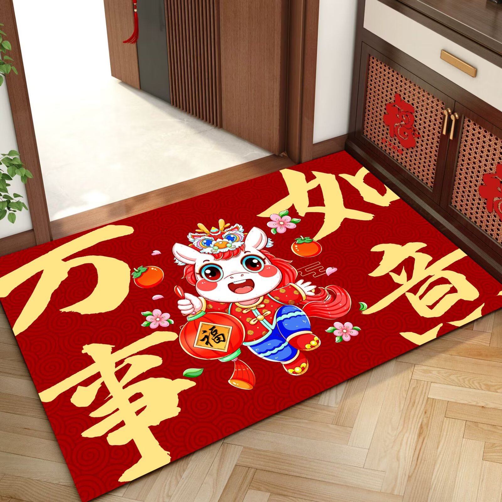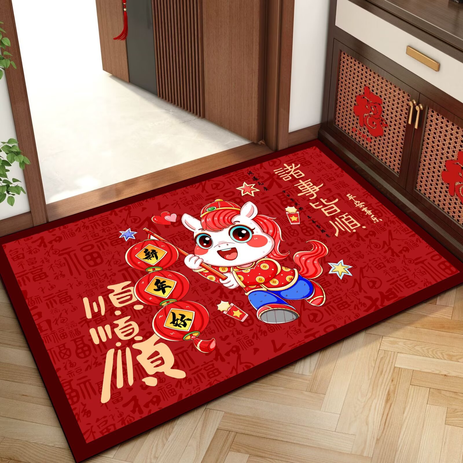 말의 해 입구 문 매트 만화 좋은 의미 홈 입구 발 매트 빨간색 축제 분위기 매트 대리 가능스토어 가기