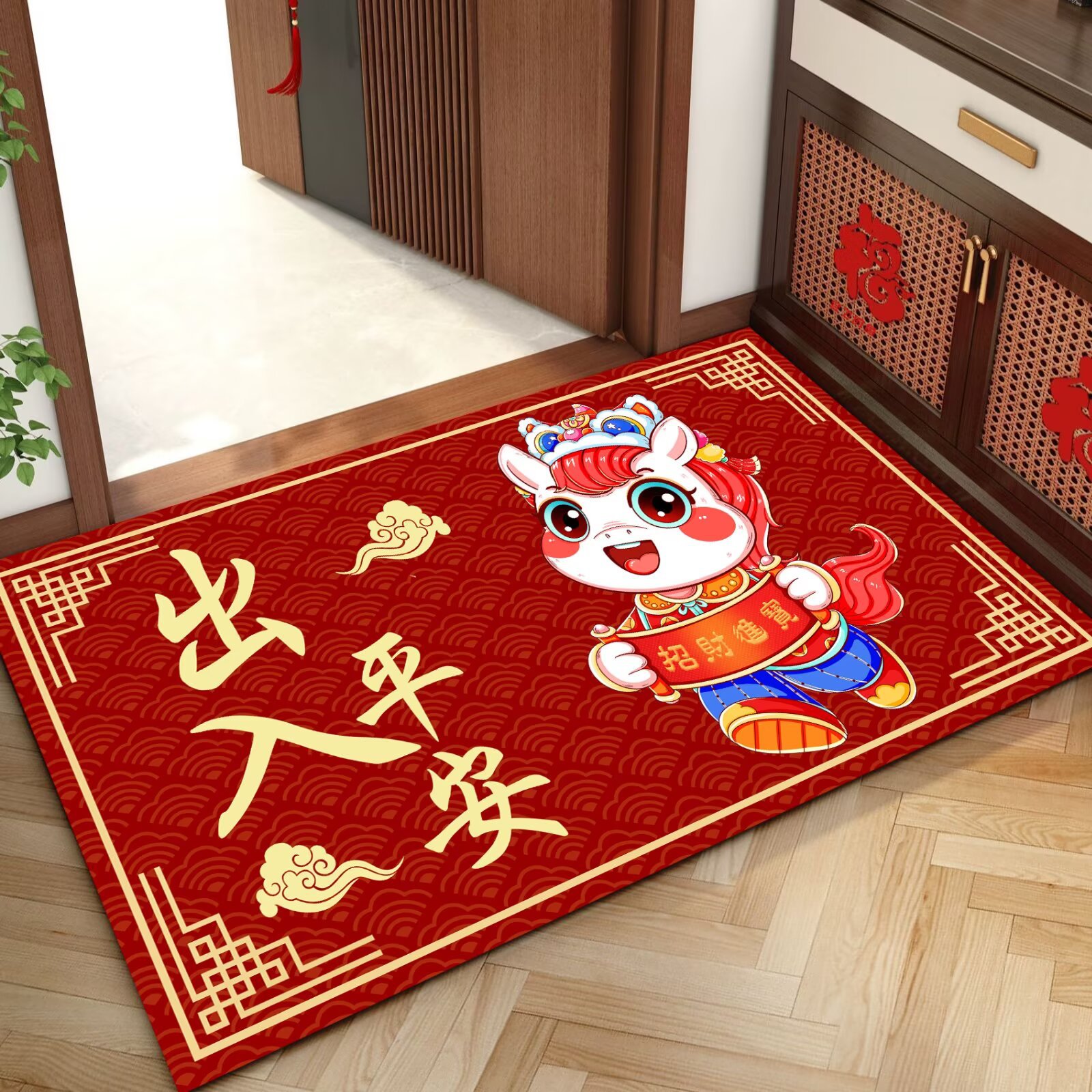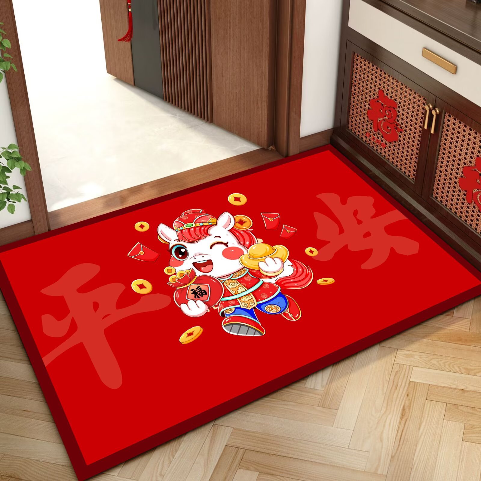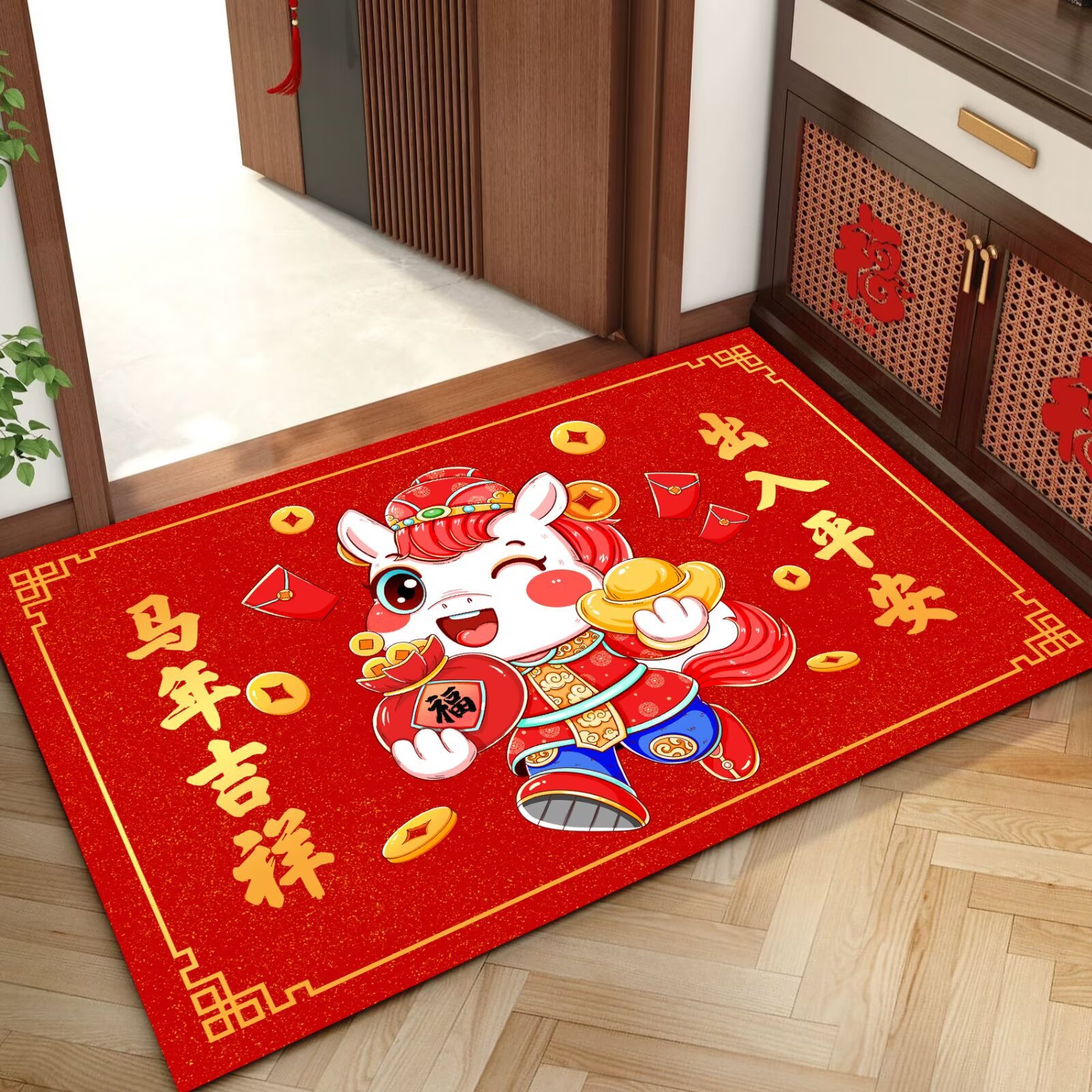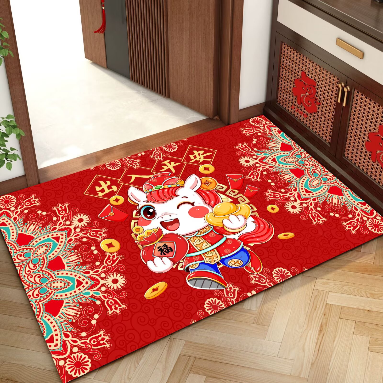 말의 해 입구 문 매트 만화 좋은 의미 홈 입구 발 매트 빨간색 축제 분위기 매트 대리 가능스토어 가기